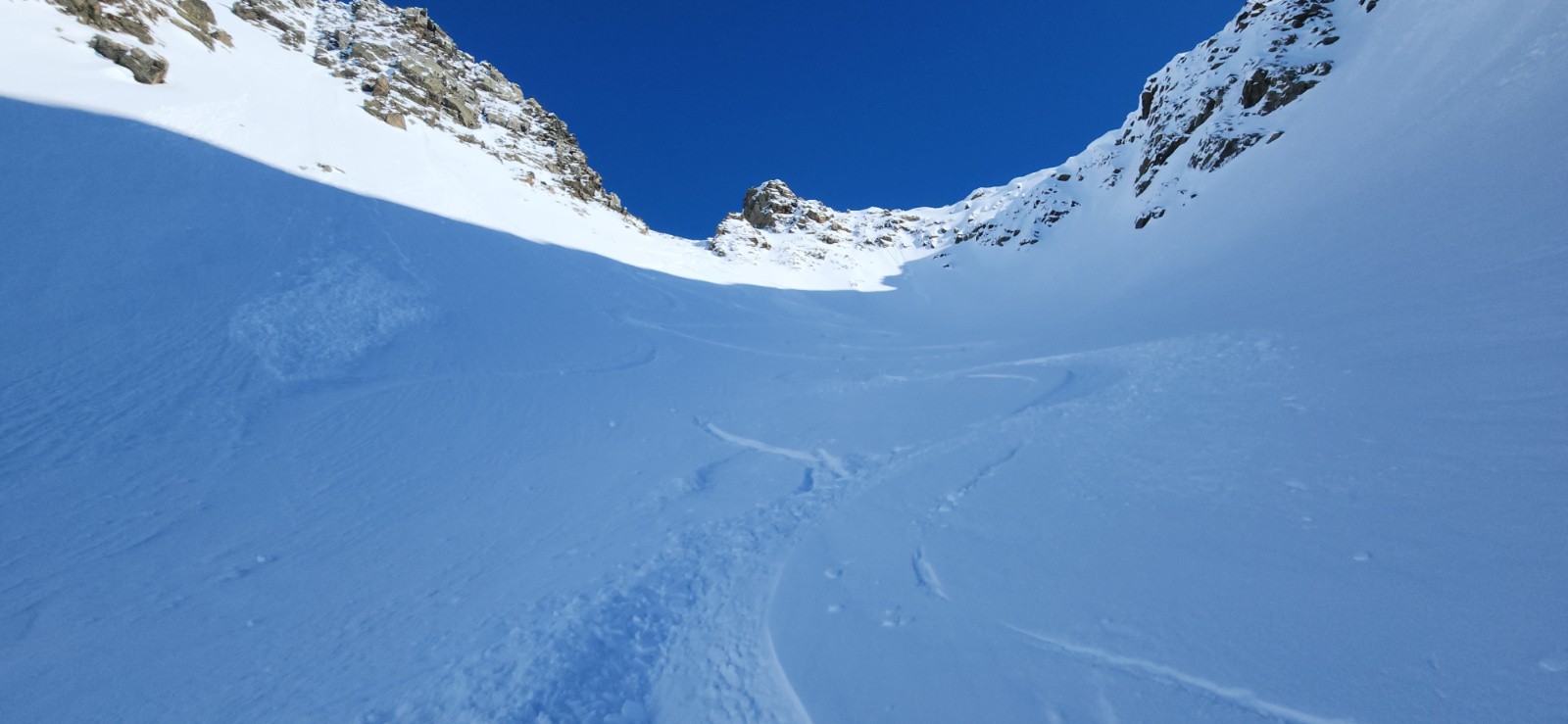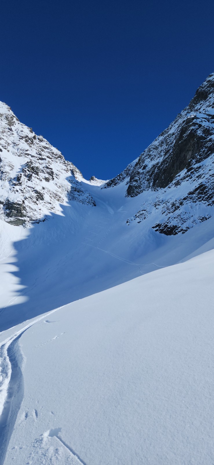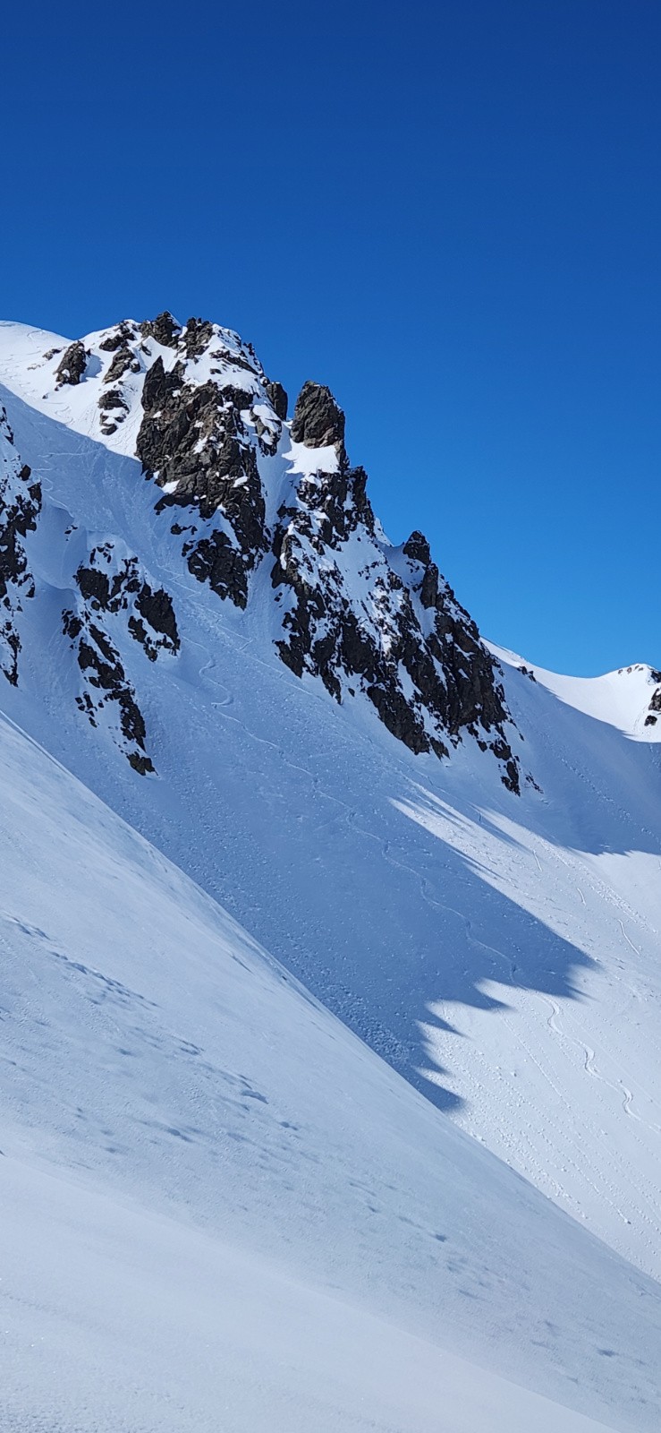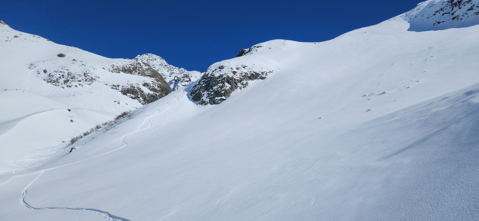 Conditions nivo et activité avalancheuse : ça a bien purgé sur les faces sud, et mes prédécesseurs ont du se faire une belle frayeur dans la descente du Col d'Arguille, une grosse coulée de boulettes solidifiée en beton armée quelques dizaines de mètres sous le Col à recouvert leur trace et nul doute que ça date d'hier. Sinon RAS, 30 à 40 cm de poudreuse légère partout sur les zones au Nord, c'est fabuleux. Chiant à tracer mais tellement bon à la descente!