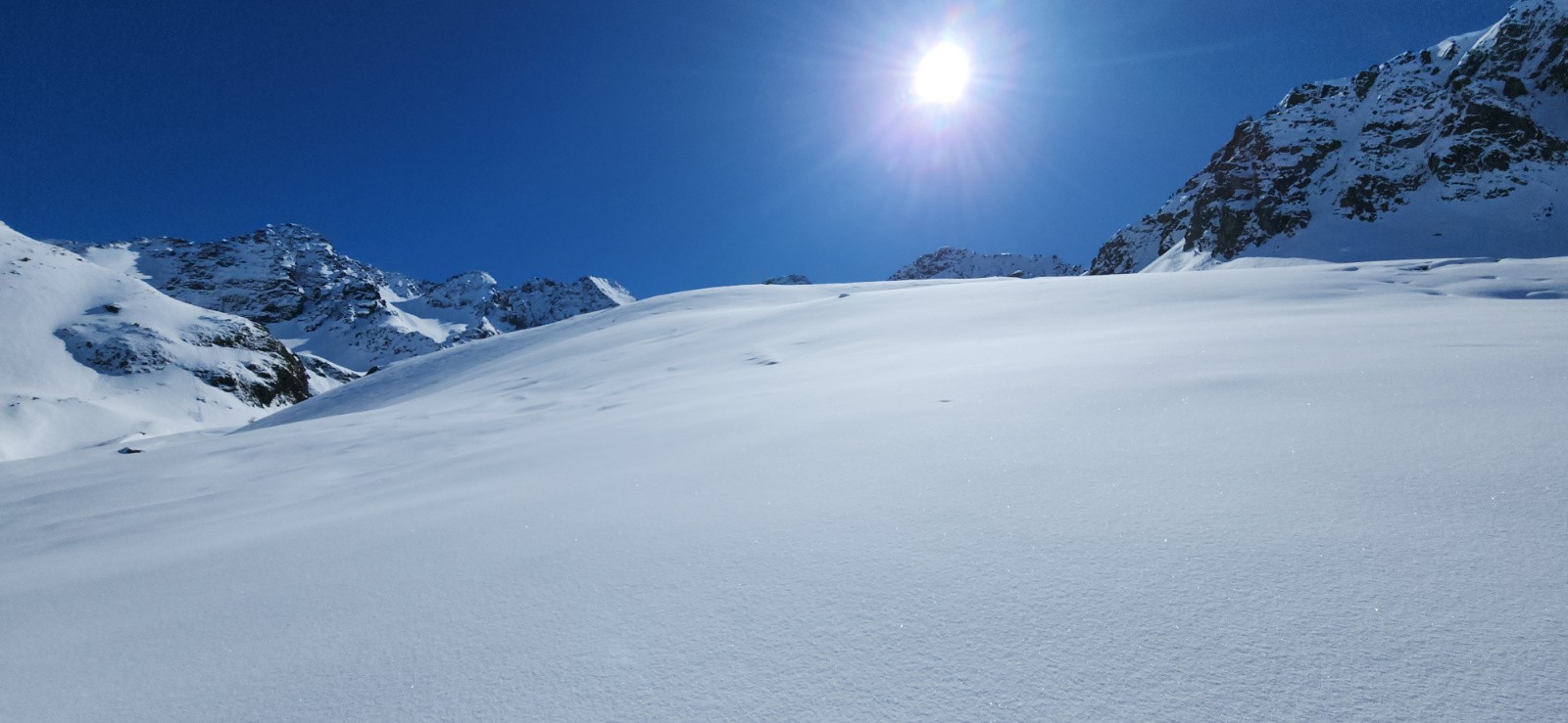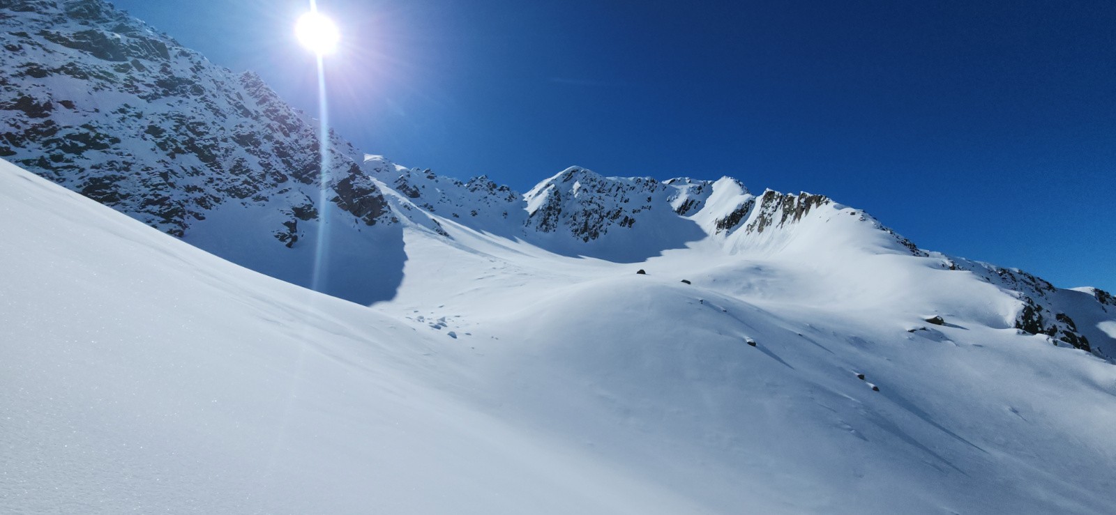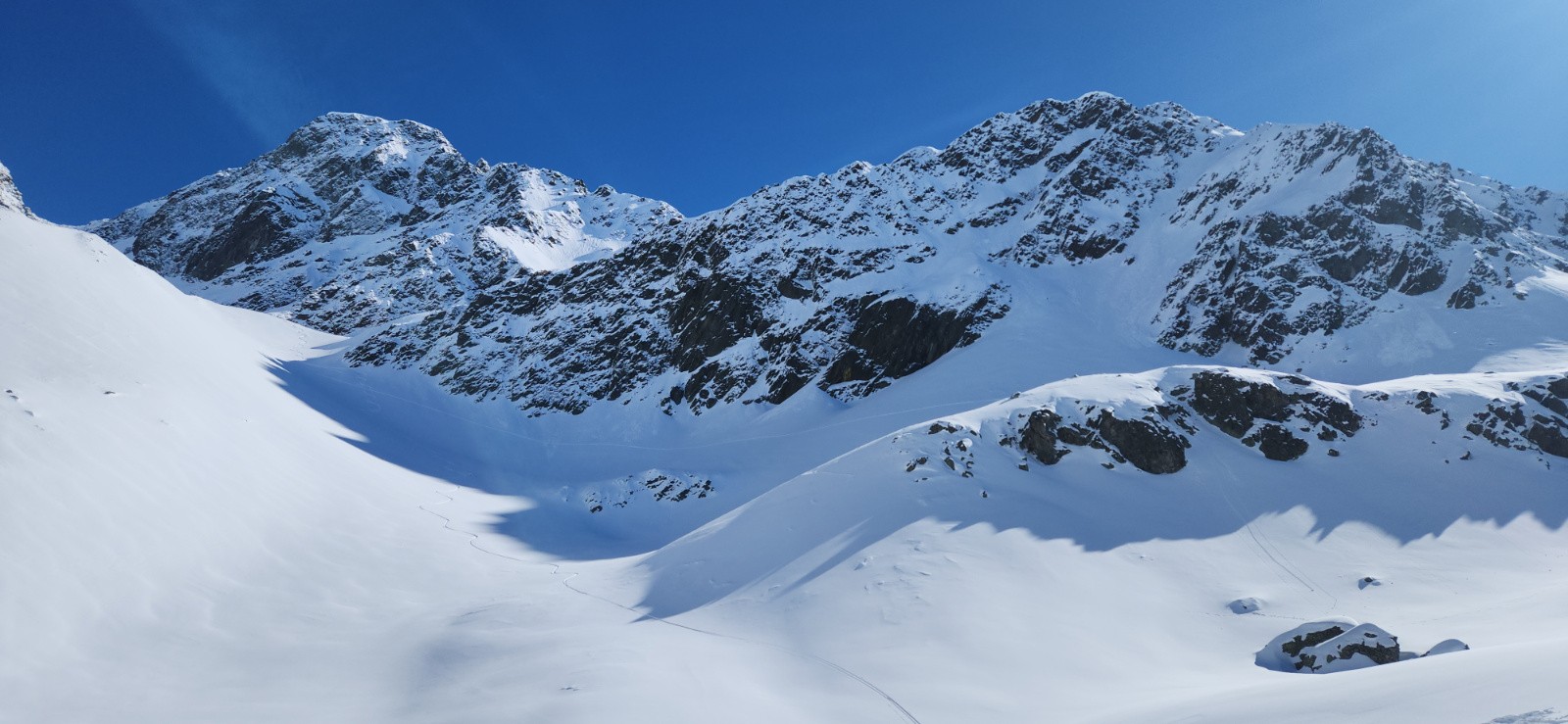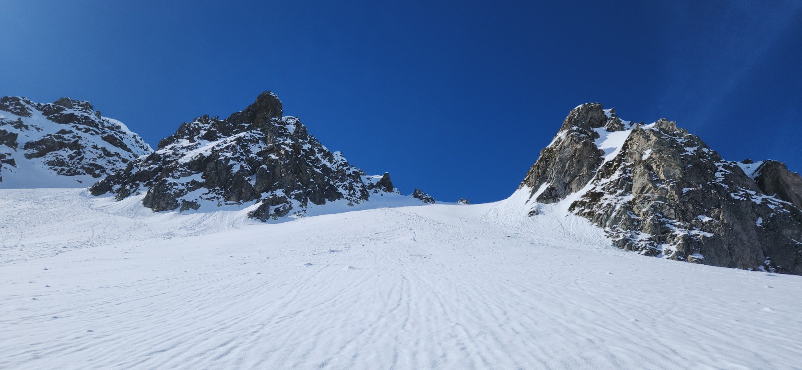 Conditions nivo et activité avalancheuse : ça a bien purgé sur les faces sud, et mes prédécesseurs ont du se faire une belle frayeur dans la descente du Col d'Arguille, une grosse coulée de boulettes solidifiée en beton armée quelques dizaines de mètres sous le Col à recouvert leur trace et nul doute que ça date d'hier. Sinon RAS, 30 à 40 cm de poudreuse légère partout sur les zones au Nord, c'est fabuleux. Chiant à tracer mais tellement bon à la descente!