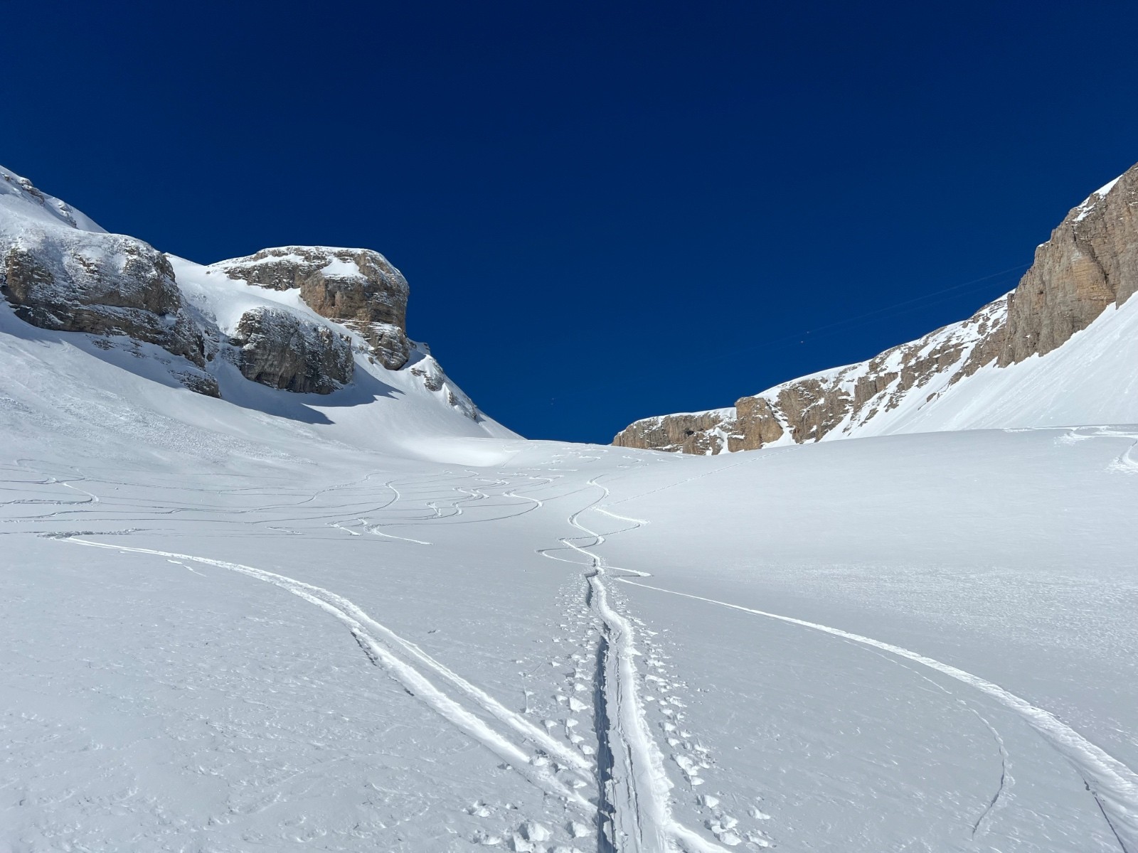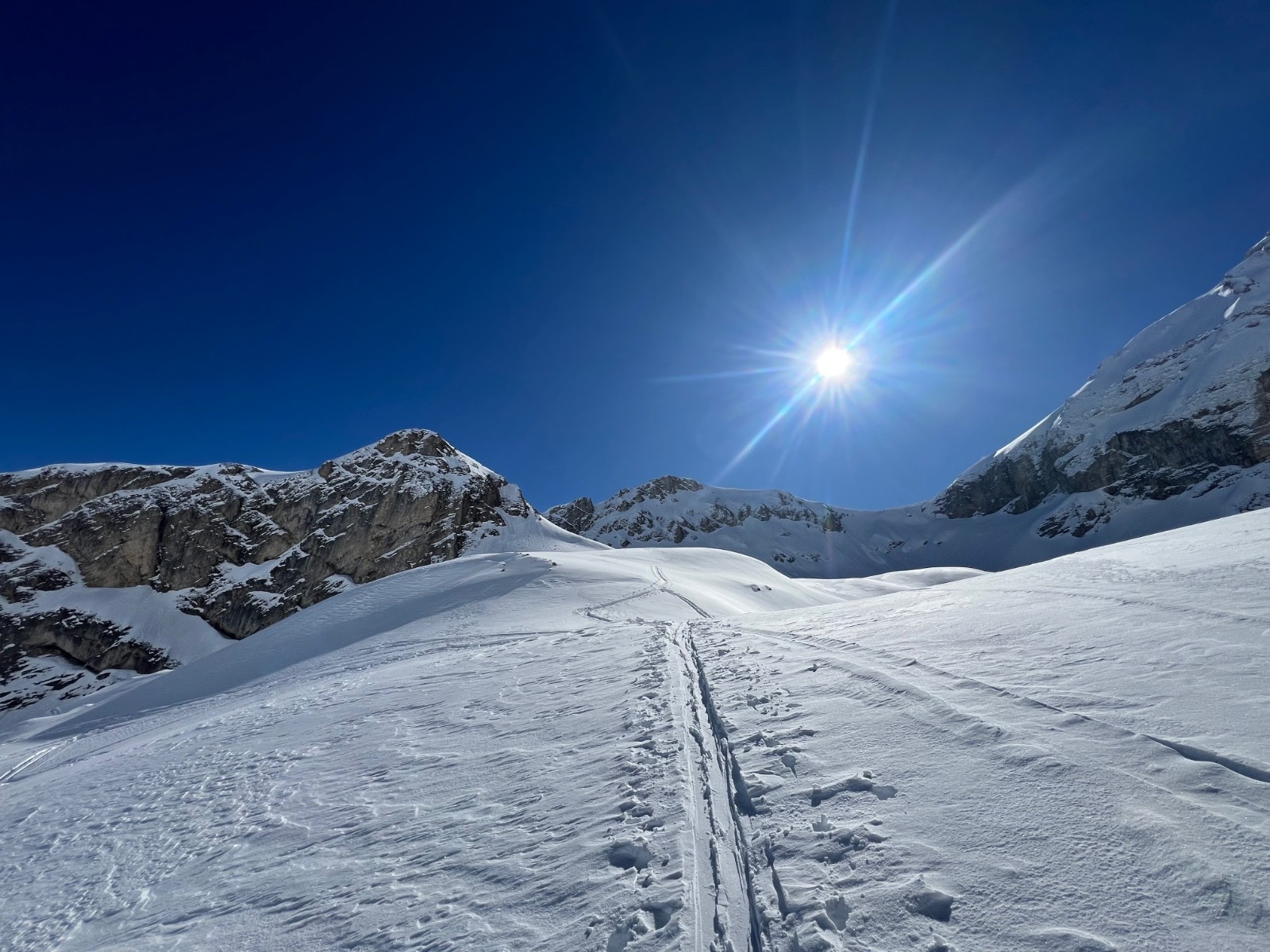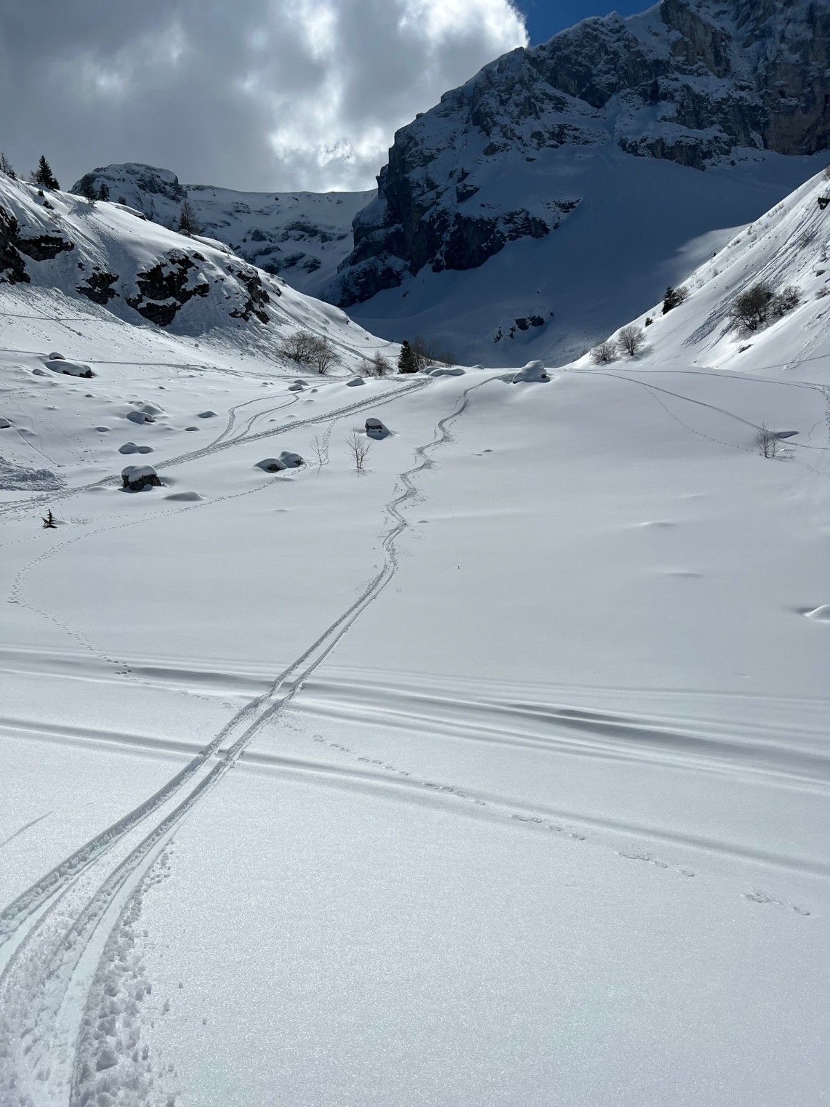 Conditions pour le ski : excellente : très bonne poudre du sommet jusqu’à 1800 environ : 30cm, encore droite et peu croûtée. En dessous de 1800 la neige a vu le soleil et c’est bcp moins bon. D’où 4* seulement mais 900m D- en 5* selon moi