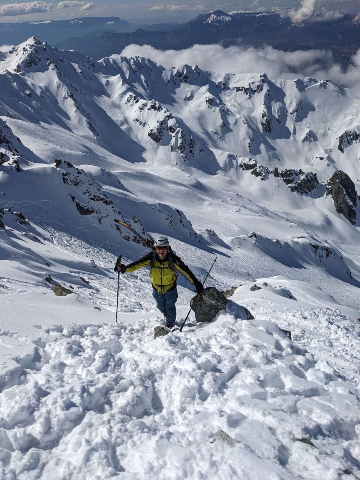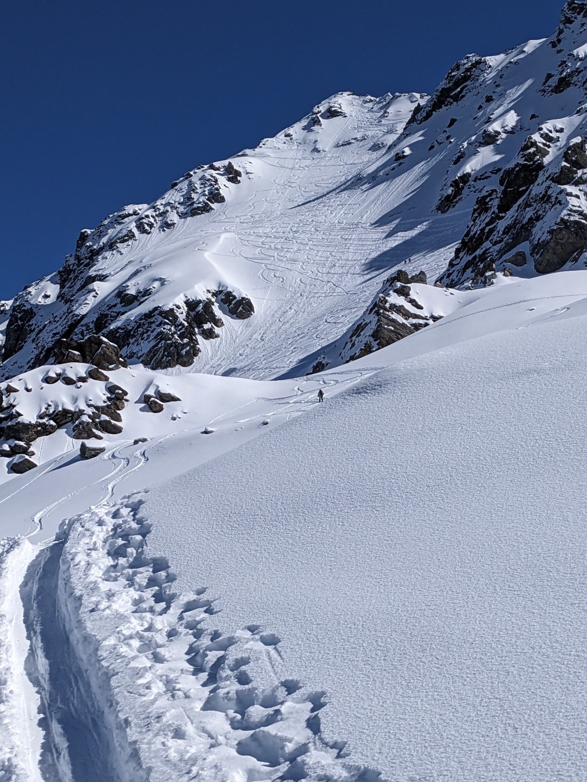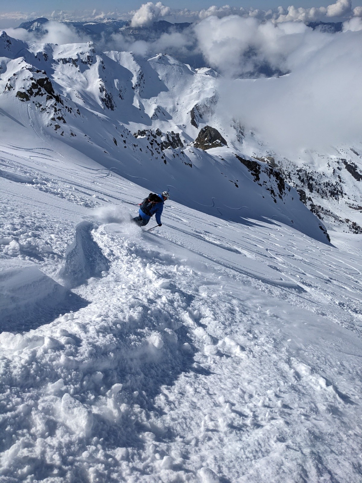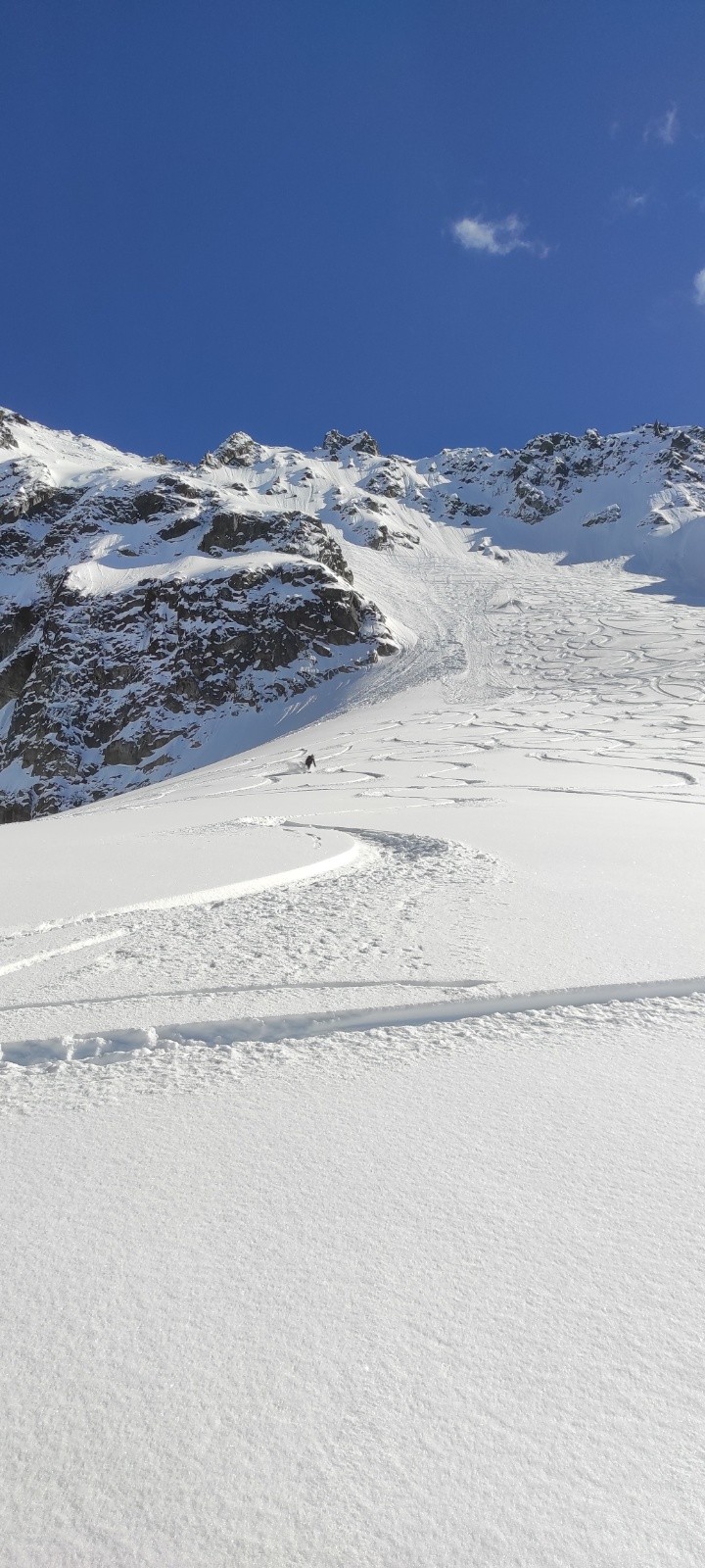 Conditions pour le ski : Excellente, une belle poudreuse légère qui s'alourdit sur le dernier tiers de la descente
