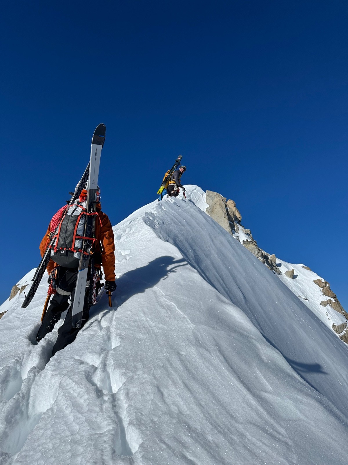 Conditions pour le ski : Très variable, globalement poudre sur l’arête sommitale, puis béton dans la partie supérieure qui prend le soleil plus tardivement. Puis transfo légère, ou blée avec des fonds variés, pas de vraie printemps saine.