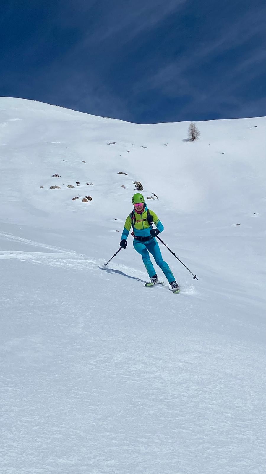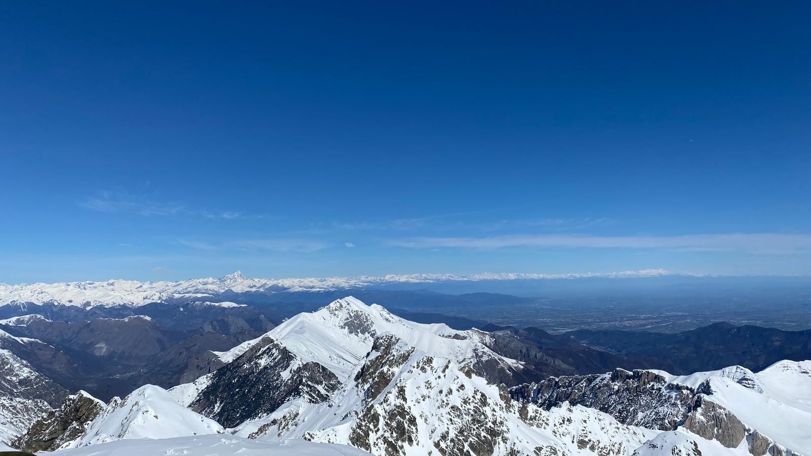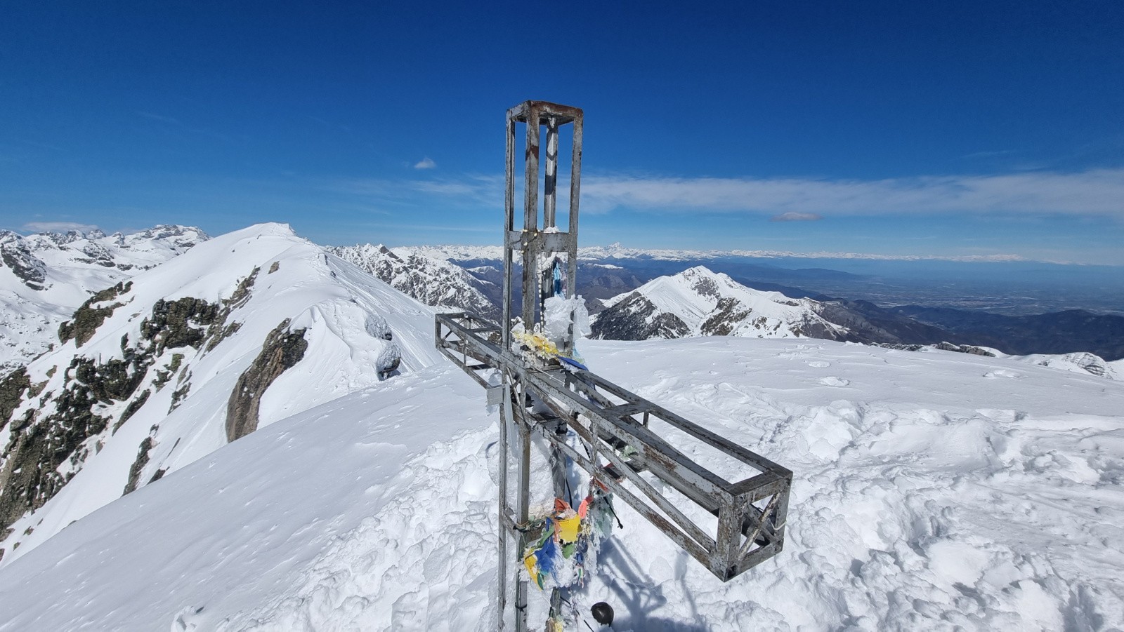 Conditions pour le ski : Enneigement continu à partir de 1800m. Env 80 cm à la Baisse de Peyrefique (2050m). Neige globalement lourde (peu/pas de regel sous les 1800m), mais petite couche de fraiche (env 2 cm) pour aider à la glisse. Au en montant au fort de Giaure, on a trouvé un fond dur qui parfois fait surface. Beaucoup de vent à la montée, moins à la descente, ce qui a permis un dégel des plus agréables...