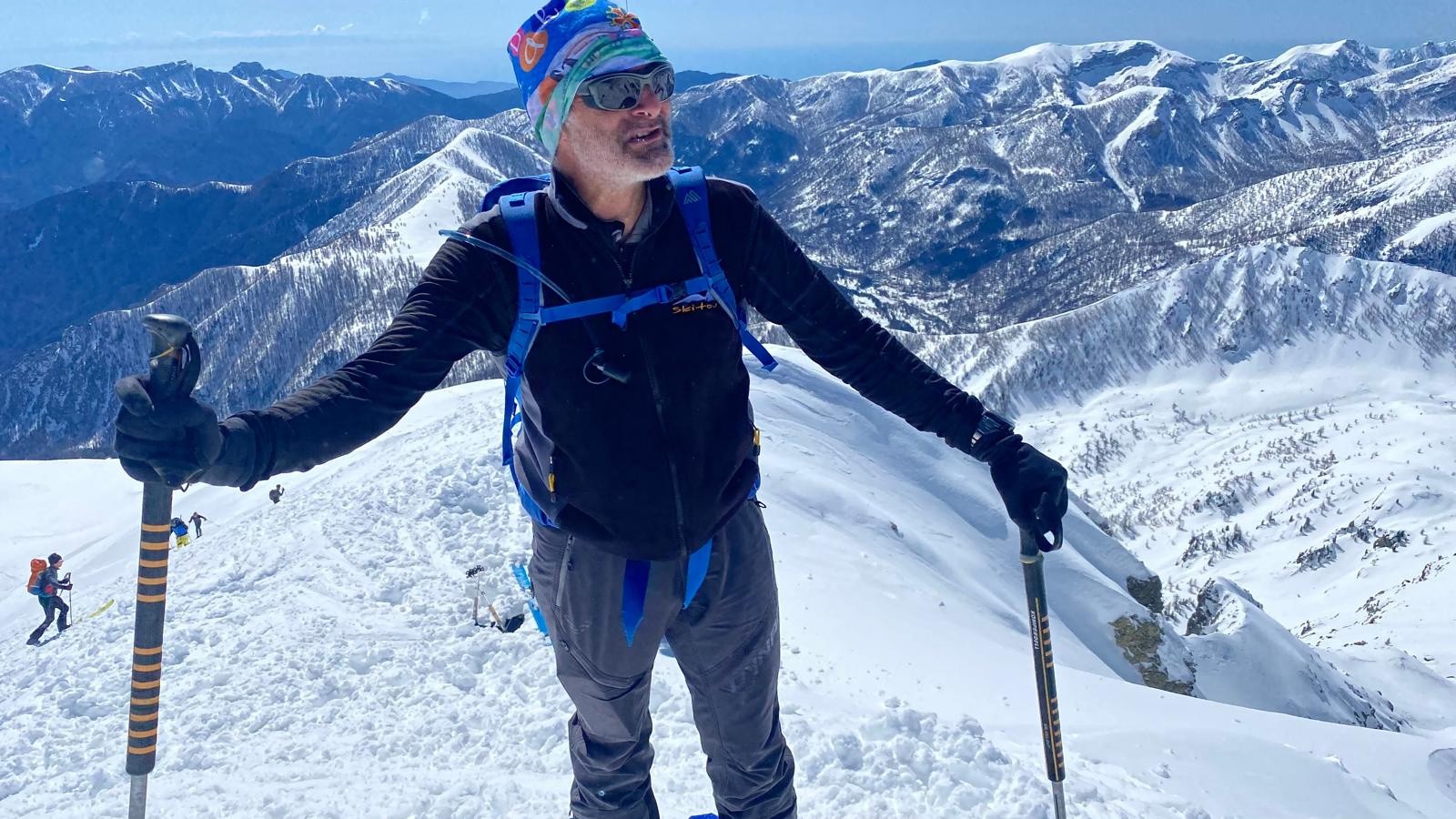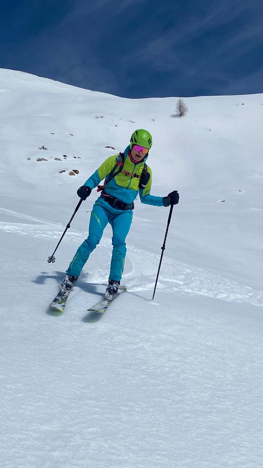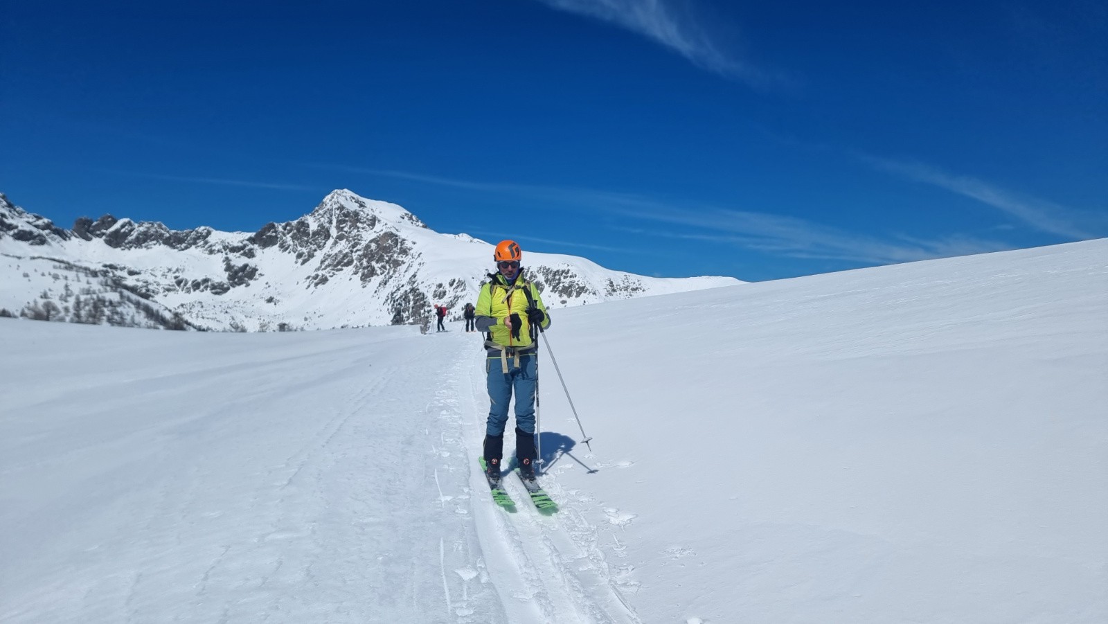 Conditions nivo et activité avalancheuse : Neige lourde en tout secteur, bien durcie au dessus de 2000m. Sous le sommet, env 20 cm de poudre lourde bien labourée par les nombreux passages du jour.