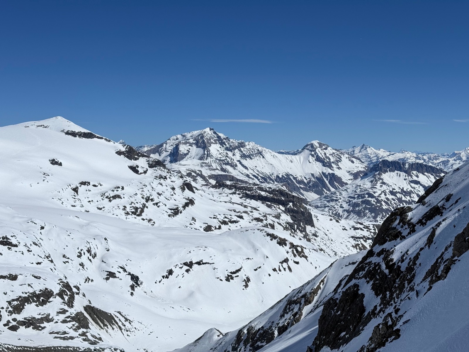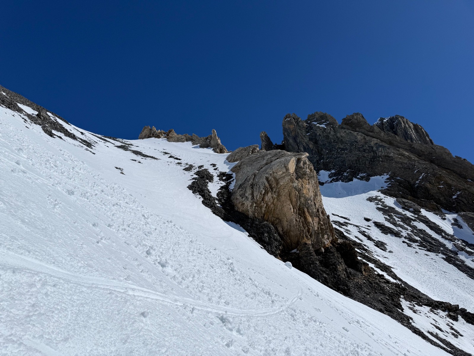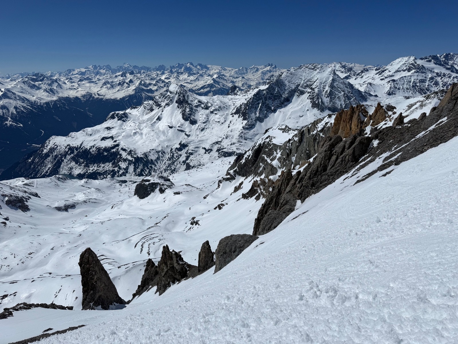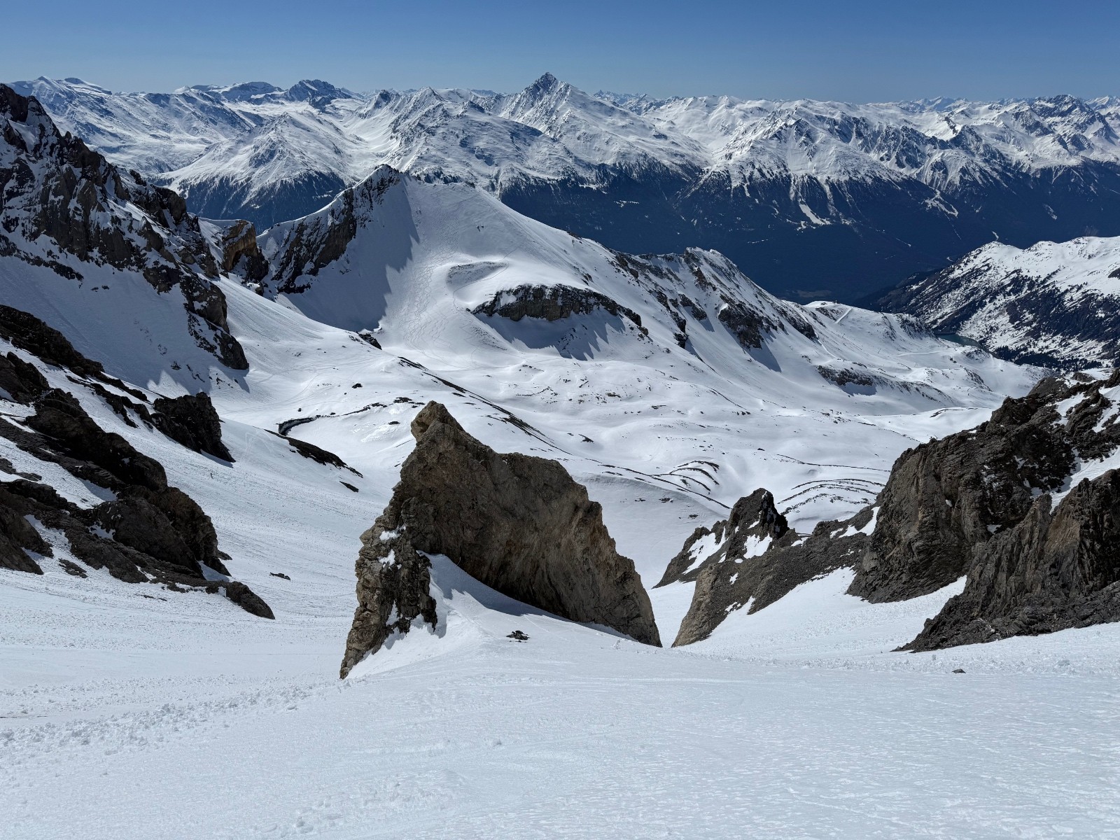 Superbe enchaînement, ça change de la plus classique Dent Parrachée. De belles ambiances avec les rochers et un couloir Ssw de la Fournache qui vaut vraiment le coup. 2 traces de descente sur la Nw de Scolette ( a priori rien dans les couloirs), pas de trace sur Longe Côte et Pte du Clôt.