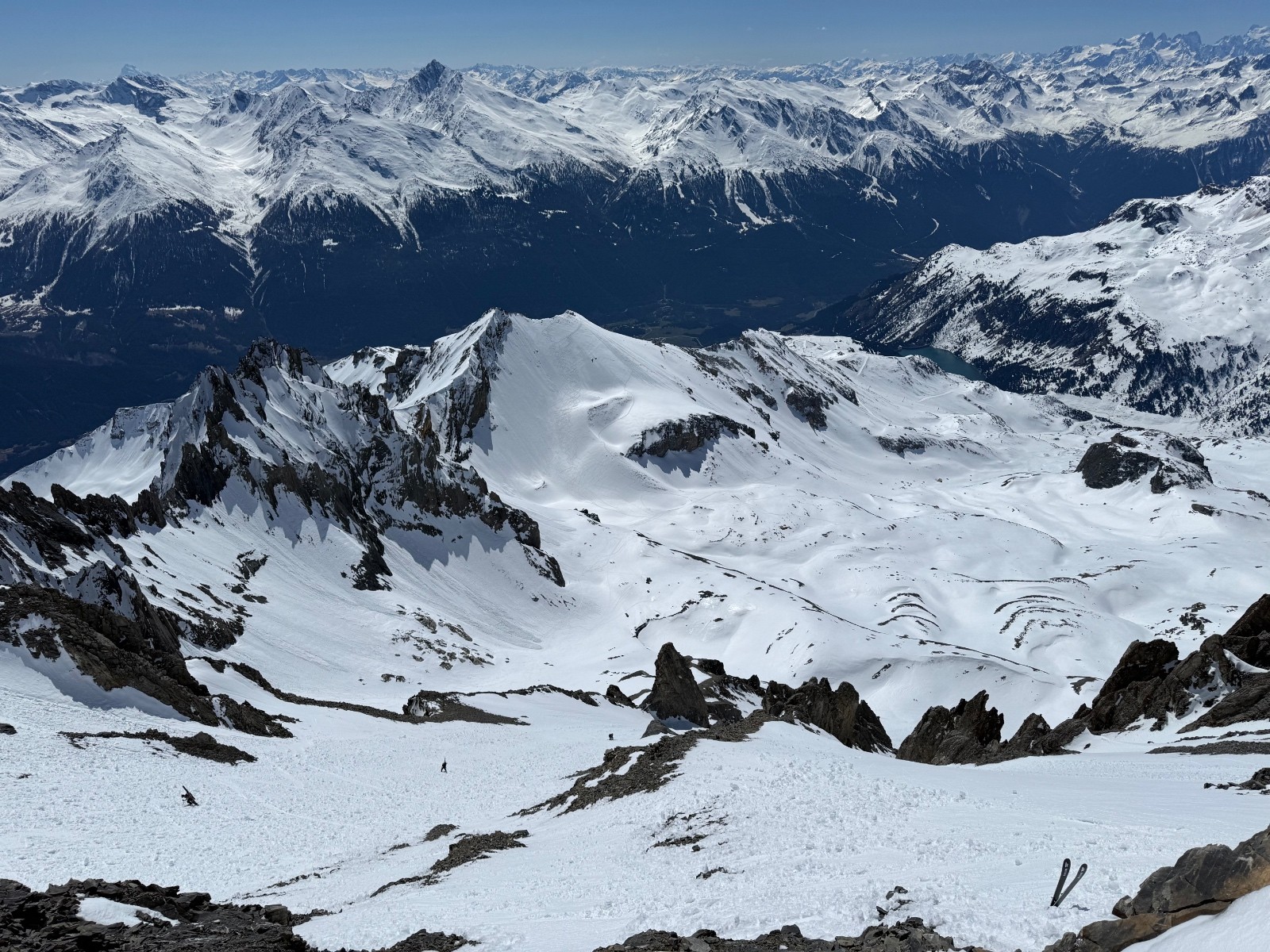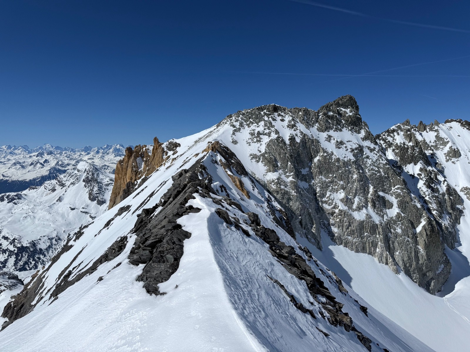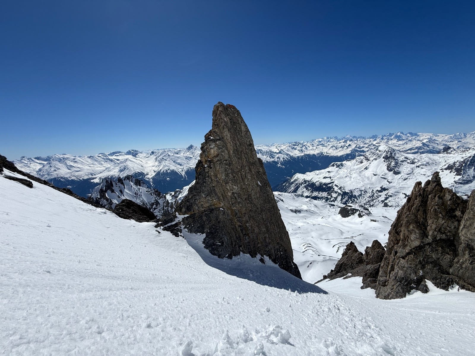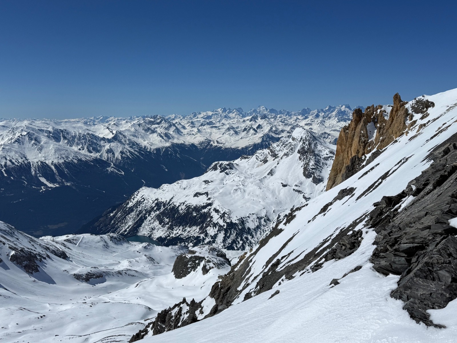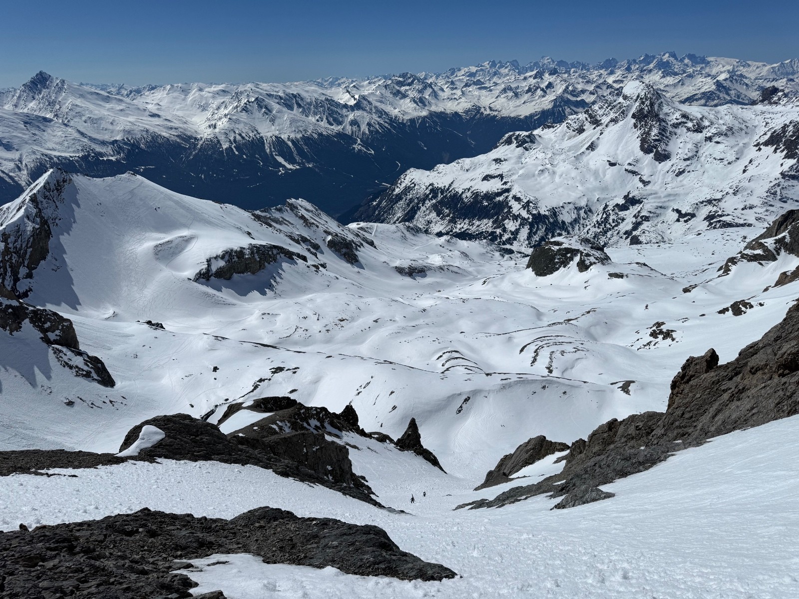 Superbe enchaînement, ça change de la plus classique Dent Parrachée. De belles ambiances avec les rochers et un couloir Ssw de la Fournache qui vaut vraiment le coup. 2 traces de descente sur la Nw de Scolette ( a priori rien dans les couloirs), pas de trace sur Longe Côte et Pte du Clôt.