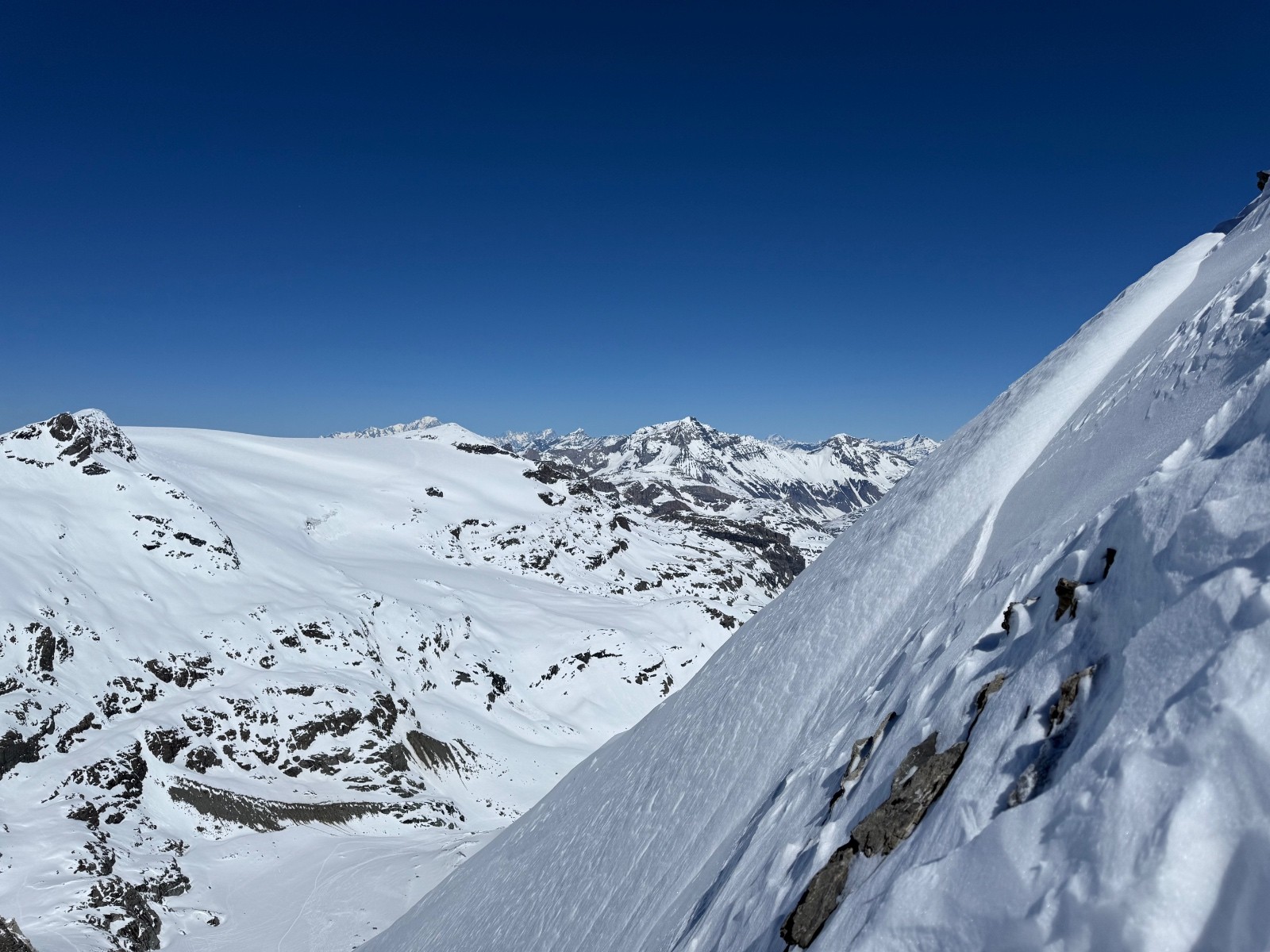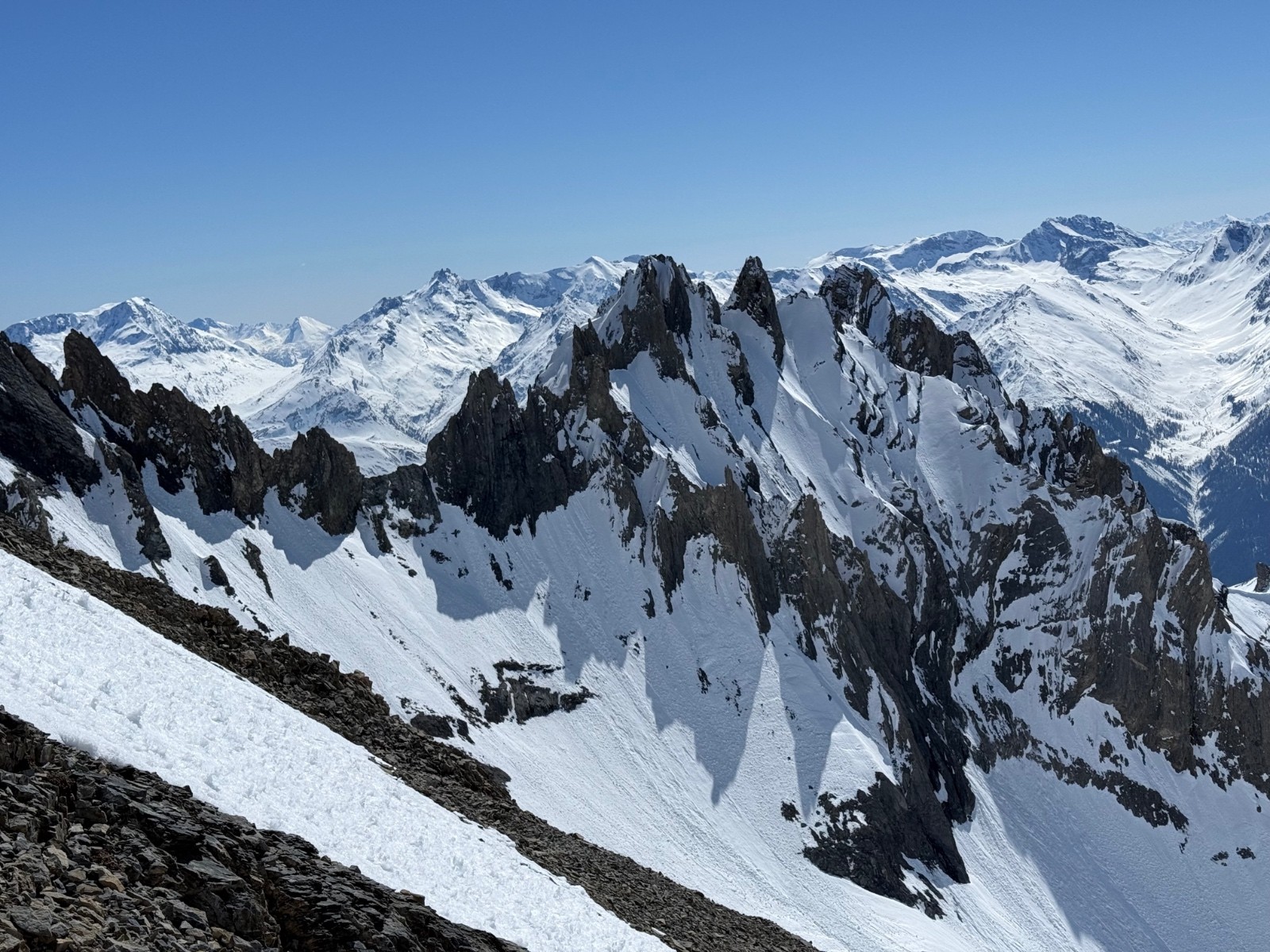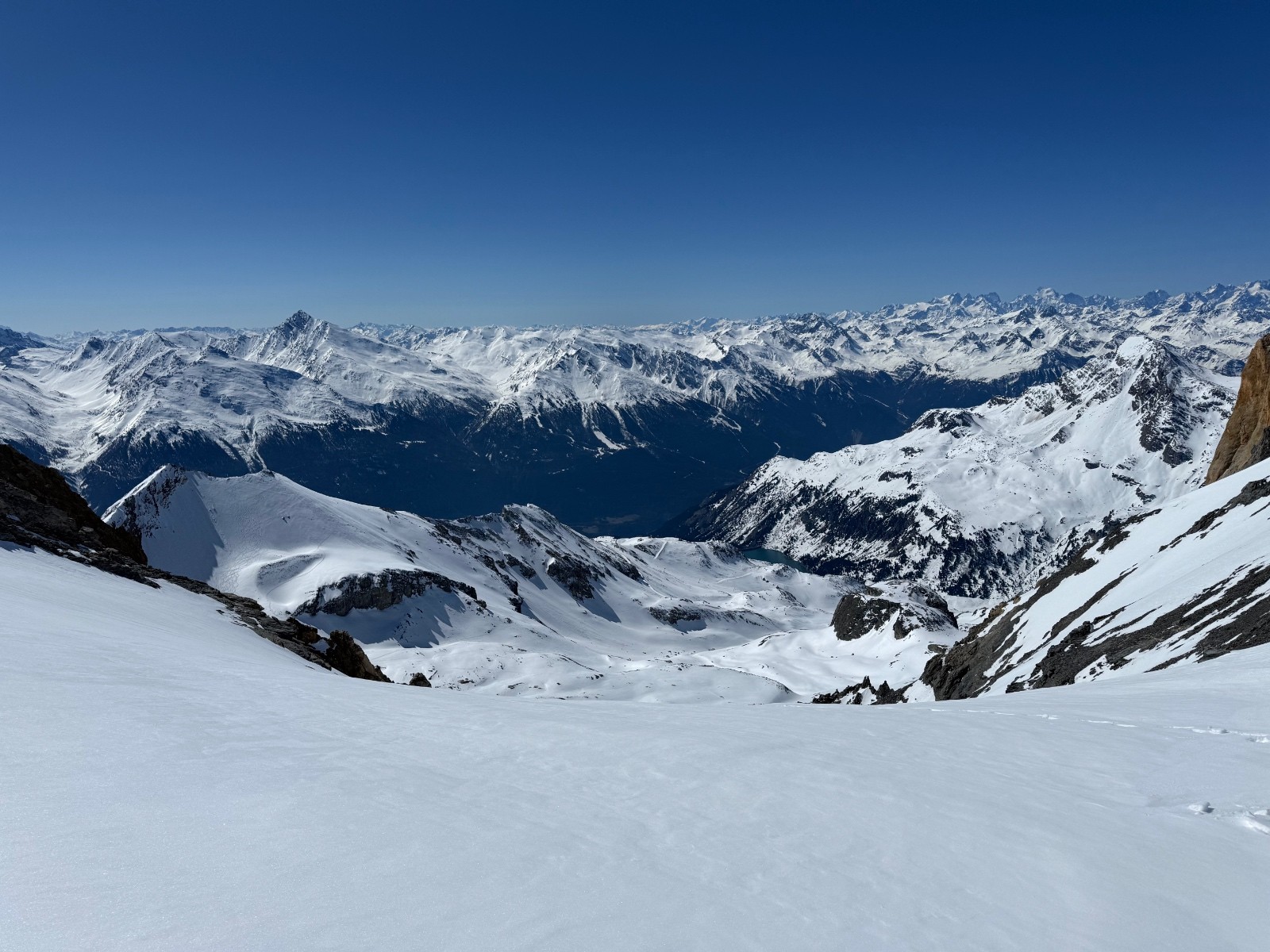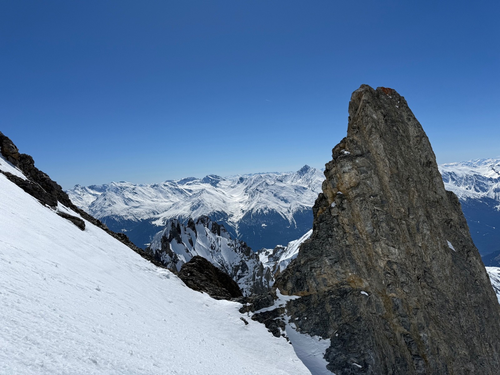 Superbe enchaînement, ça change de la plus classique Dent Parrachée. De belles ambiances avec les rochers et un couloir Ssw de la Fournache qui vaut vraiment le coup. 2 traces de descente sur la Nw de Scolette ( a priori rien dans les couloirs), pas de trace sur Longe Côte et Pte du Clôt.