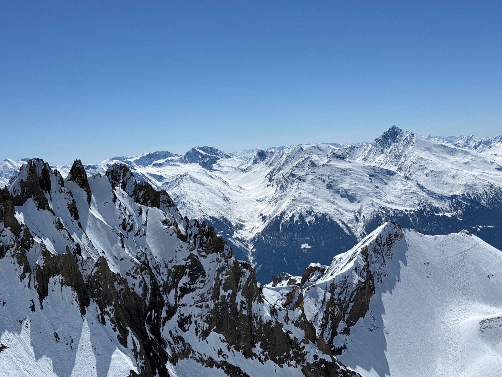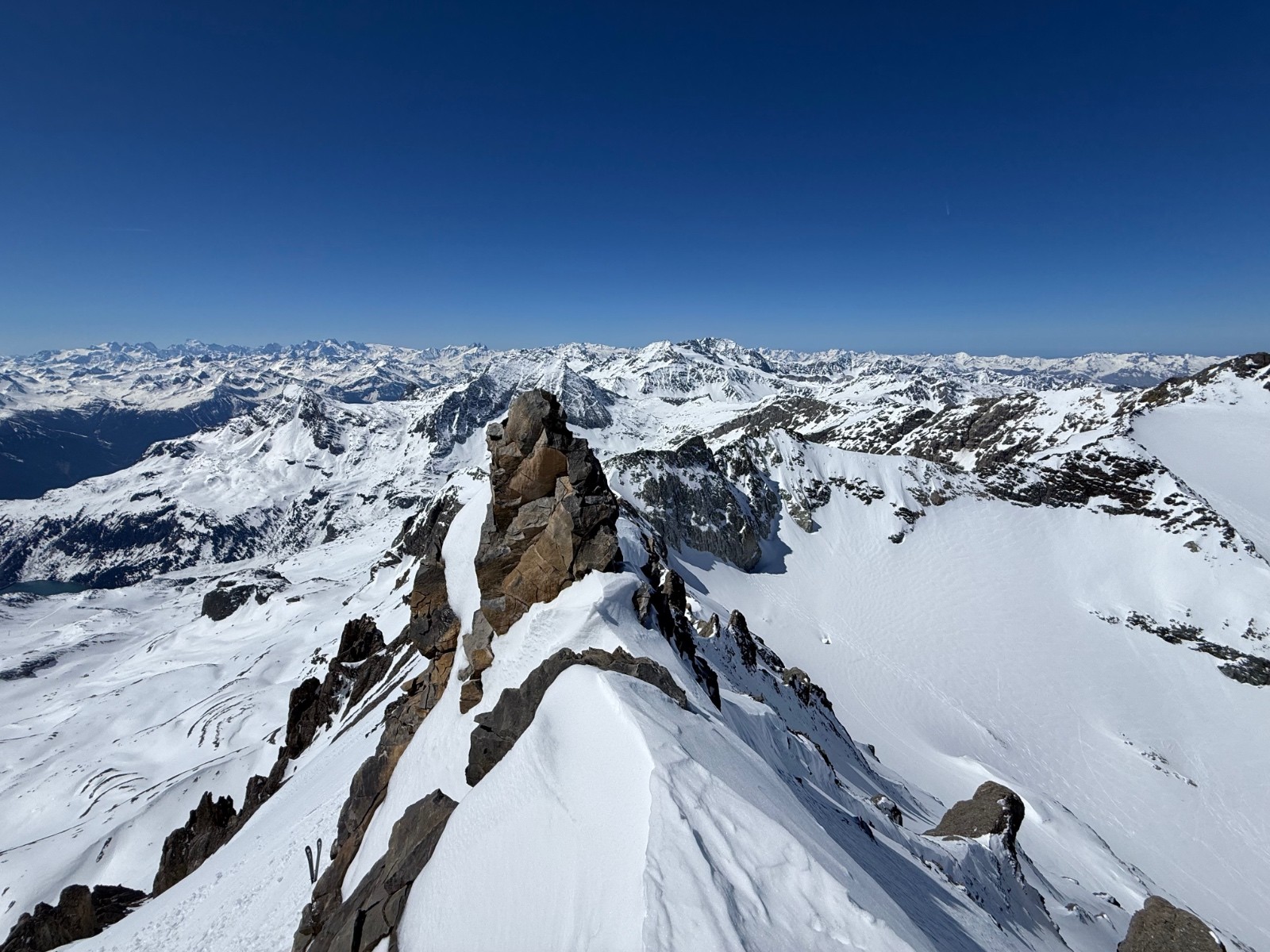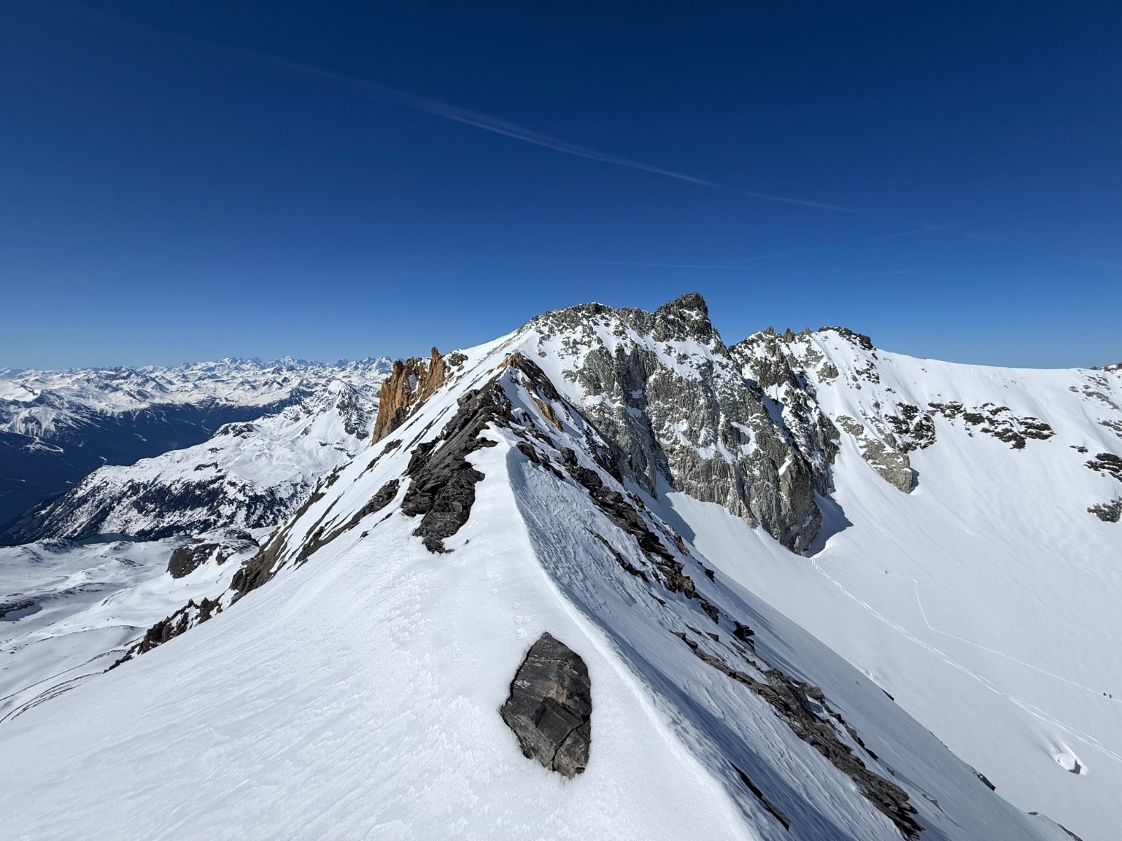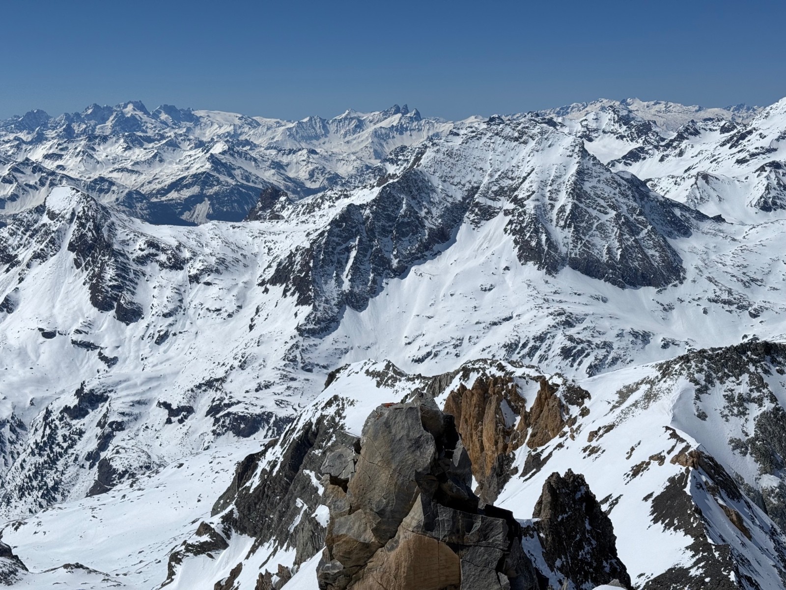 Superbe enchaînement, ça change de la plus classique Dent Parrachée. De belles ambiances avec les rochers et un couloir Ssw de la Fournache qui vaut vraiment le coup. 2 traces de descente sur la Nw de Scolette ( a priori rien dans les couloirs), pas de trace sur Longe Côte et Pte du Clôt.