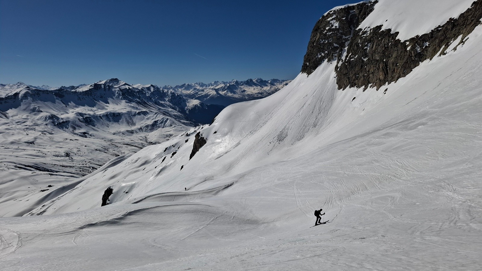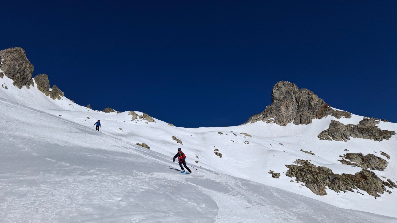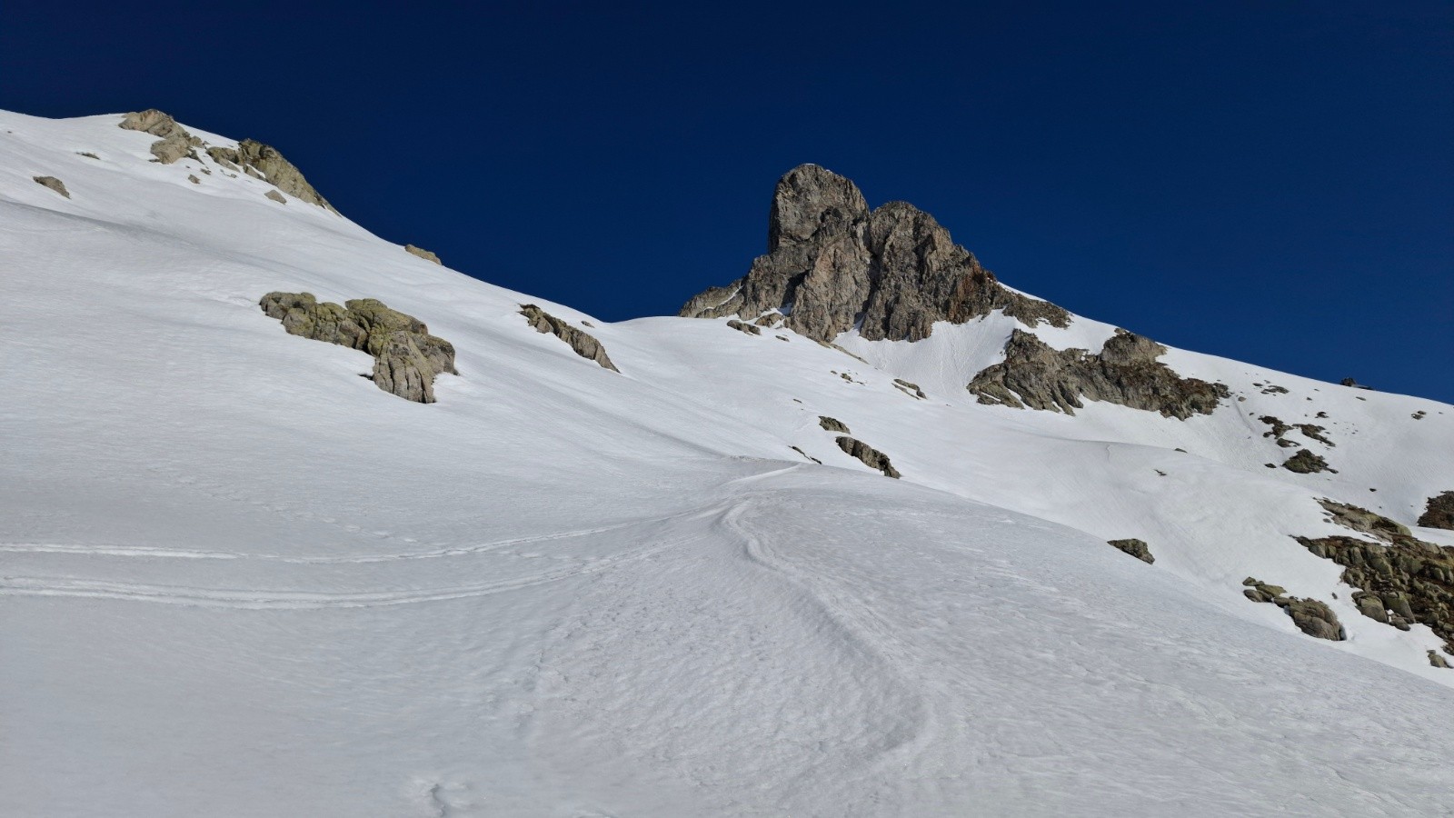 Conditions pour le ski : très bon regel, pistes dures à la montée mais bon grip, traversée du col vers la combe de la rave en cours de décaillage sauf pour les parties à l'ombre, montée de la Rave en cours de transfo, ça chauffait mais la neige est restée portante jusqu'aucol ; descente en moquette 5*, très peu de relief sur toute la ligne, le manteau n'a pas pourri à l'heure de notre descente, un peu avant midi, remontée au col de la Madeleine moquette épaisse, pistes damées encore bonnes un peu après midi.
