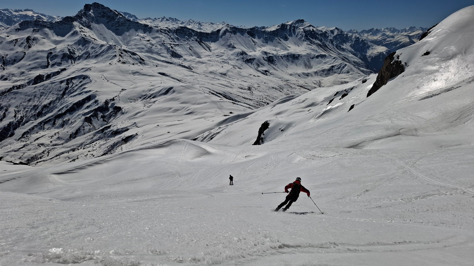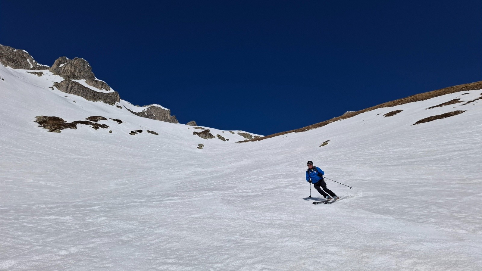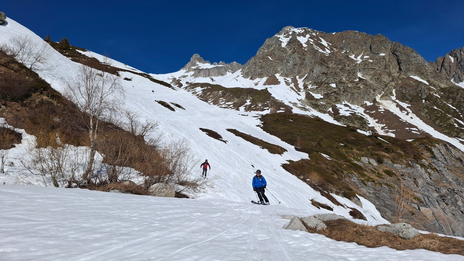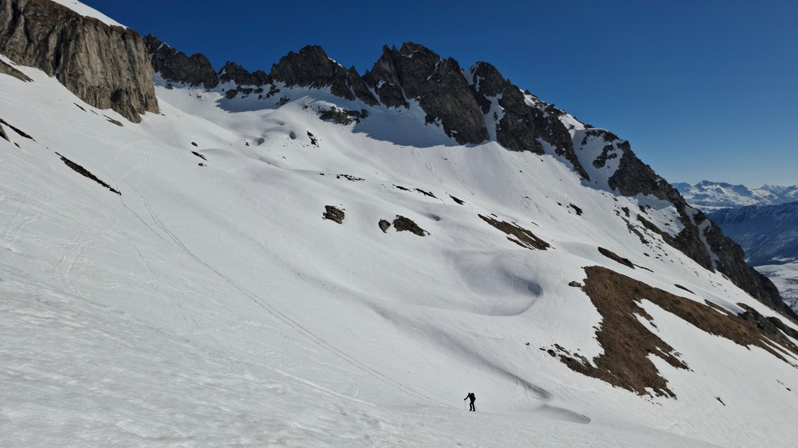 Conditions pour le ski : très bon regel, pistes dures à la montée mais bon grip, traversée du col vers la combe de la rave en cours de décaillage sauf pour les parties à l'ombre, montée de la Rave en cours de transfo, ça chauffait mais la neige est restée portante jusqu'aucol ; descente en moquette 5*, très peu de relief sur toute la ligne, le manteau n'a pas pourri à l'heure de notre descente, un peu avant midi, remontée au col de la Madeleine moquette épaisse, pistes damées encore bonnes un peu après midi.