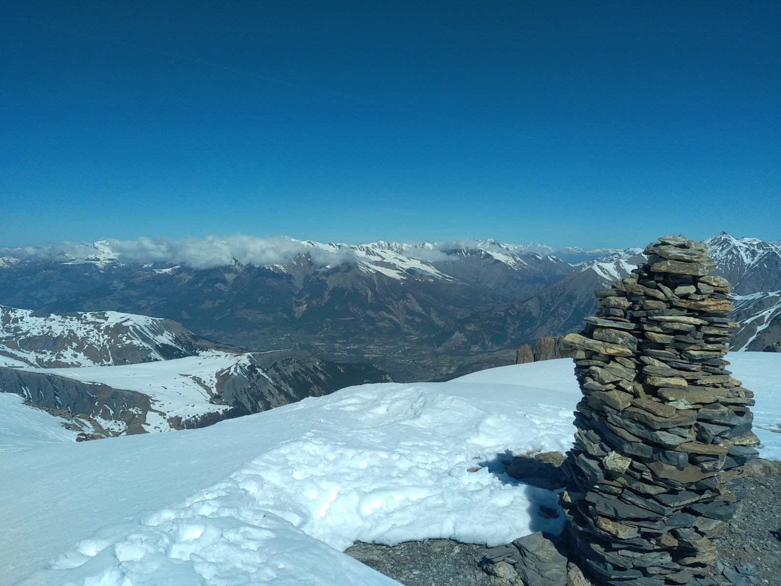 Conditions pour le ski : Neige très dure ; couteaux jusqu'au collet 2604. Revenue pour la descente dans le vallon des Sagnes. Couche superficielle humidifiée sur sous-couche dure dans la remontée jusqu'au sommet. Encore dure dans la descente sur restefond.