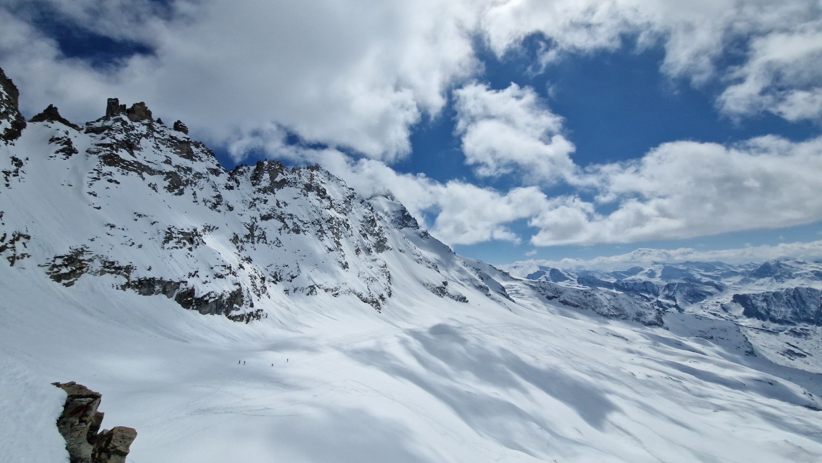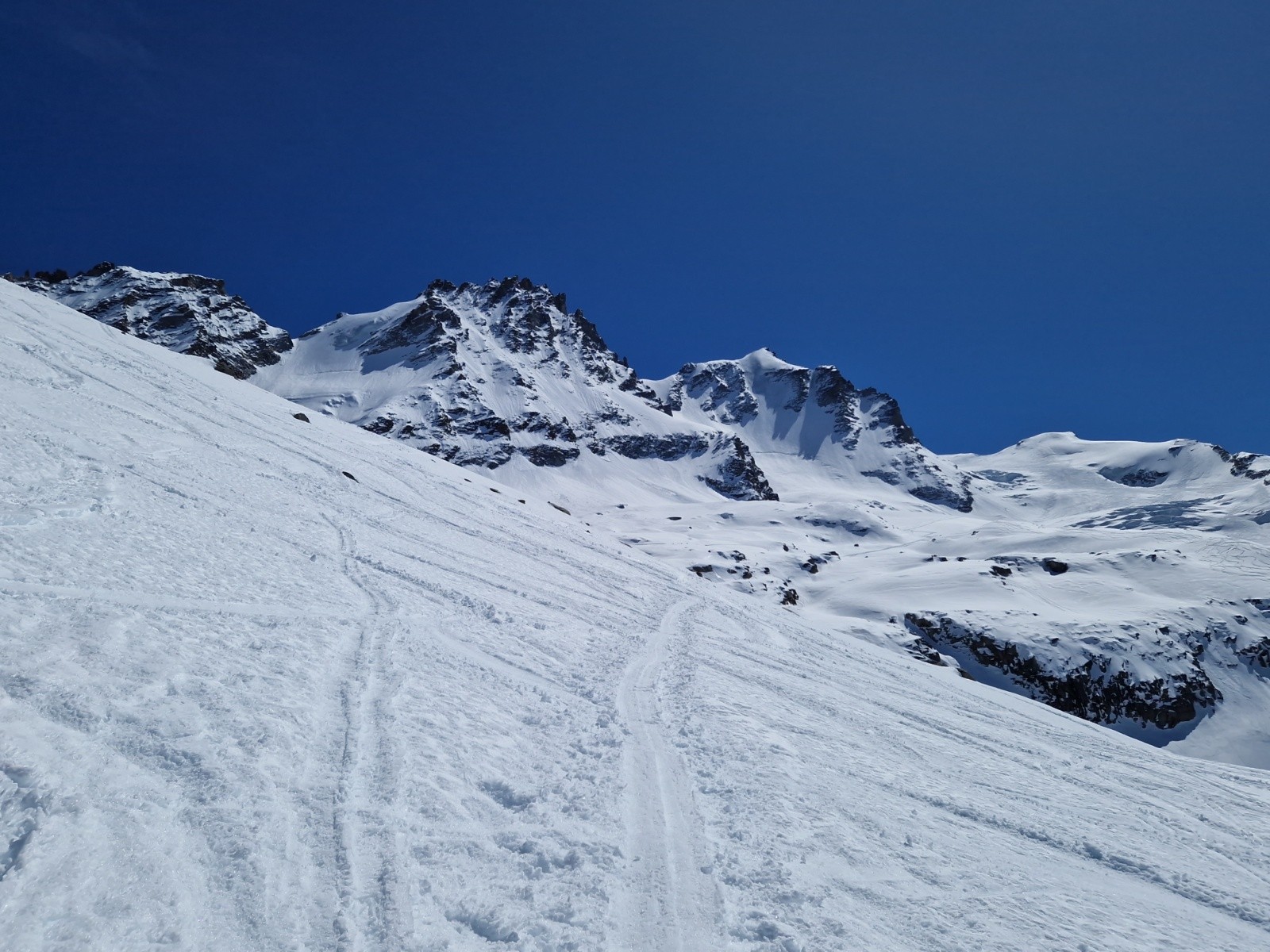 Certainement bien meilleures dans la combe au nord du col : tout poudre, 3 traces !