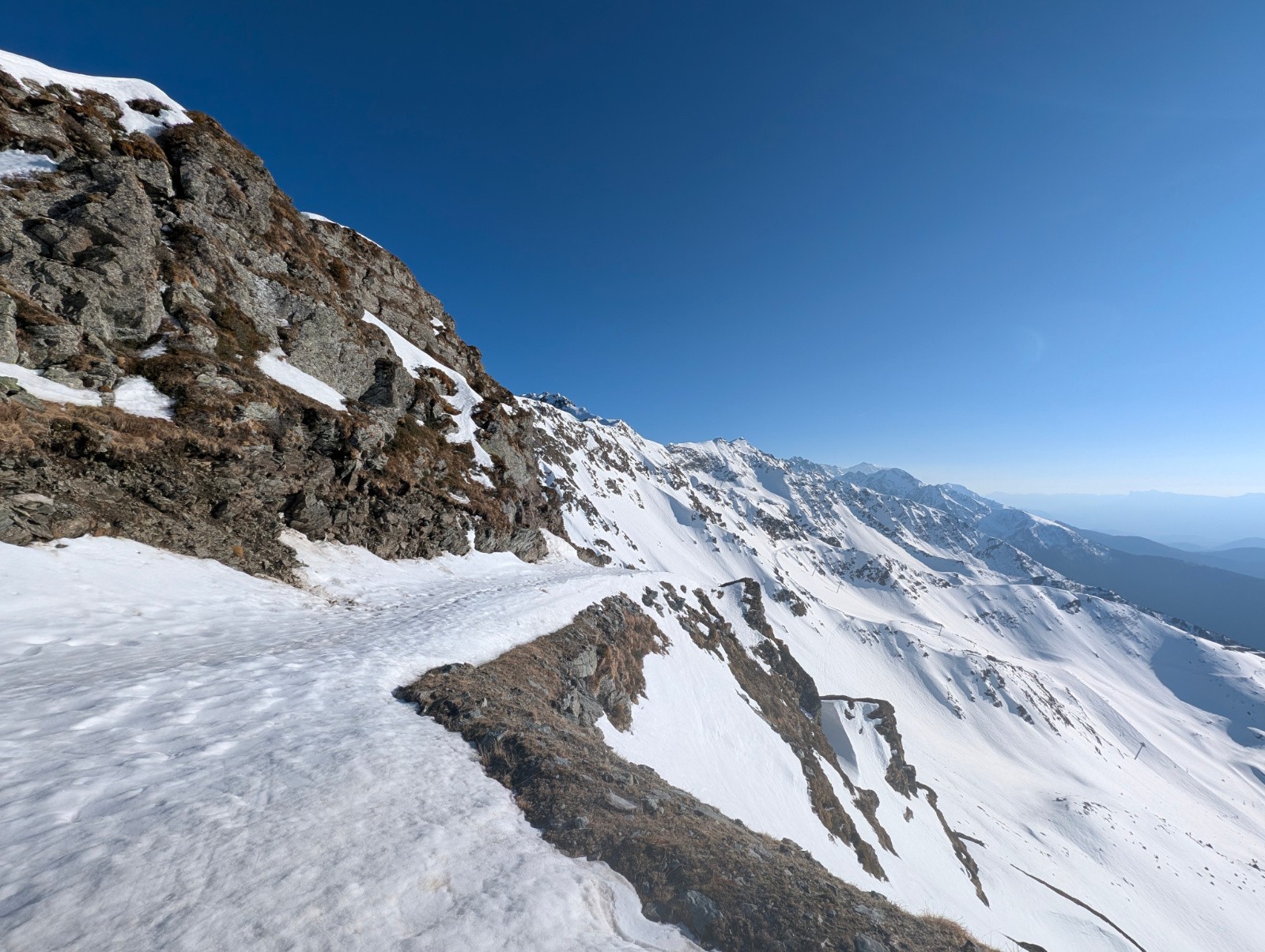 Enneigement continu depuis la bas sauf dans le pas du Chien.