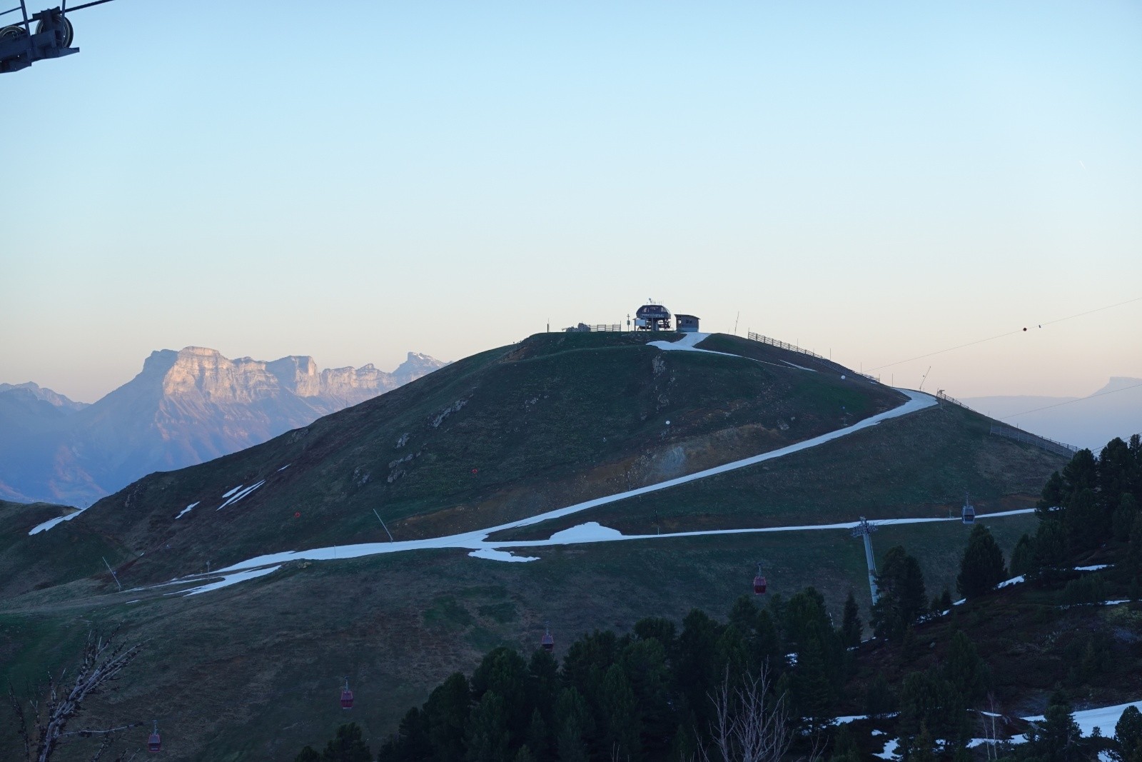 Conditions pour le ski : bonnes, neige dure recouverte récemment par une fine pellicule.