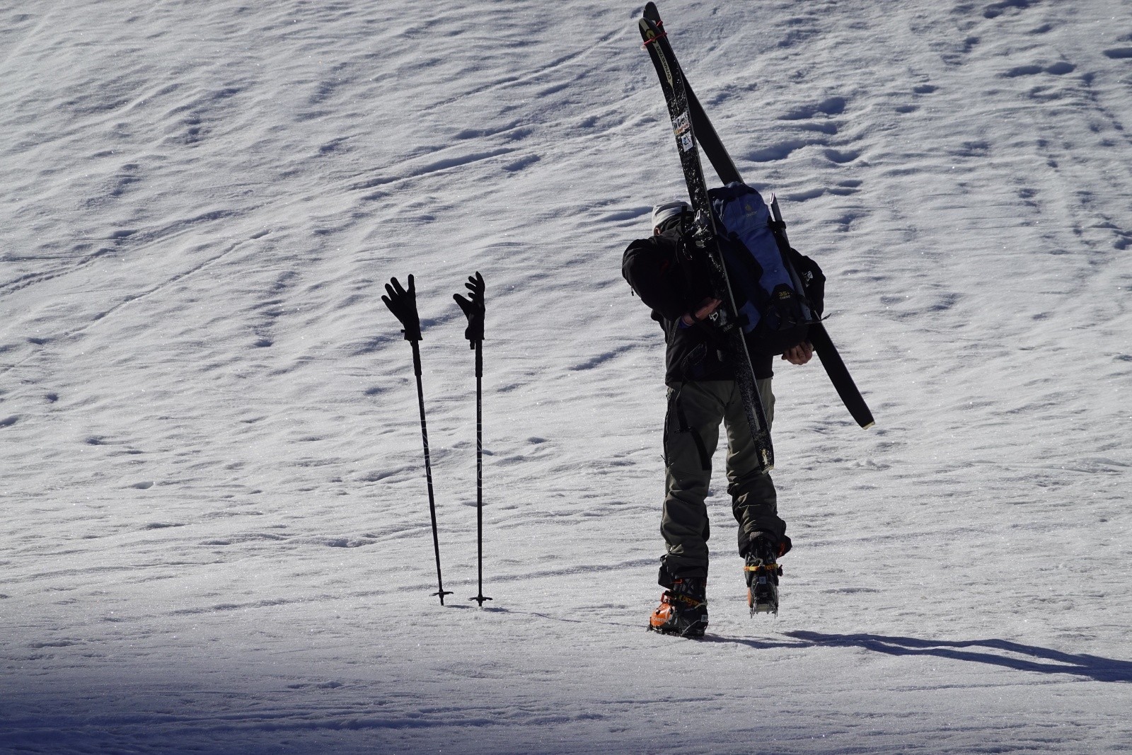 Il monte en crampons au col des Lessines, moins fatiguant me dit -il.