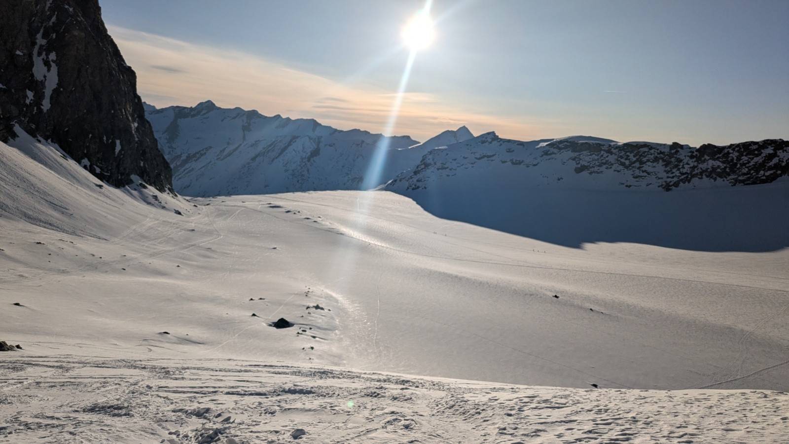 Conditions pour le ski : bonne! Vielle poudre sur la plupart des versants nord, sauf près des sommets ou c'est globalement défoncé par le vent. Très peu de transformation malgré le soleil (les descentes étaient majoritairement orientées nord)
