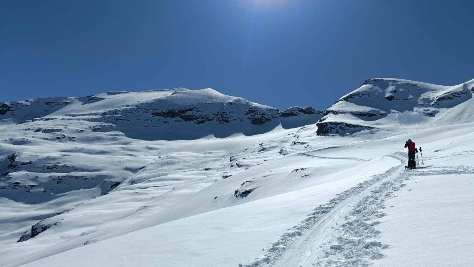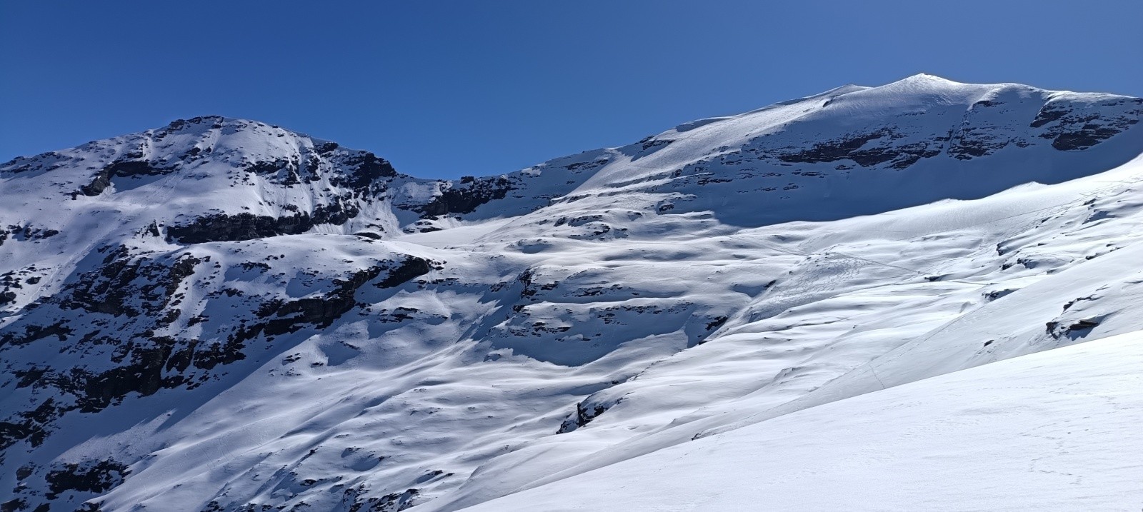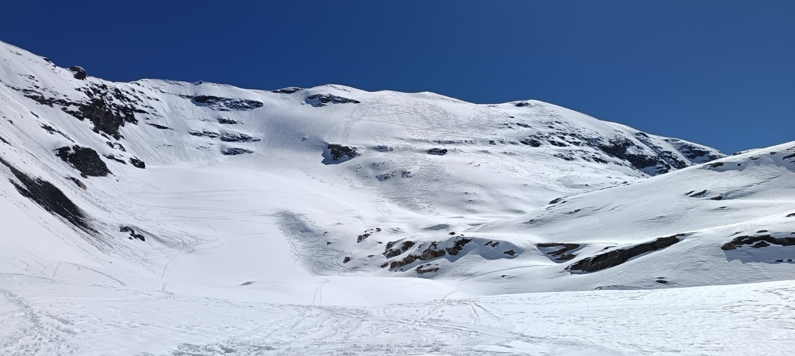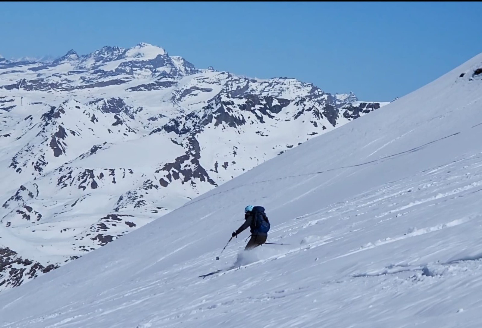 Pas mal de traces pour la descente mais il y'avait encore de la place pour se faire plaisir, et trouver de la bonne poudreuse, quand il fait 25°C en vallée on ne va pas se plaindre.