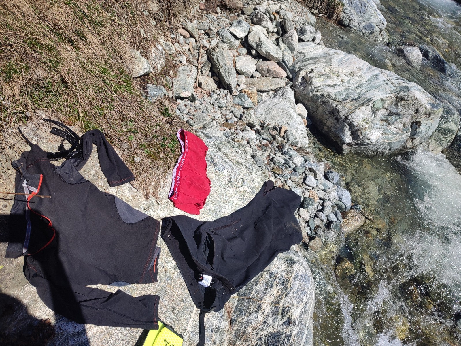 Le fond du vallon en rive gauche permet de déchausser à 1690 au torrent (petit bain frigidarium pour se remettre bien :-).