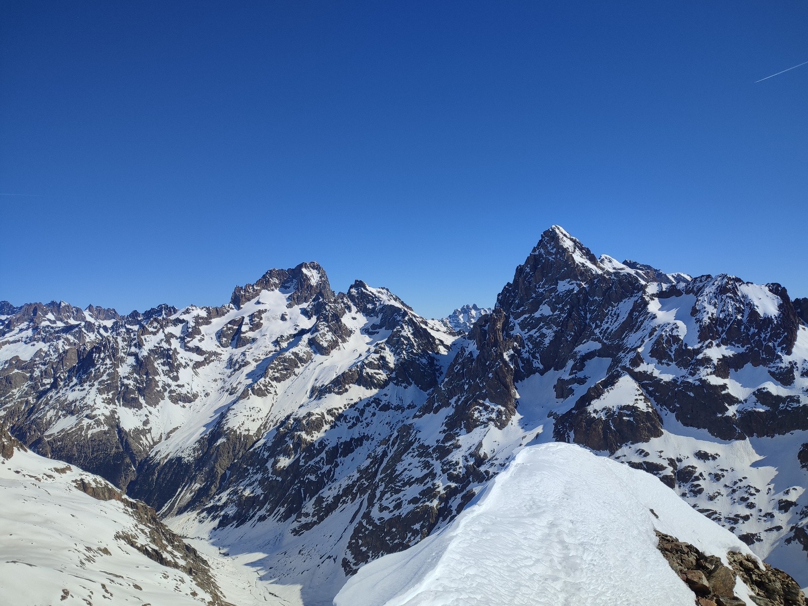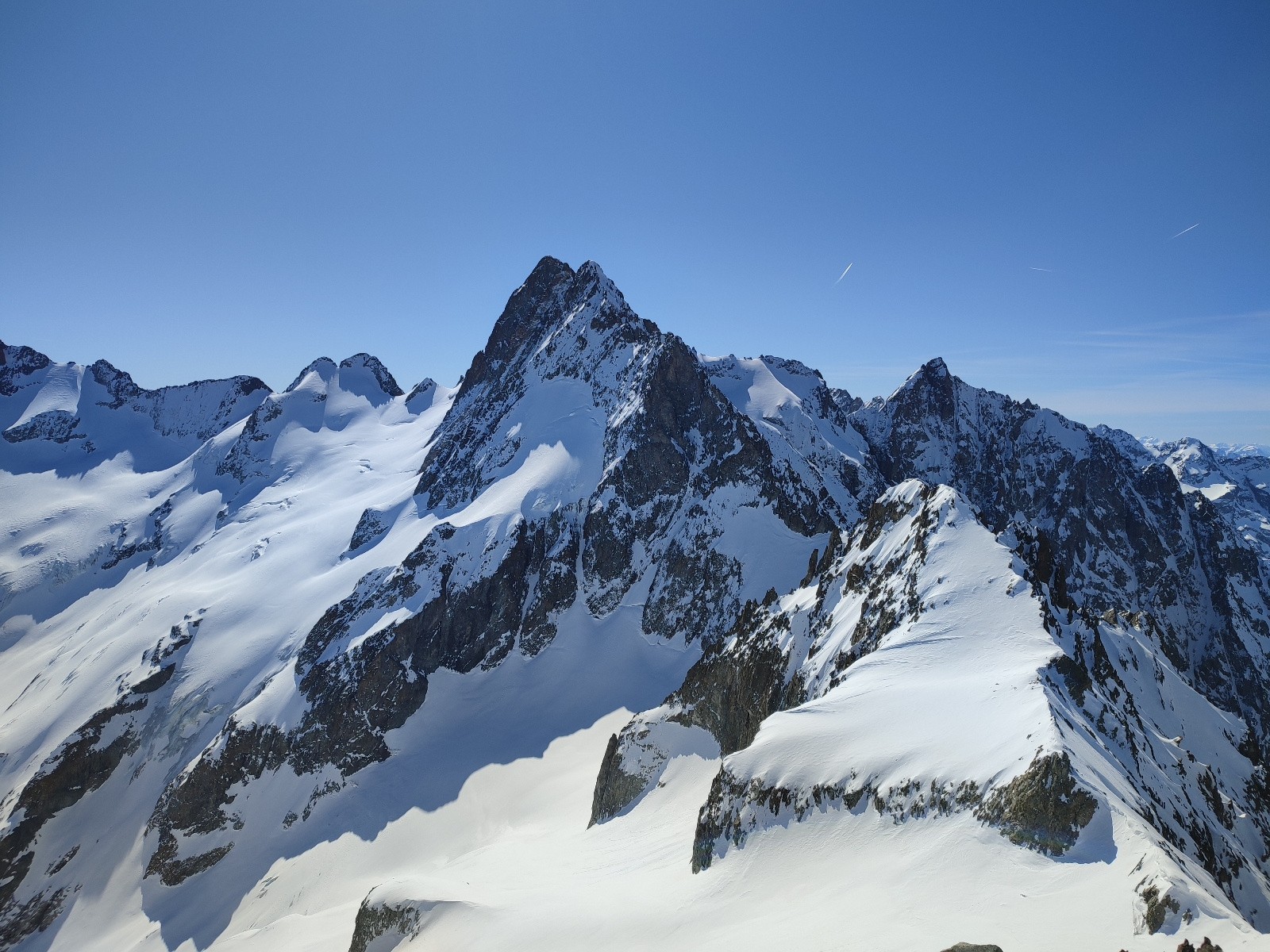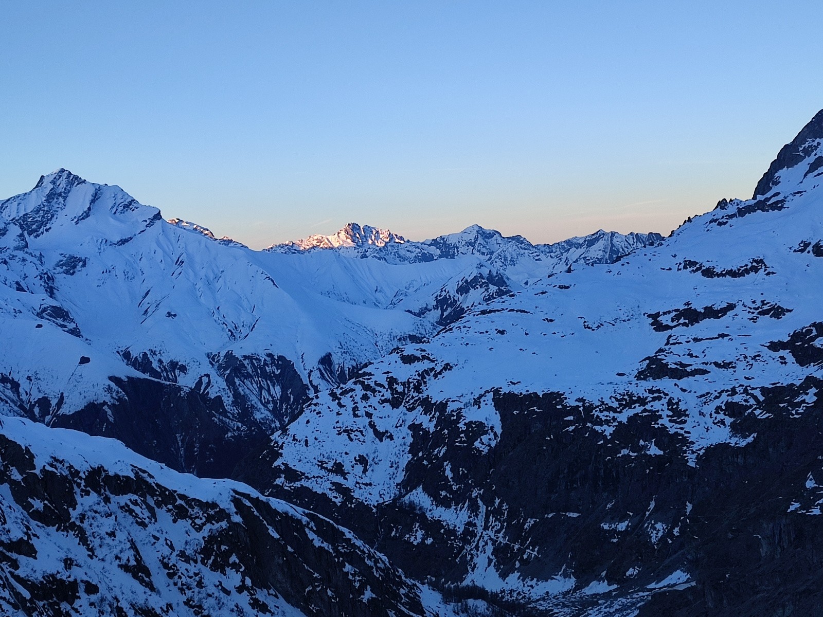 Montée efficace jusqu'au sommet, un petit AR côté Bérarde en attendant que ça decaille bien, et c'est parti pour 1200m de descente continue tout en moquette 5*. Excellent !