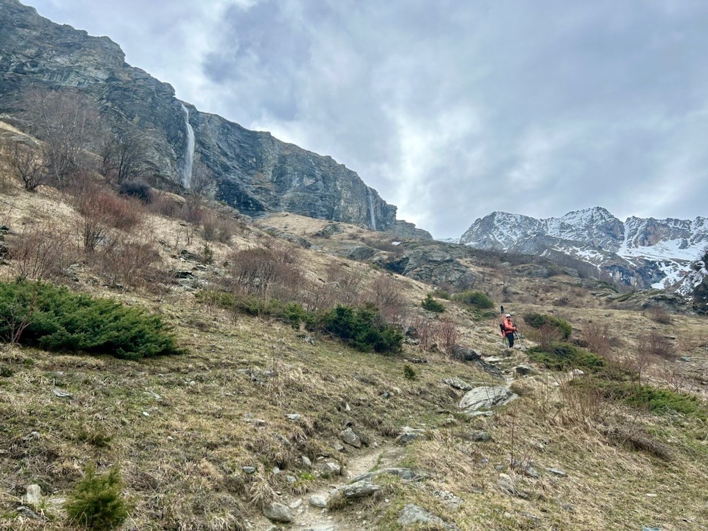 Altitude de chaussage/déchaussage : portage 400m pour rejoindre le loooong vallon qui mène au refuge d’entre le lac.