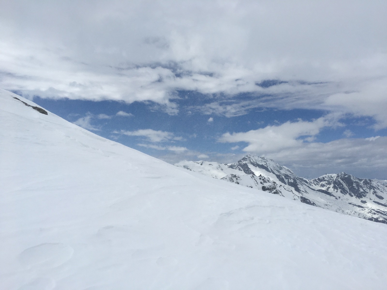 Conditions pour le ski : facette nord des mines en poudre tassée, un délice ! Sous le col des mines encore un peu dur vers 13h30, puis transfo bien plaisante.