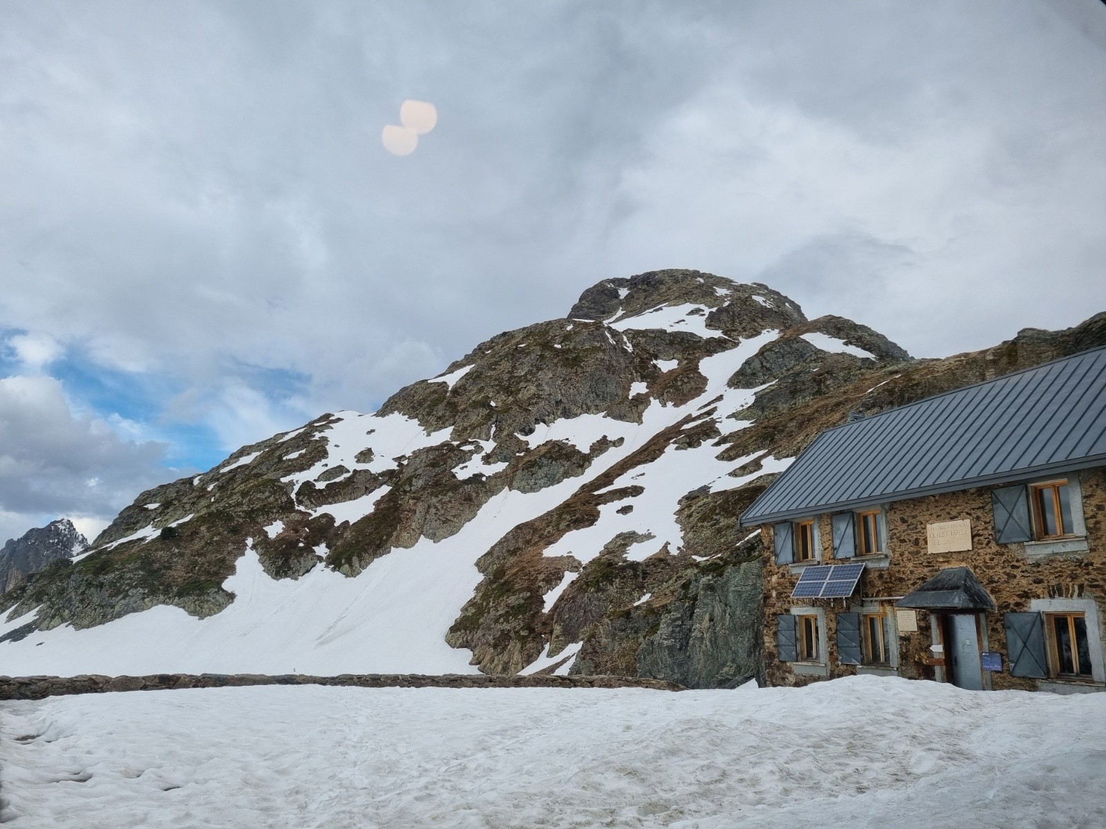 Météo/températures : nuageux au départ à 7h, on se prend un blizzard de neige arrivés au col de la Pra à 10h qui refroidit direct et nous pousse à aller se réfugier au refuge de la Pra pendant une petite heure le temps que ça se calme. Ça se dégage le temps d'une petite crêpe, alternance de soleil et nuage avec un petit vent chaud. Retour en short / t-shirt dans la forêt sous le soleil, 17°c au parking à 16h