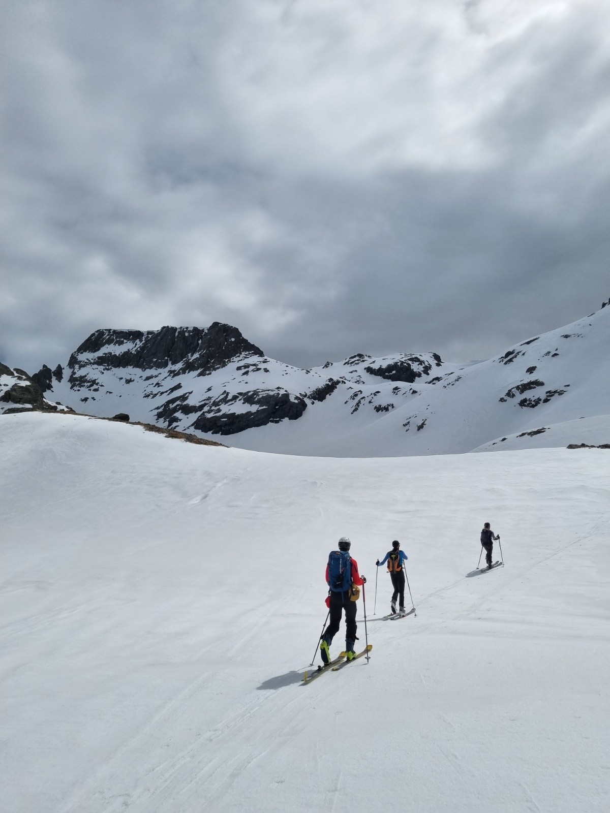 Conditions pour le ski : belle moquette grisâtre partout, un léger regel au sommet, globalement agréable à skier si il y avait de la pente. Ça colle sur les plats (et il y en a sur cet itinéraire)