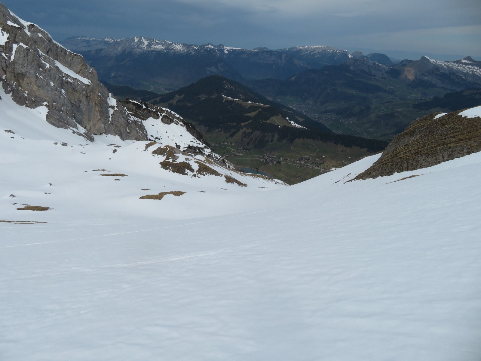 1er mur dans Bella Cha n'est pas très agréable, ensuite s'est du régal. Suis descendu au centre de la combe avant de basculer en rive gauche où la coulée neige & terre s'évite facilement.