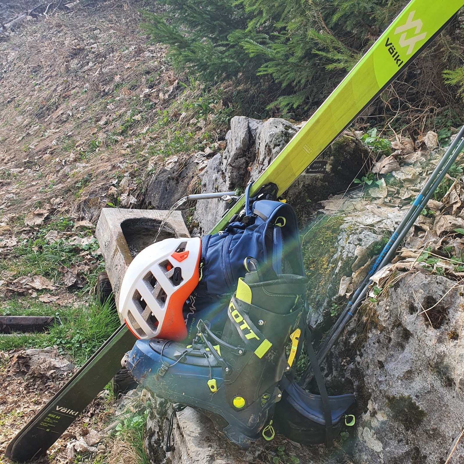 Conditions pour le ski : beaucoup plus de portage sur chemins de rando que de ski. Fin de saison, neige de printemps humide et très collante.