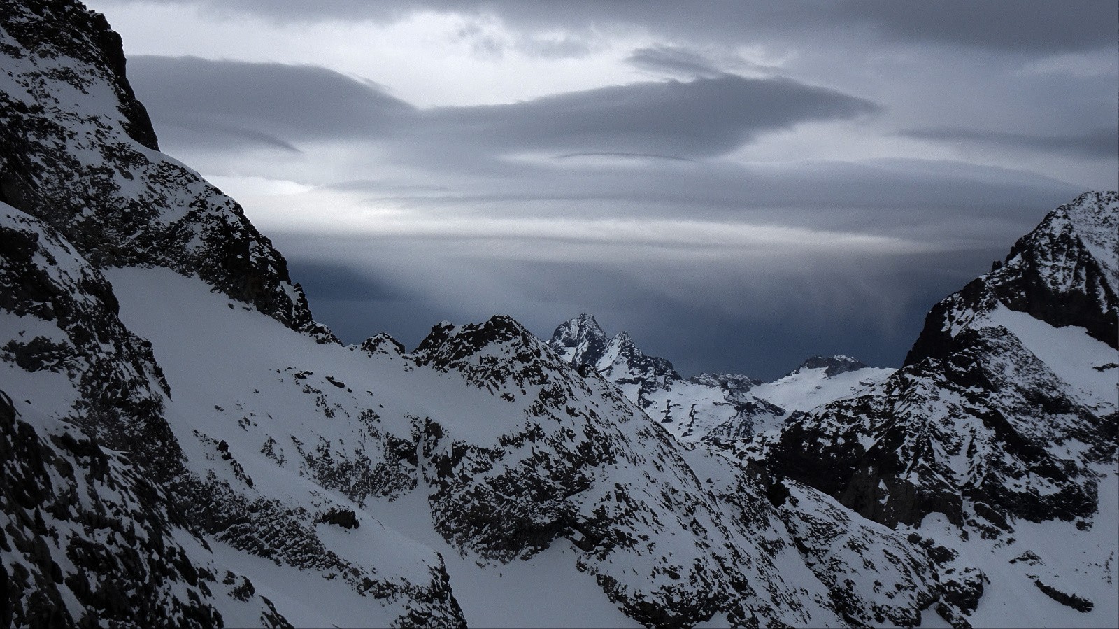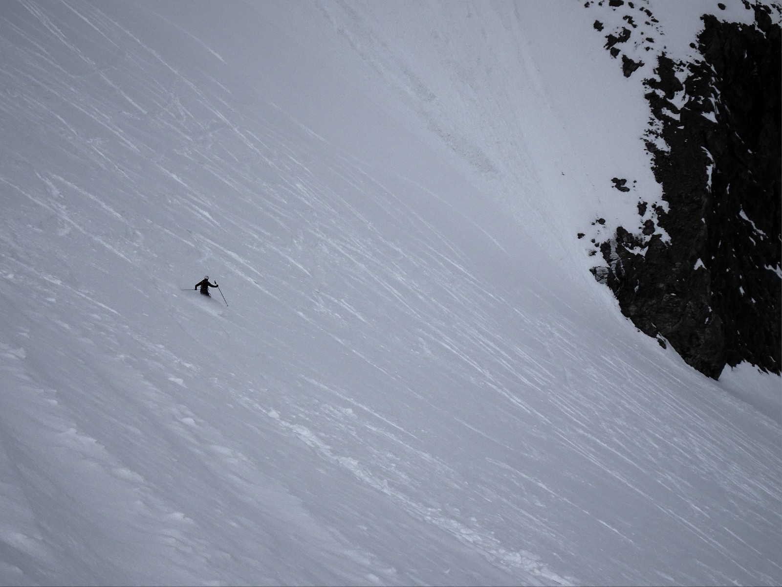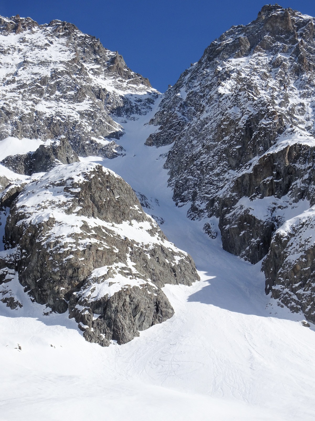 Conditions pour le ski : Pas de dégel en Ouest samedi matin, descente des Enfetchores en neige froide, tracée, parfois cartonées, croutée sur le bas.