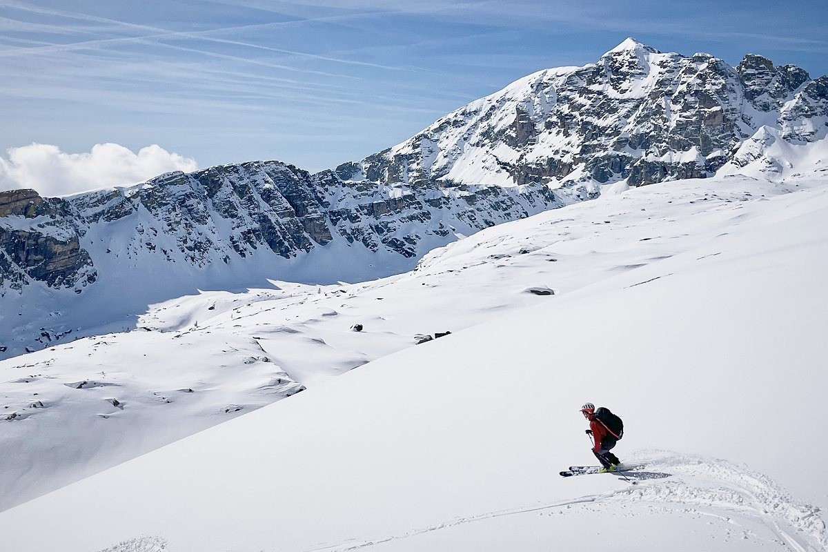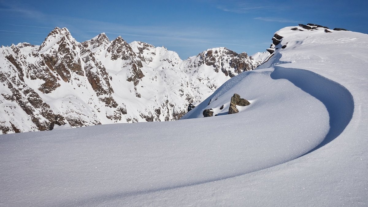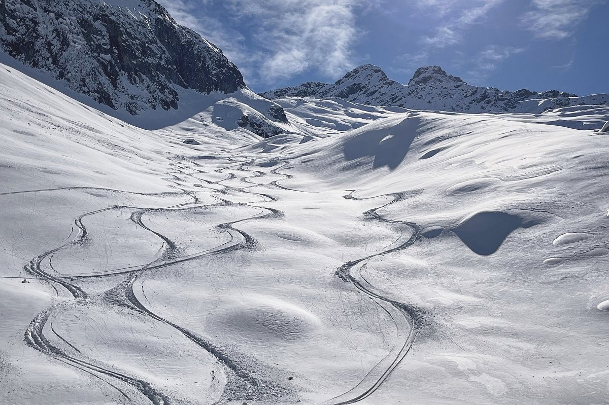 En coupant sous les contreforts du Matto, on se régale dans cette poudre persistante...