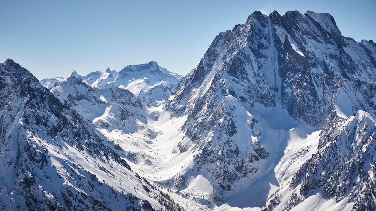 L'Argentera dans toute sa splendeur. Ce couloir monumental du Lourousa a été l'un des grands couloirs des Alpes les plus précocement descendu à ski, dÚs les années 1970...