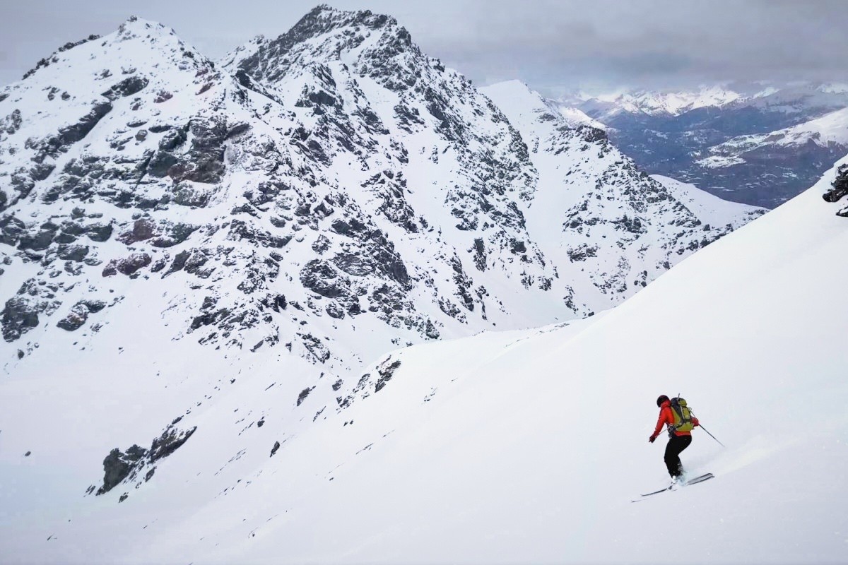 Descente des pentes supérieures de la Punta RamiÚre (Bric Froid) dans un ciel qui restera ici bùché malgré des prévisions plus prometteuses...