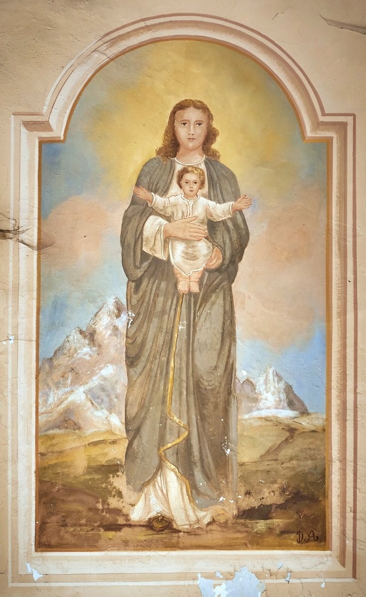 fronton de la chapelle San Rocco (Crissolo, Haute vallée du PÎ), avec le Viso