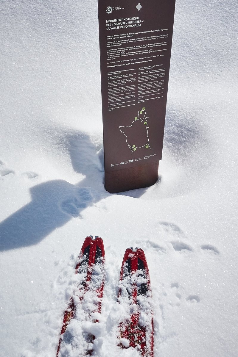 mollo sur les bĂątons de ski car les chiappes (aux nombreuses gravures rupestres remarquables, comme dans le vallon voisin des Merveilles) ne sont pas bien loin sous la neige !