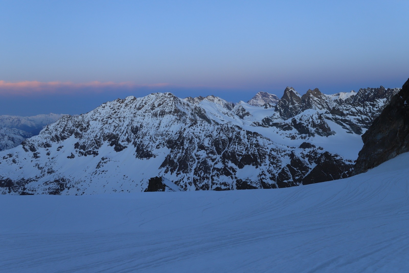 - Entre le refuge Aosta et le point 3772 m : neige dure, avec beaucoup d'irrégularités, pas de dégel, pas agréable à skier...