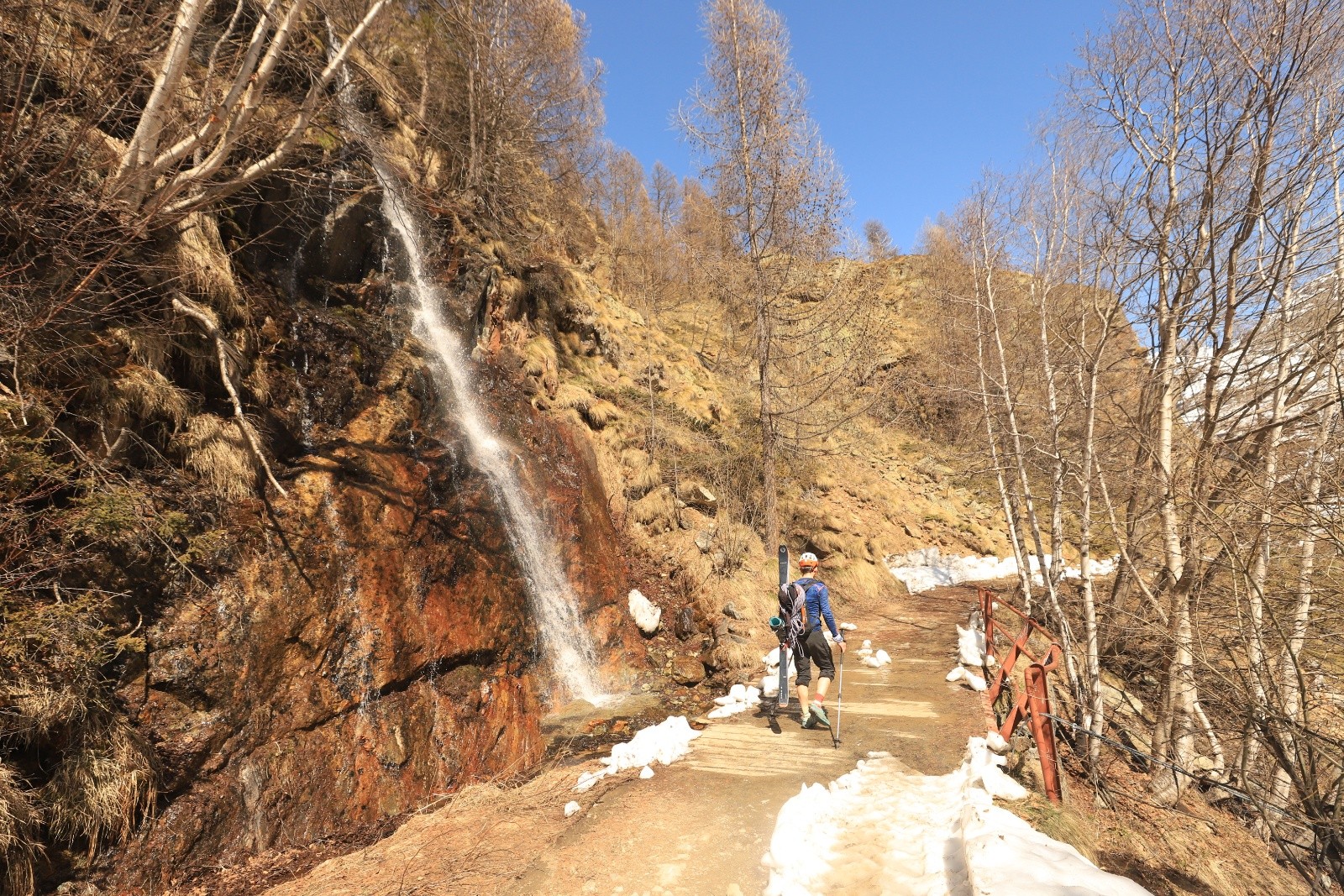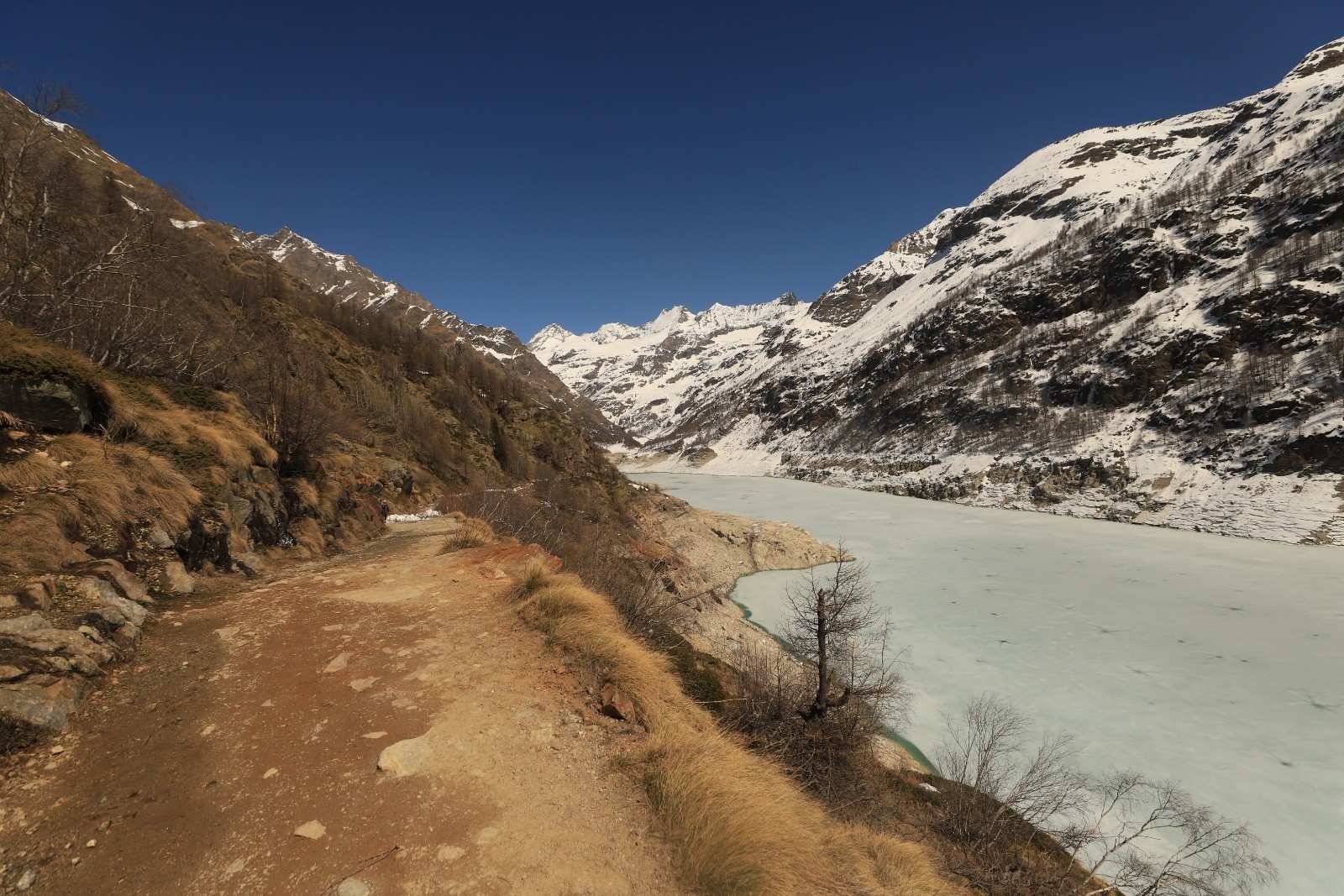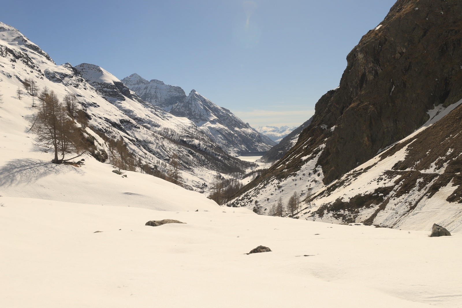 Altitude de chaussage/déchaussage : Rifugio Prarayer 2010 m - tout le cheminement le long du lac se fait à pied