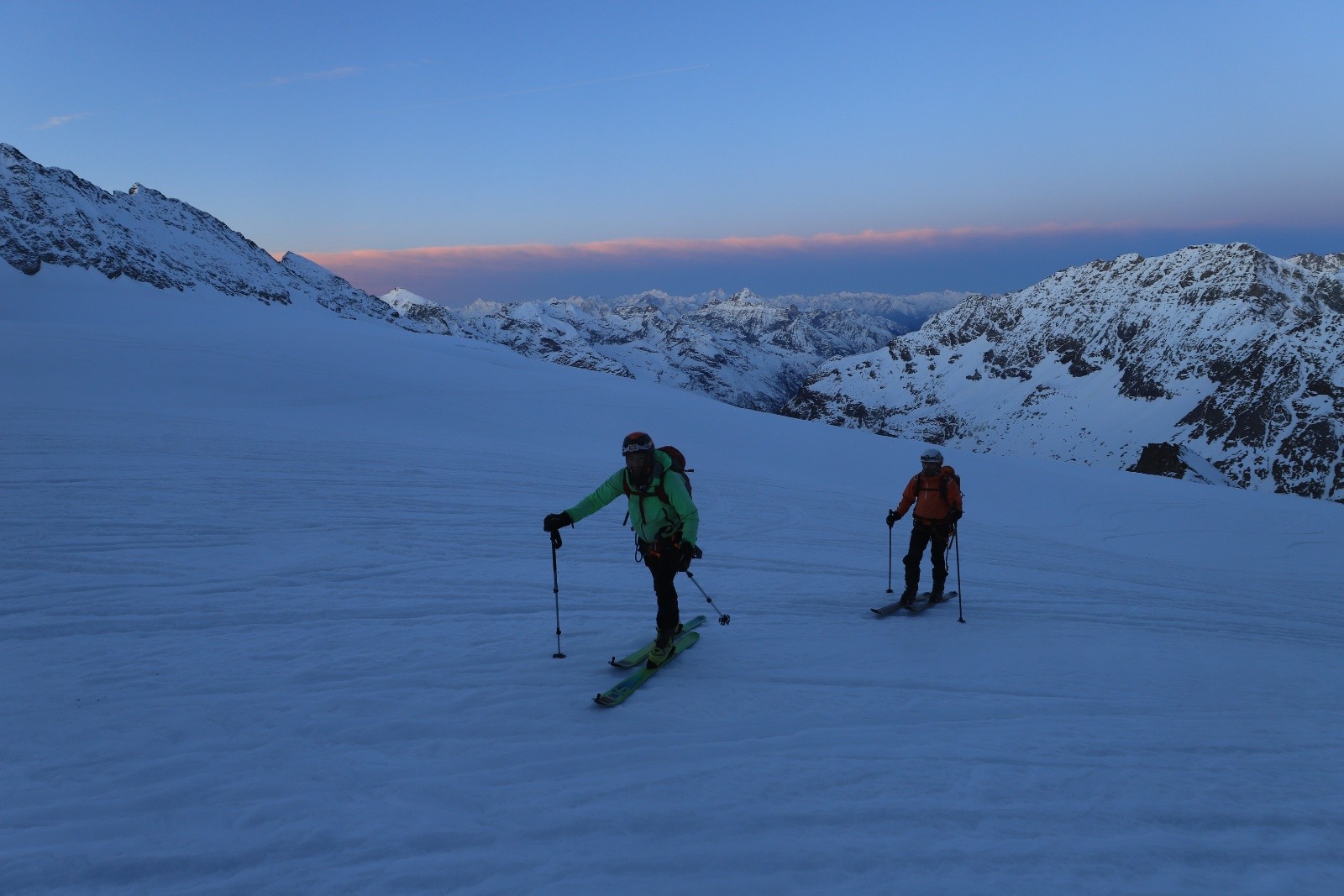 Bref, sinon pour la partie ski (on est sur Skitour ici pas C2C😅) ben... fallait pas trop venir pour cela, neige non décaillée et très peu agréable à skier. On a quand même eu droit à une belle averse de neige dans la descente vers le refuge!