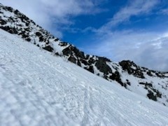 Ensuite avec guide on a fait cette remontée de face nord en crampon dans une neige transformée sur 20 a 30cm de profondeur, c'était assez cardio, je tournais en boucle "petit pas par petit pas" m'imaginant Inox sur l'éverest .