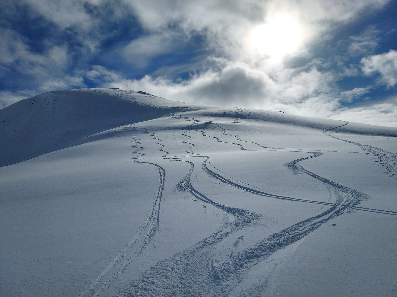 Conditions pour le ski : excellentes, bonne poudre (jusqu'à 40 cm de fraîche), accumulations variables mais généreuses. Neige un peu plus lourde dans la forêt, qui a commencé à transformer dès que le soleil a percé.