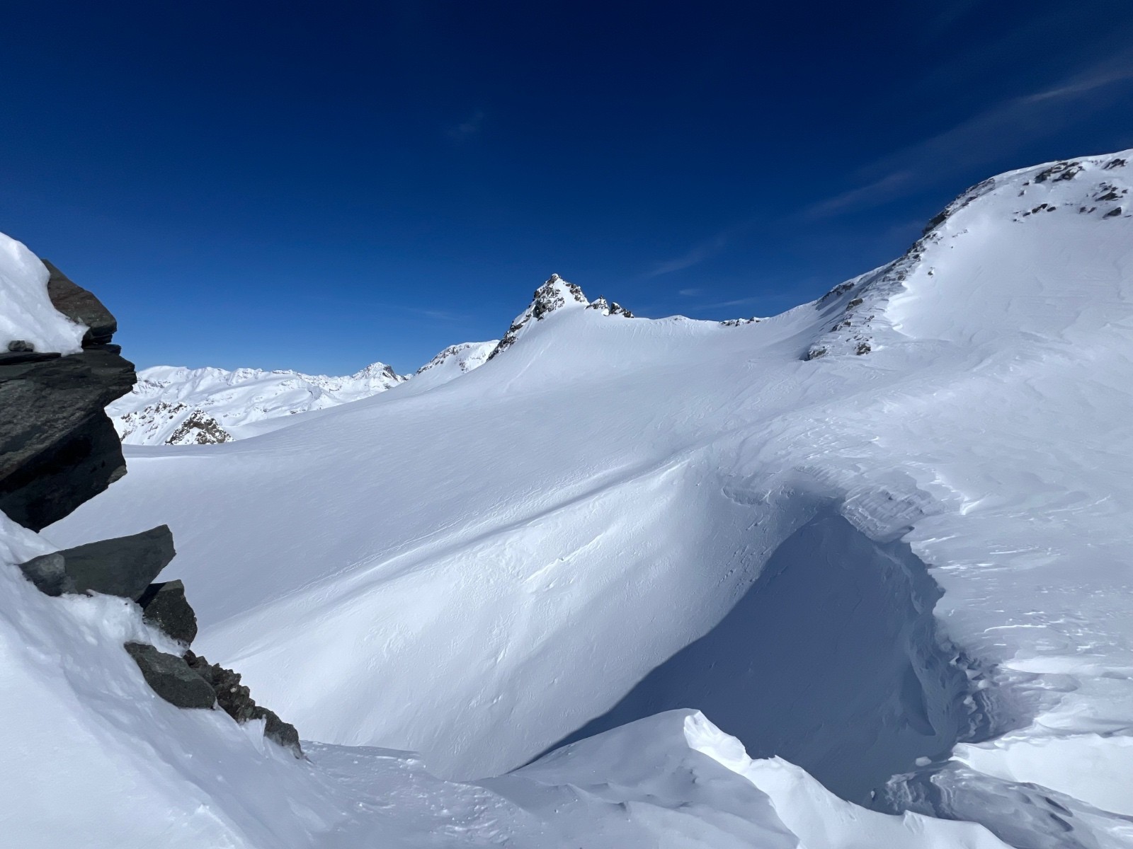 Conditions pour le ski : Croûte infâme dès le matin pratiquement en tout lieu, cassante sur neige humide voire mélasse. Rares portions en poudre un peu lourde en Nord très haut. Excellente neige sur piste puis soupasse et jolis champs de bosses