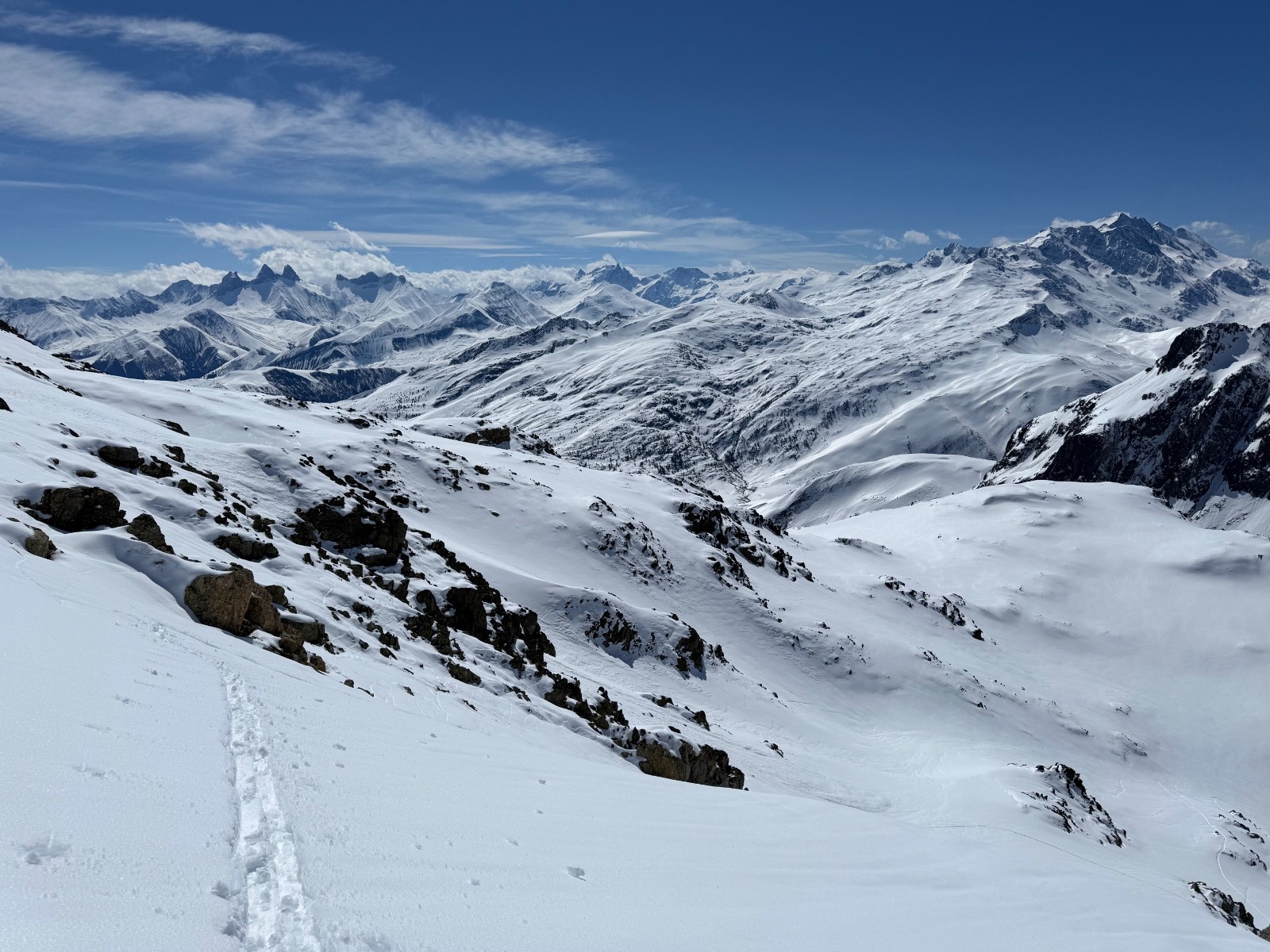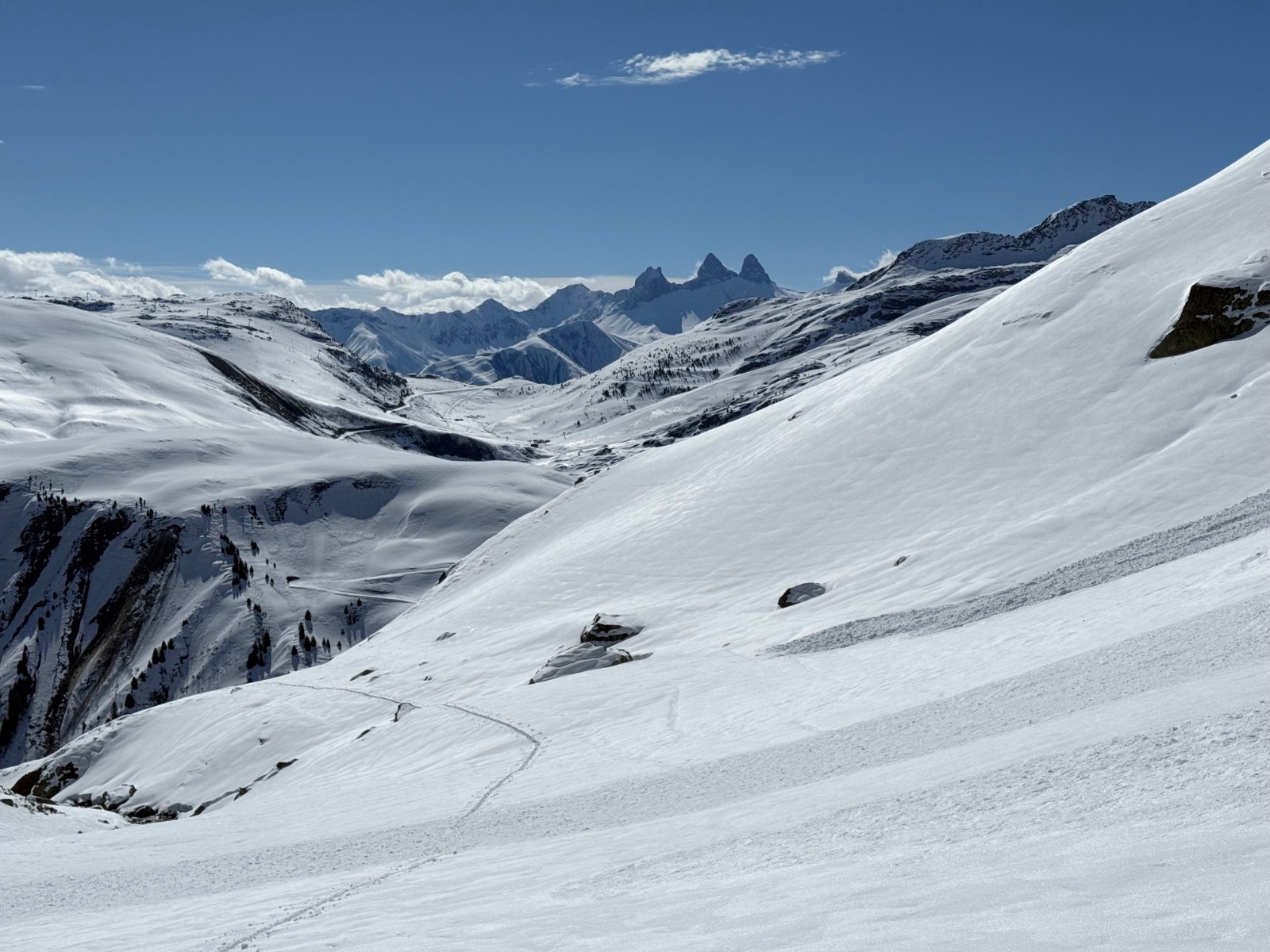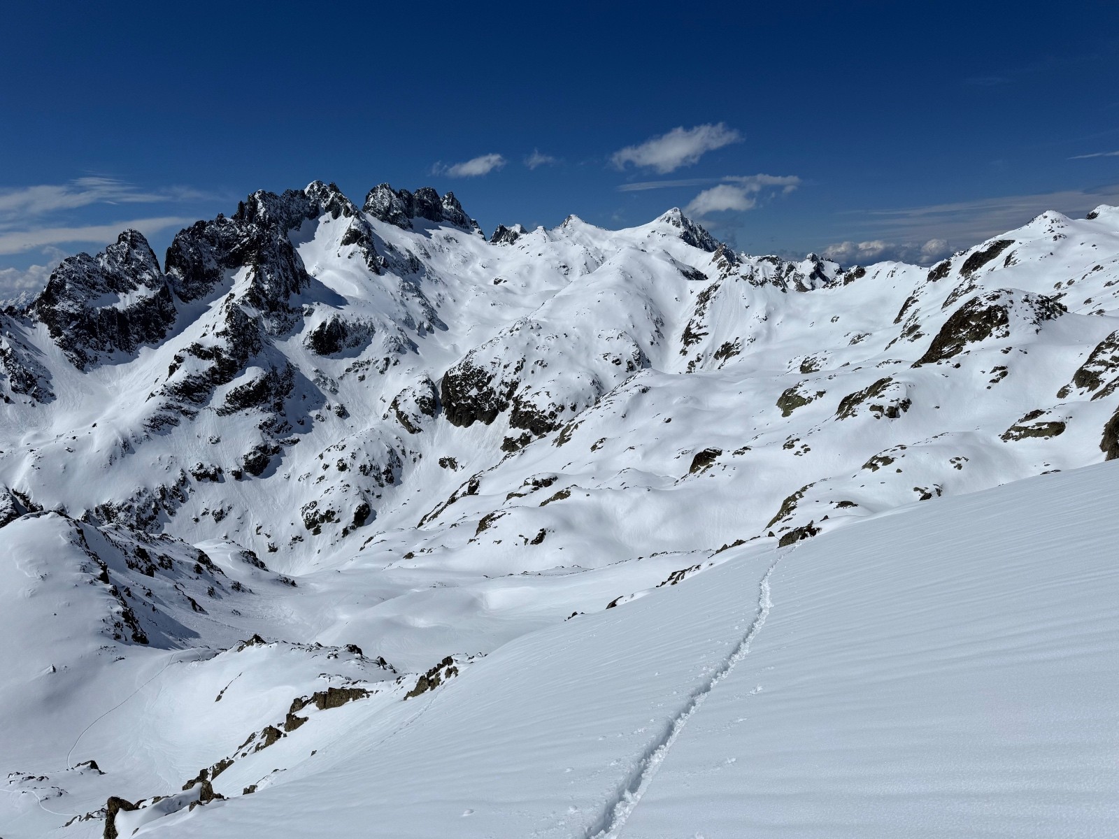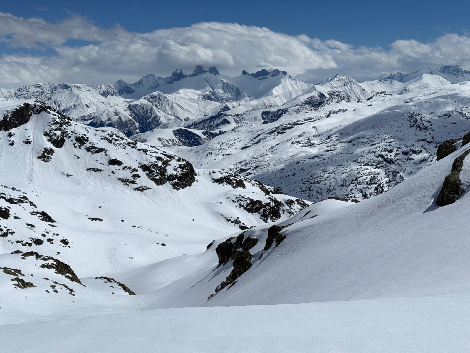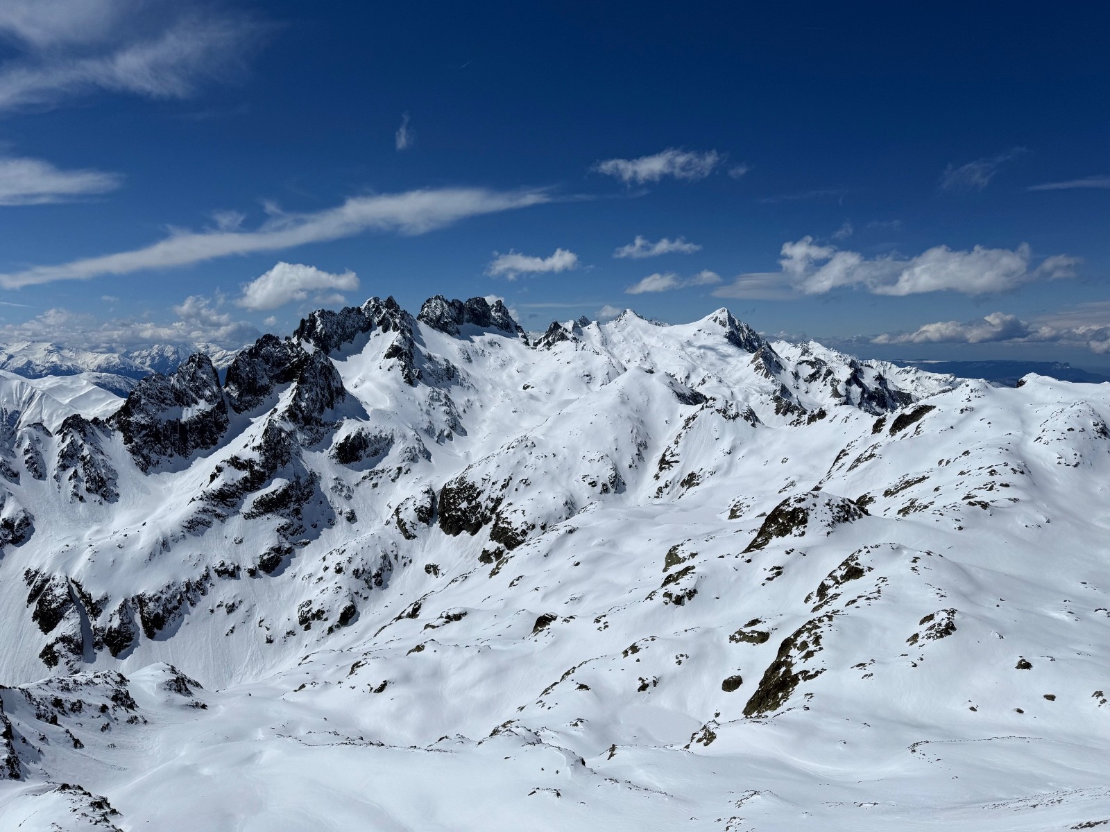 Le plus pénible fût de tracer la Sambuis dans une neige qui ne portait pas. A contrario les 2 premières descentes furent plutôt bonnes 🙂. Très belle ambiance printanière et un Belledonne bien blanc après cette épisode neigeux.