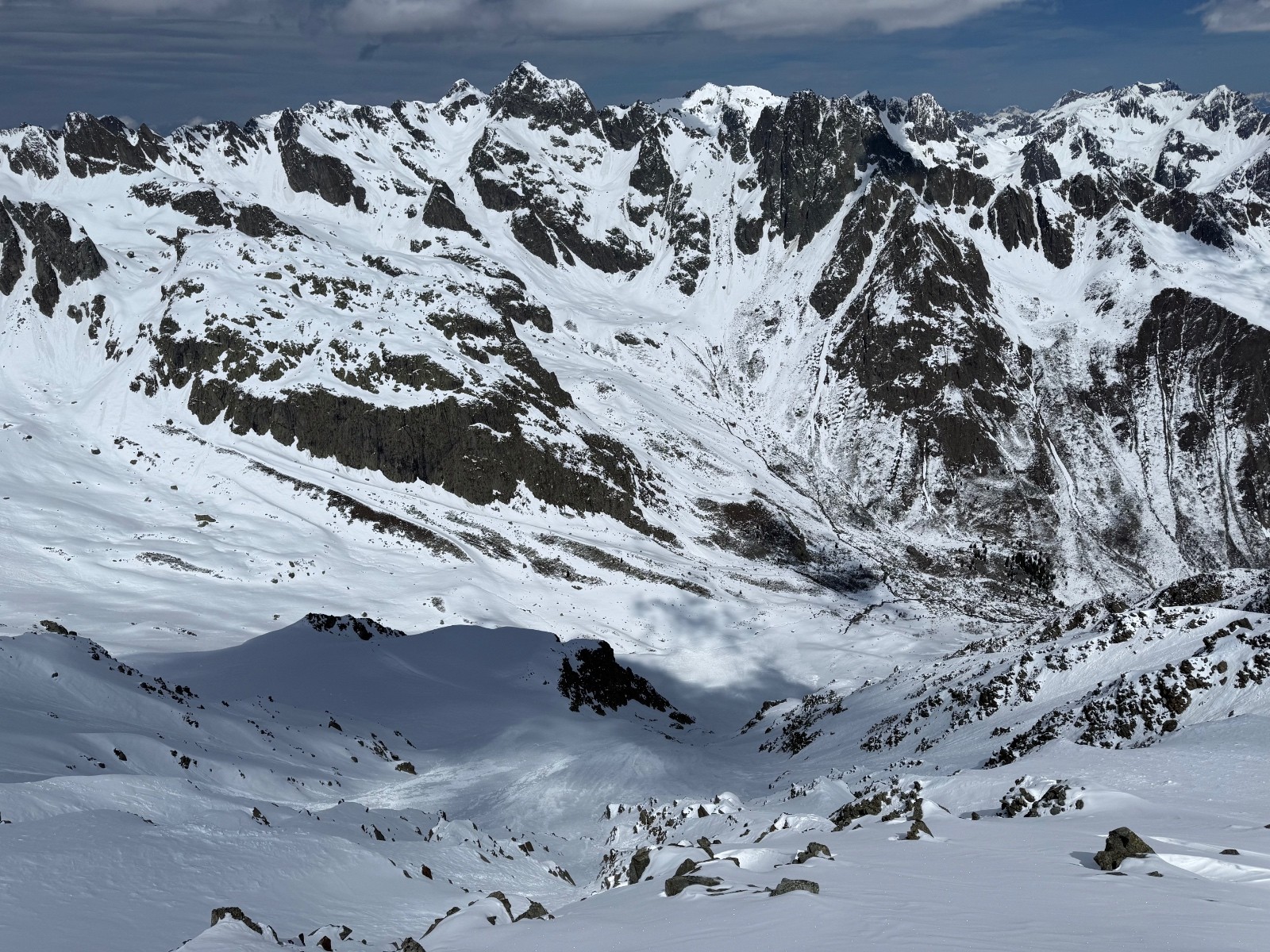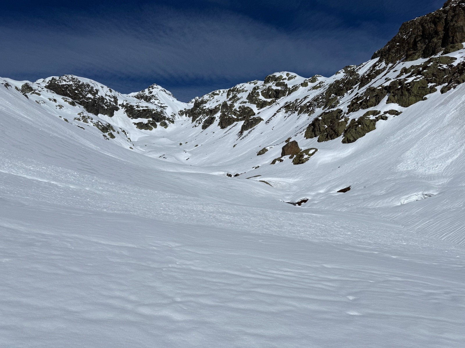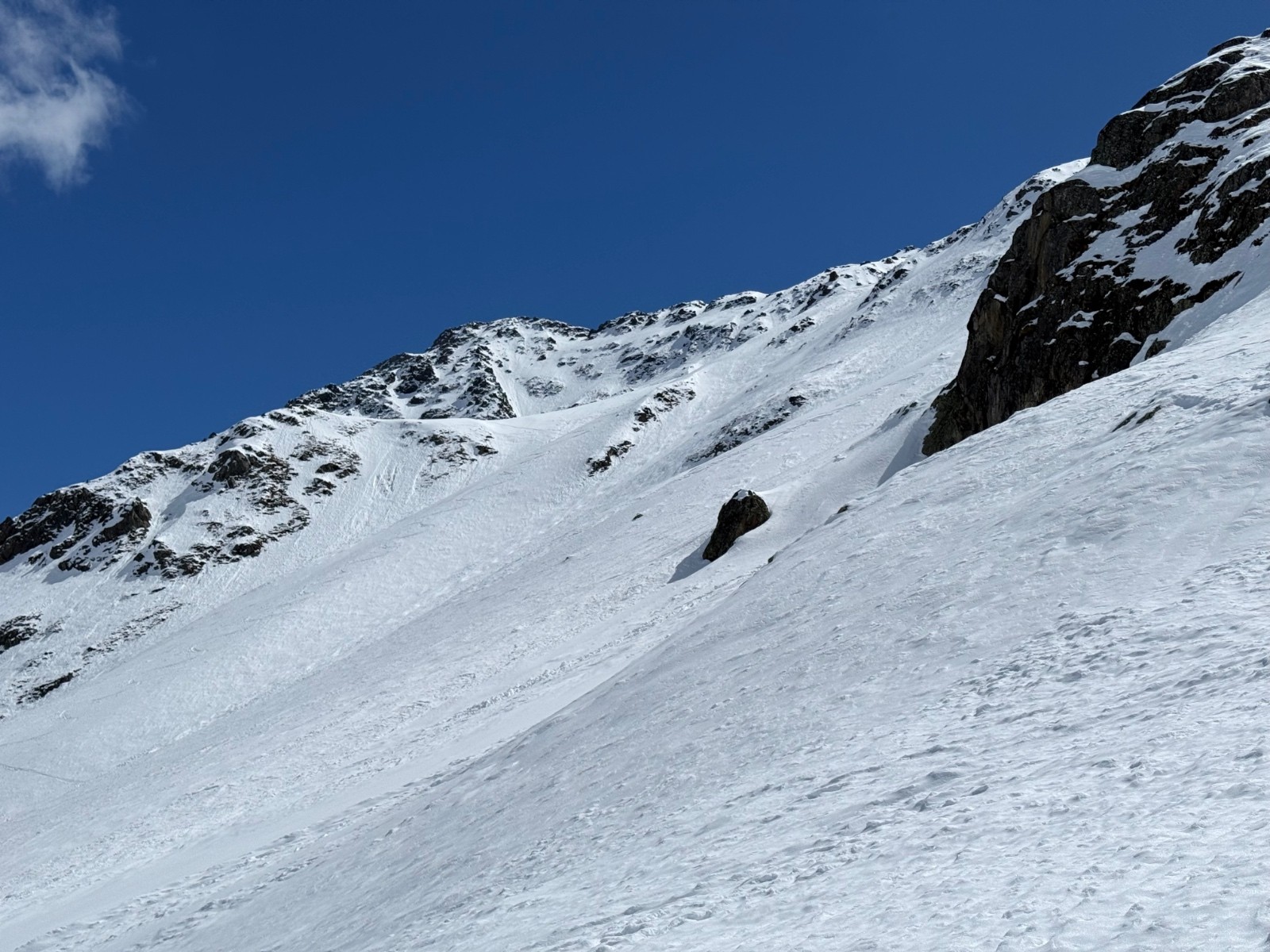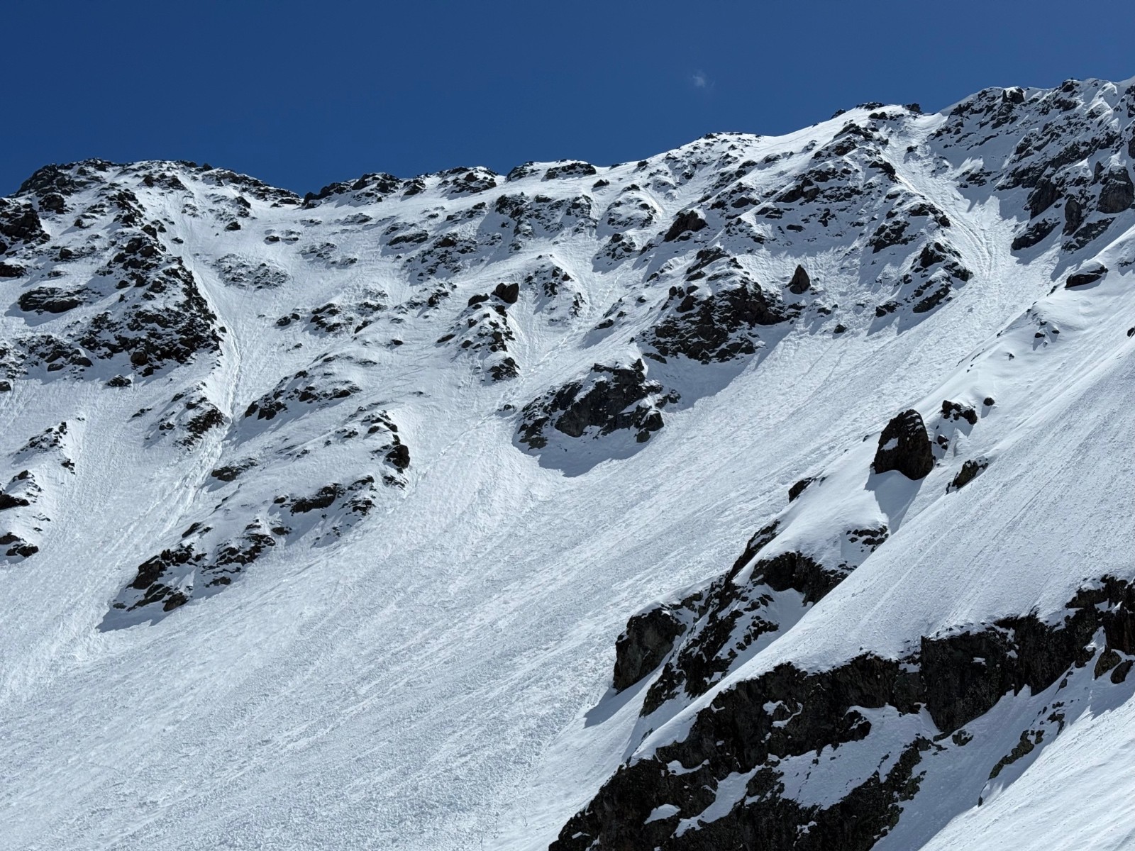 Conditions nivo et activité avalancheuse : de nombreuses coulées en toutes orientations et dès que c’est raide. La Face Nord avait purgée, sûrement en fin de perturbation puisque le fond ferme était recouvert d une petite couche de poudre.