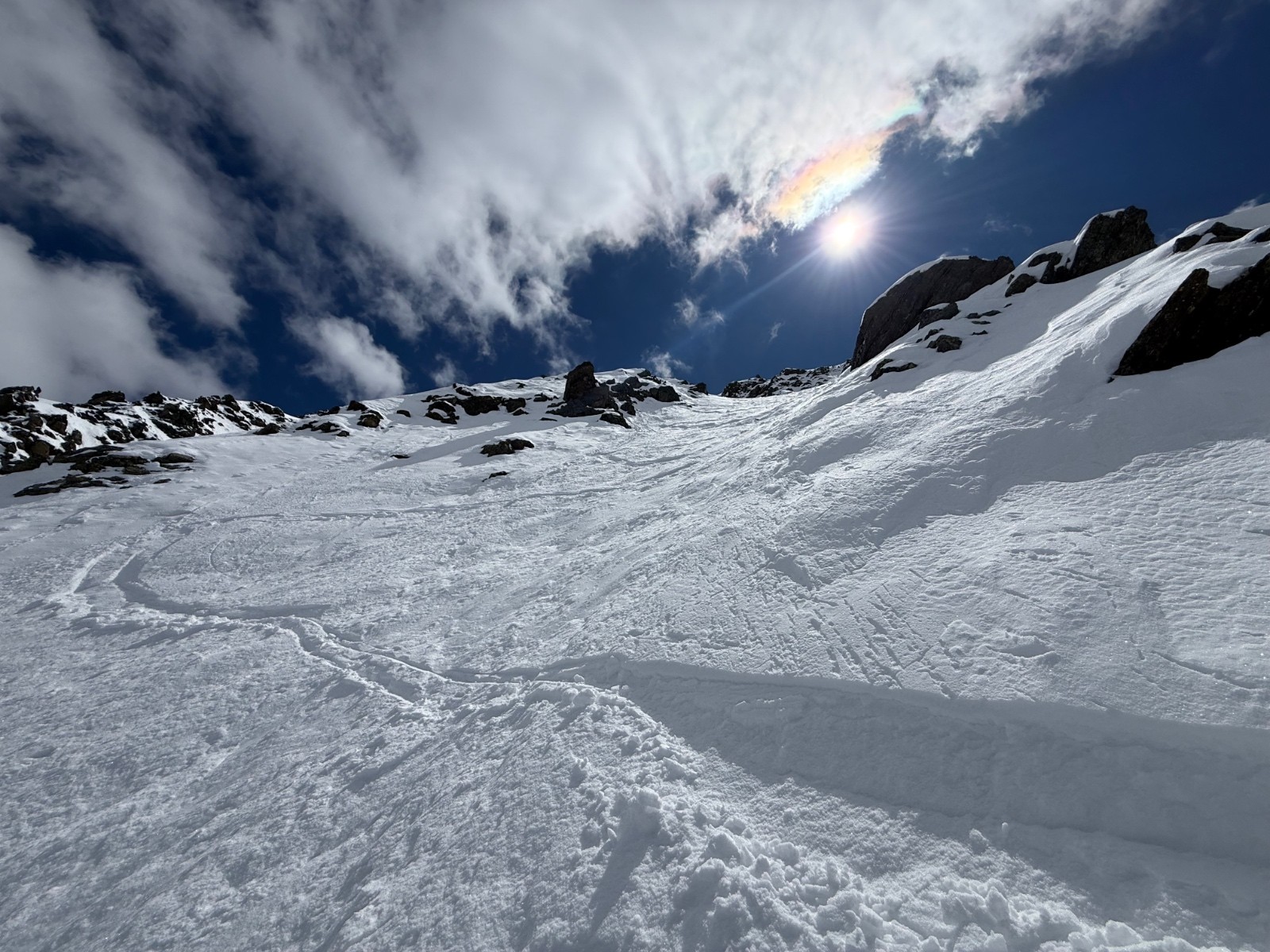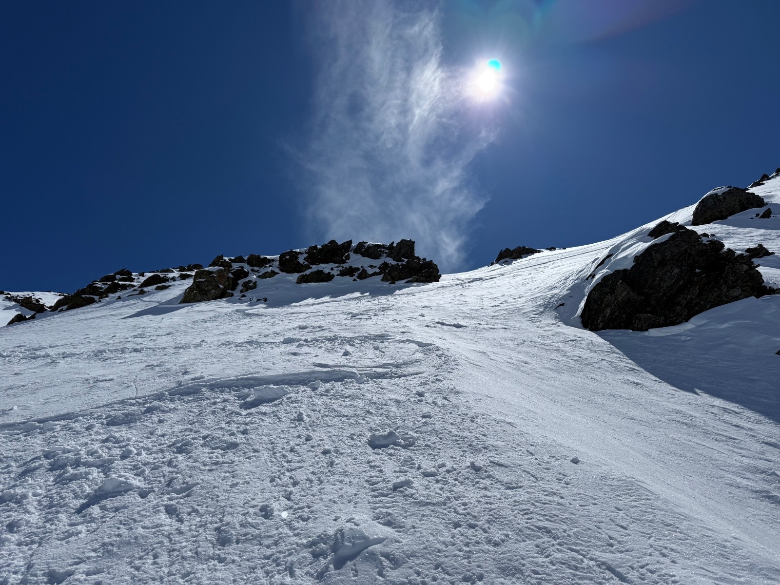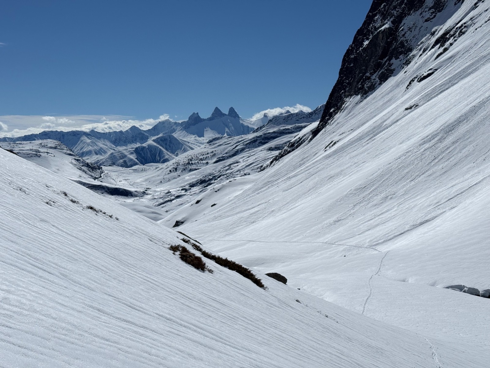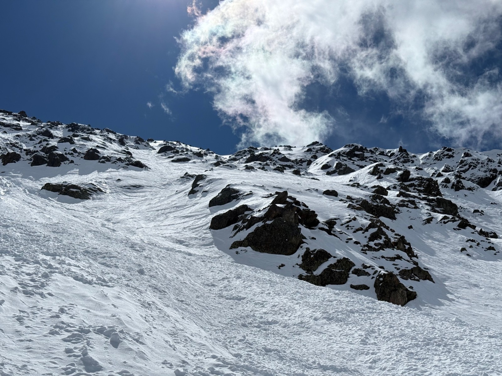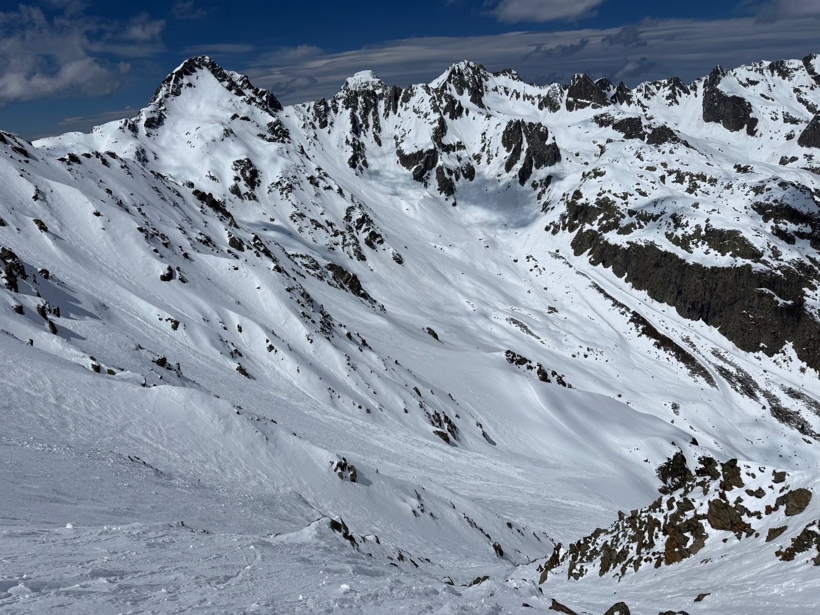 Conditions nivo et activité avalancheuse : de nombreuses coulées en toutes orientations et dès que c’est raide. La Face Nord avait purgée, sûrement en fin de perturbation puisque le fond ferme était recouvert d une petite couche de poudre.