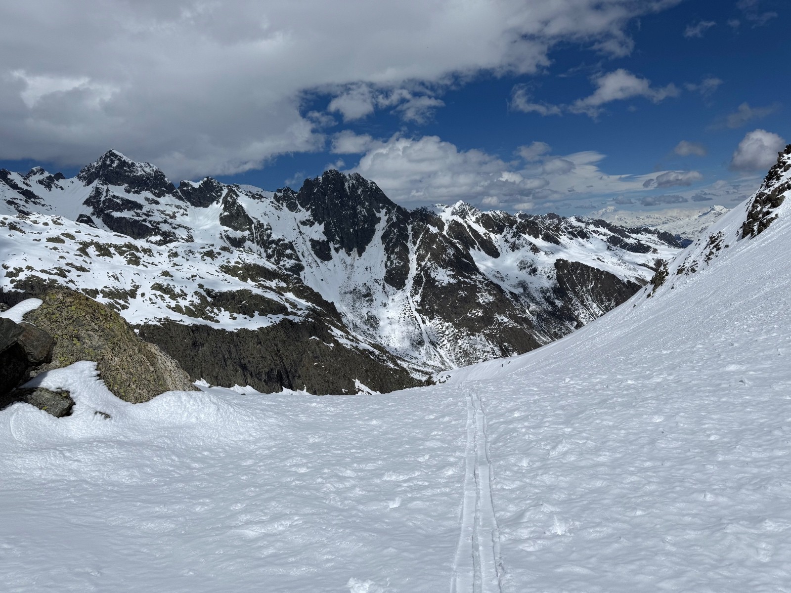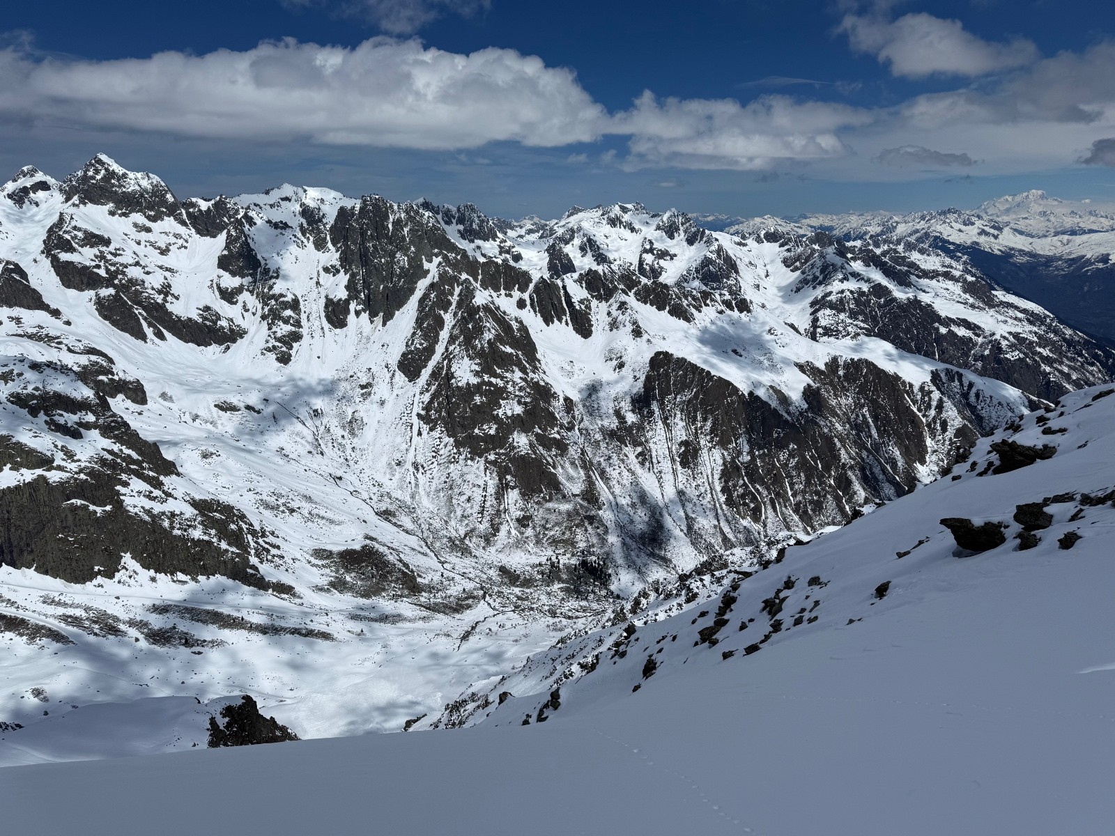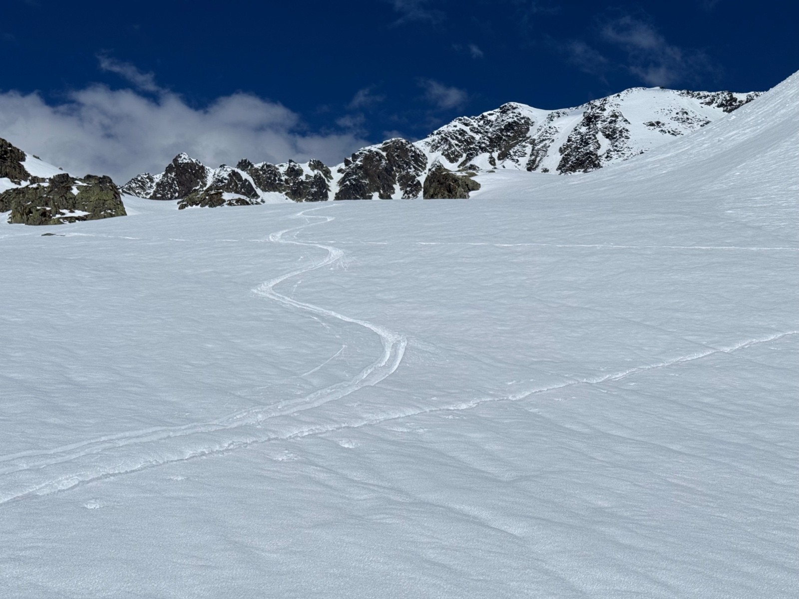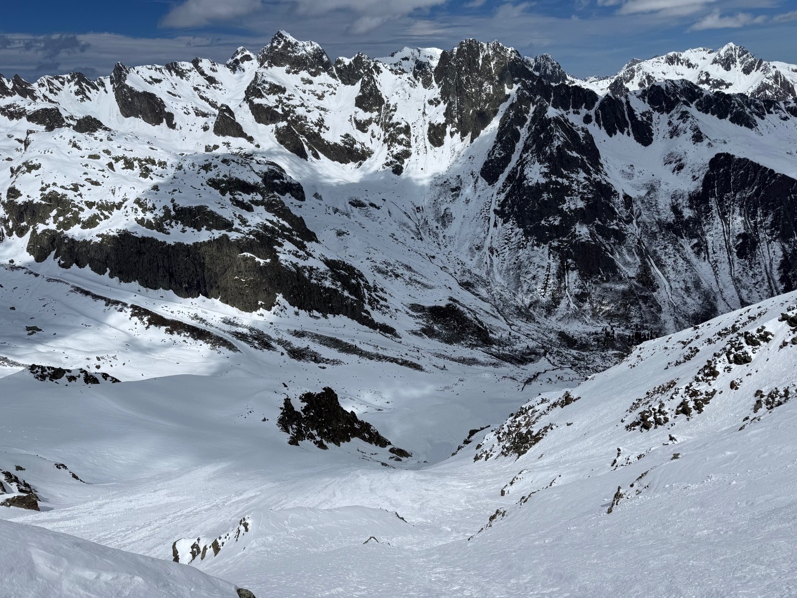 Conditions nivo et activité avalancheuse : de nombreuses coulées en toutes orientations et dès que c’est raide. La Face Nord avait purgée, sûrement en fin de perturbation puisque le fond ferme était recouvert d une petite couche de poudre.