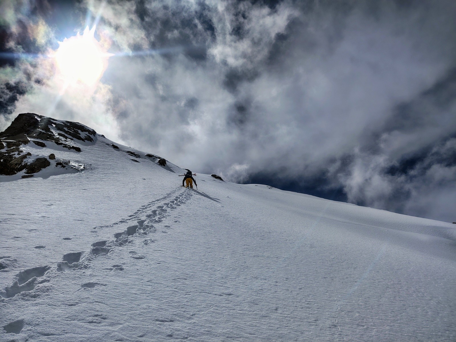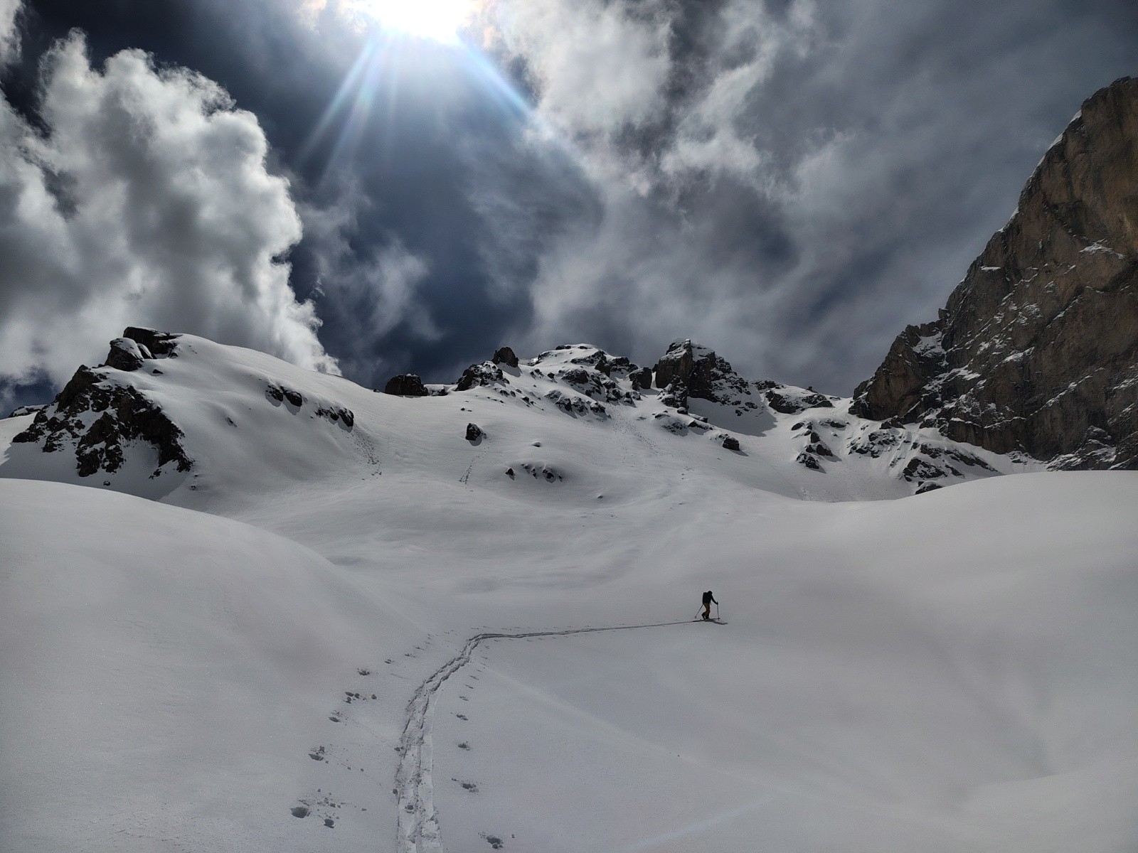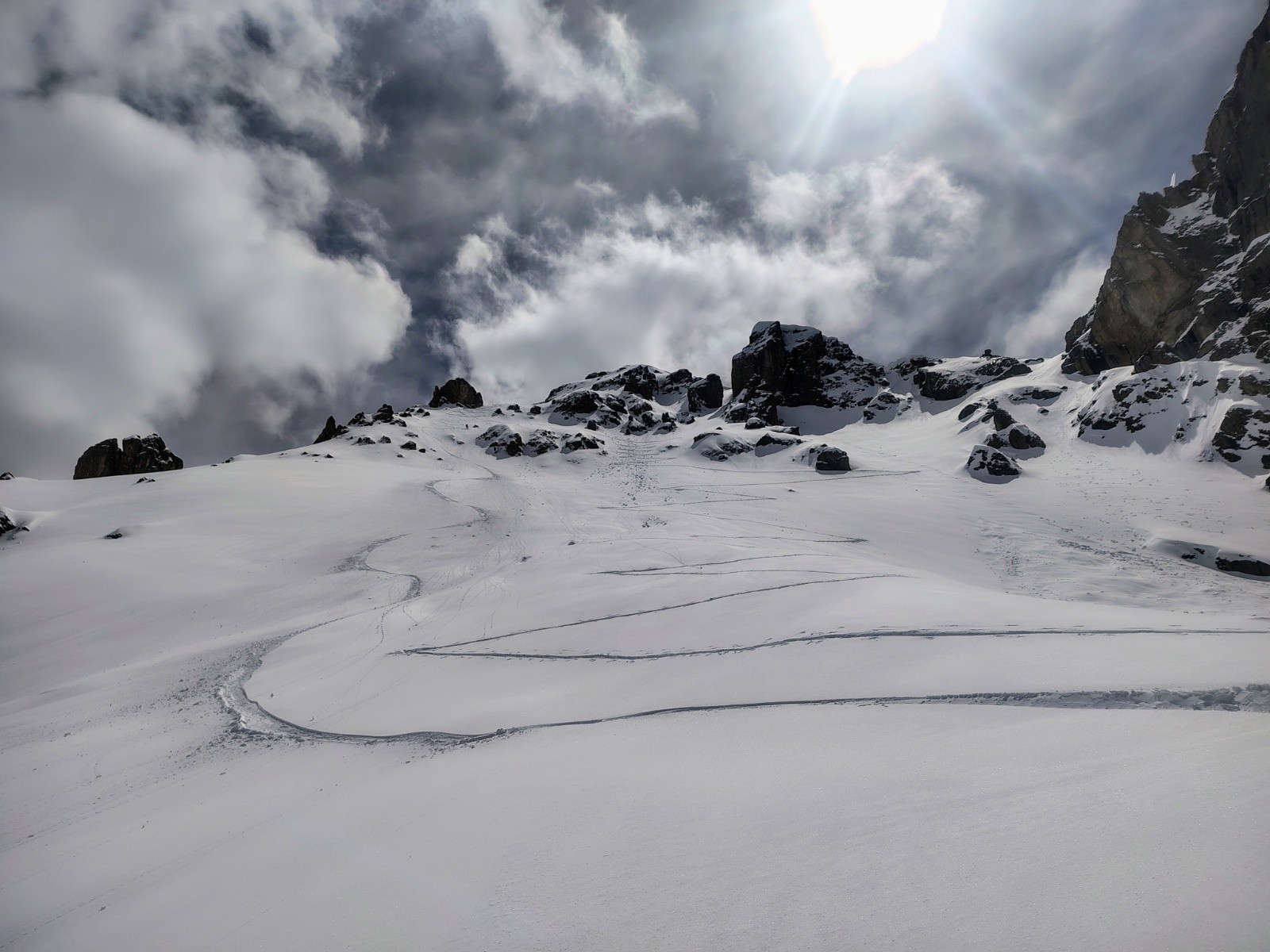 Conditions pour le ski : Correcte. Les 400m de la directe nord en poudre un peu collante, mais ça passe avec la pente. En dessous, ça colle.