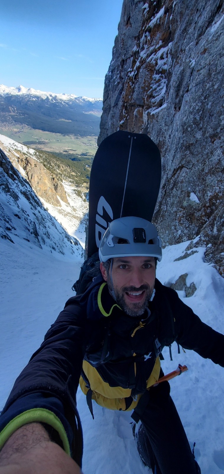 1er objectif le Vermicelle qui sert d'initiation aux cramponnage et piolets. Nickel, couloir bien rempli en cette fin de saison, pas de trace, 20cm de poudreuse sur fond dure. Parfait, superbe ambiance à la montée, c'est magnifique. Et la descente, un régal !