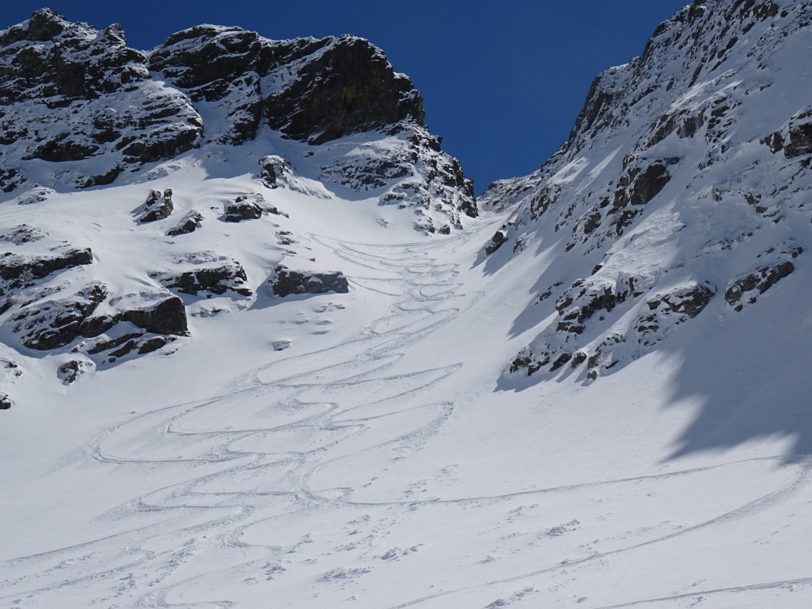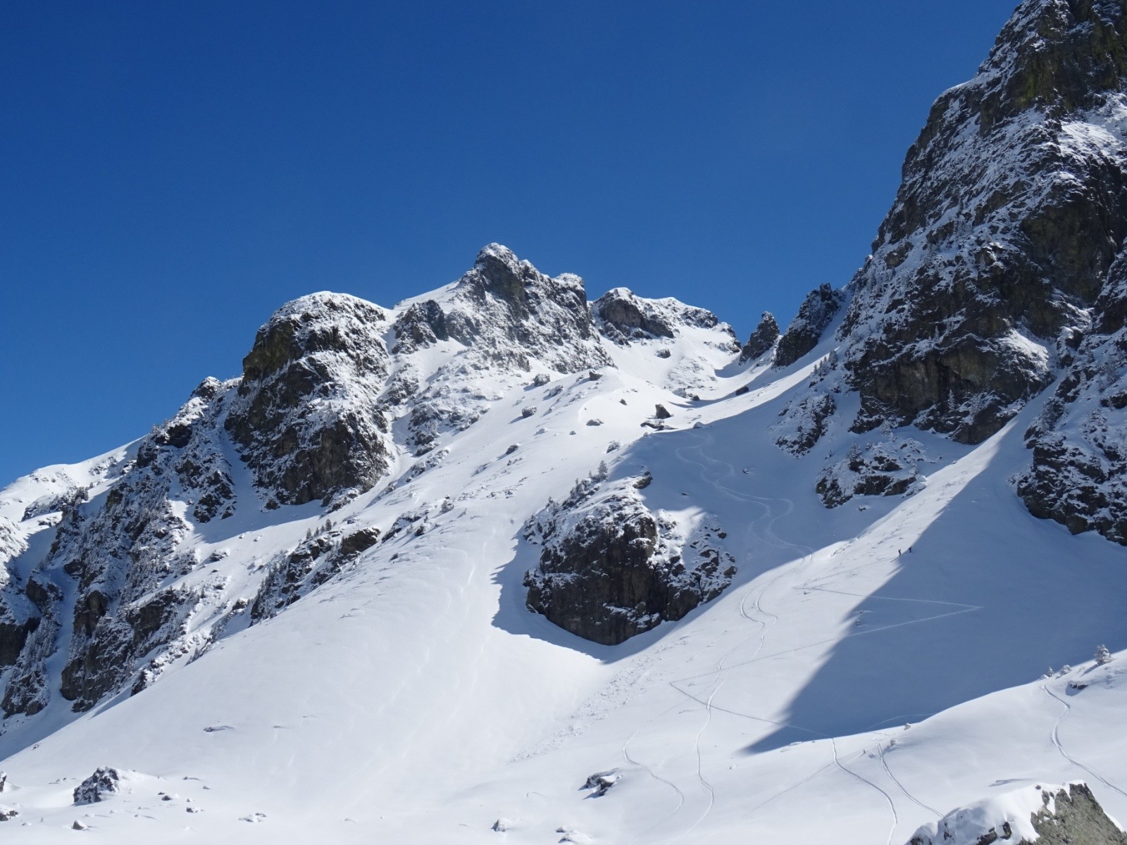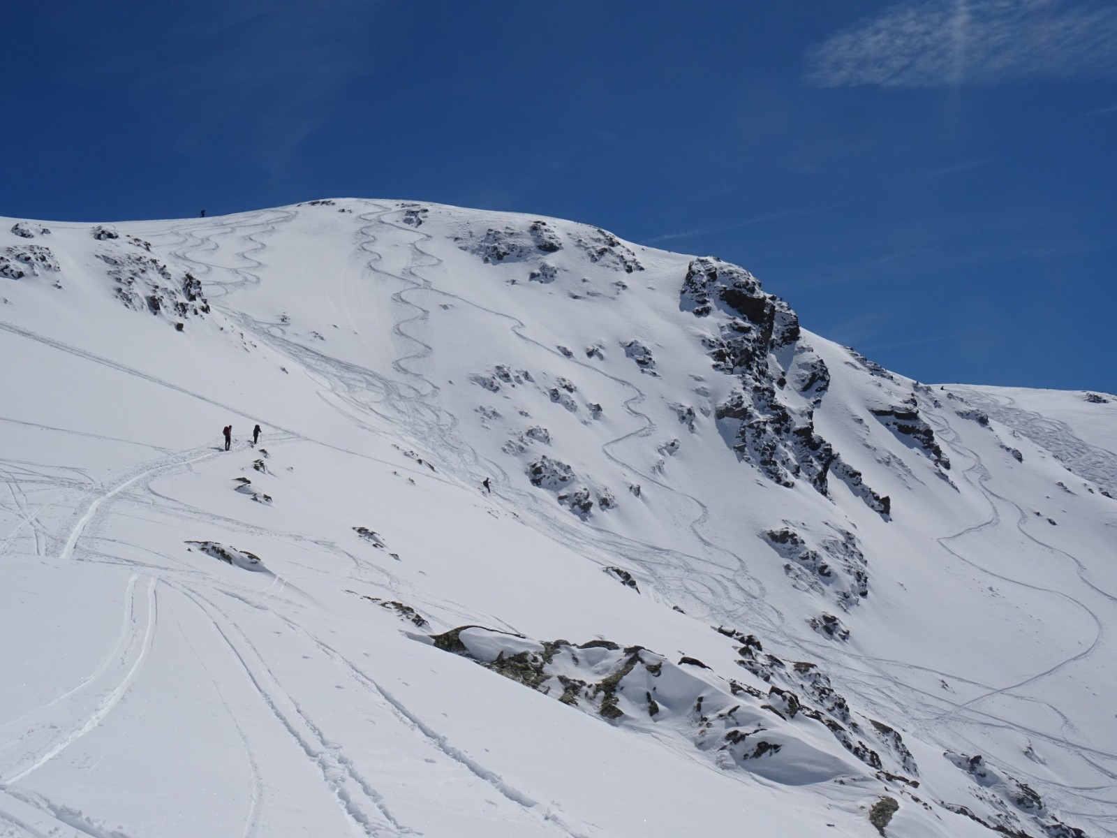 Pas mal de monde dans le secteur mais sans impression de "foule" non plus. Personne vers la partie haute du Sorbier (final pas engageant, bien caillouteux), Eulier pas vraiment skiable : la couche de la veille est tombée sur des cailloux. Mais ça devrait permettre encore quelques sorties les prochains jours :-).