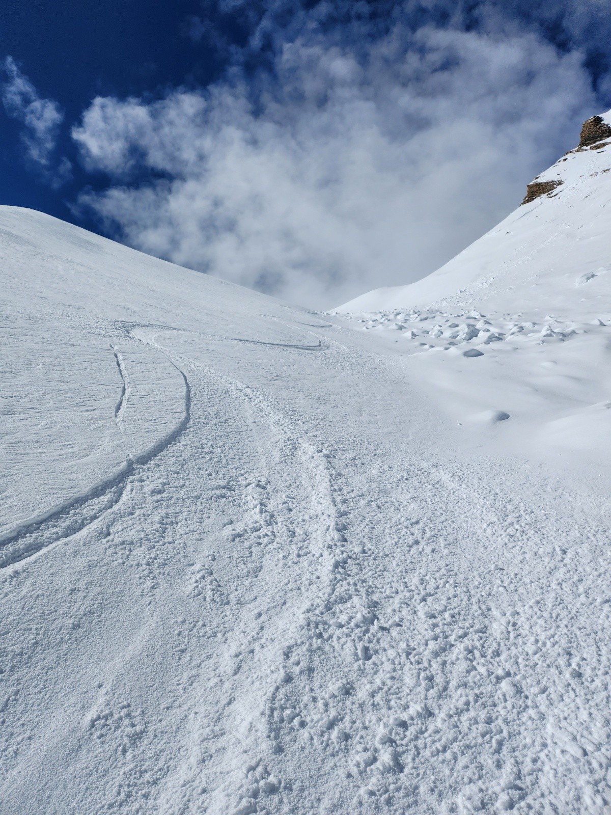 Pour ma première contribution, je rentre une classique parmi les classiques : le vallon du Crachet où les conditions étaient excellentes ce matin avec 10/15 cm sur un fond dur. Donc le ski était très bon d'en haut jusqu'en bas... J'y suis allé un certain nombre de fois cet hiver et on y est rarement déçu : Conditions souvent bonnes.