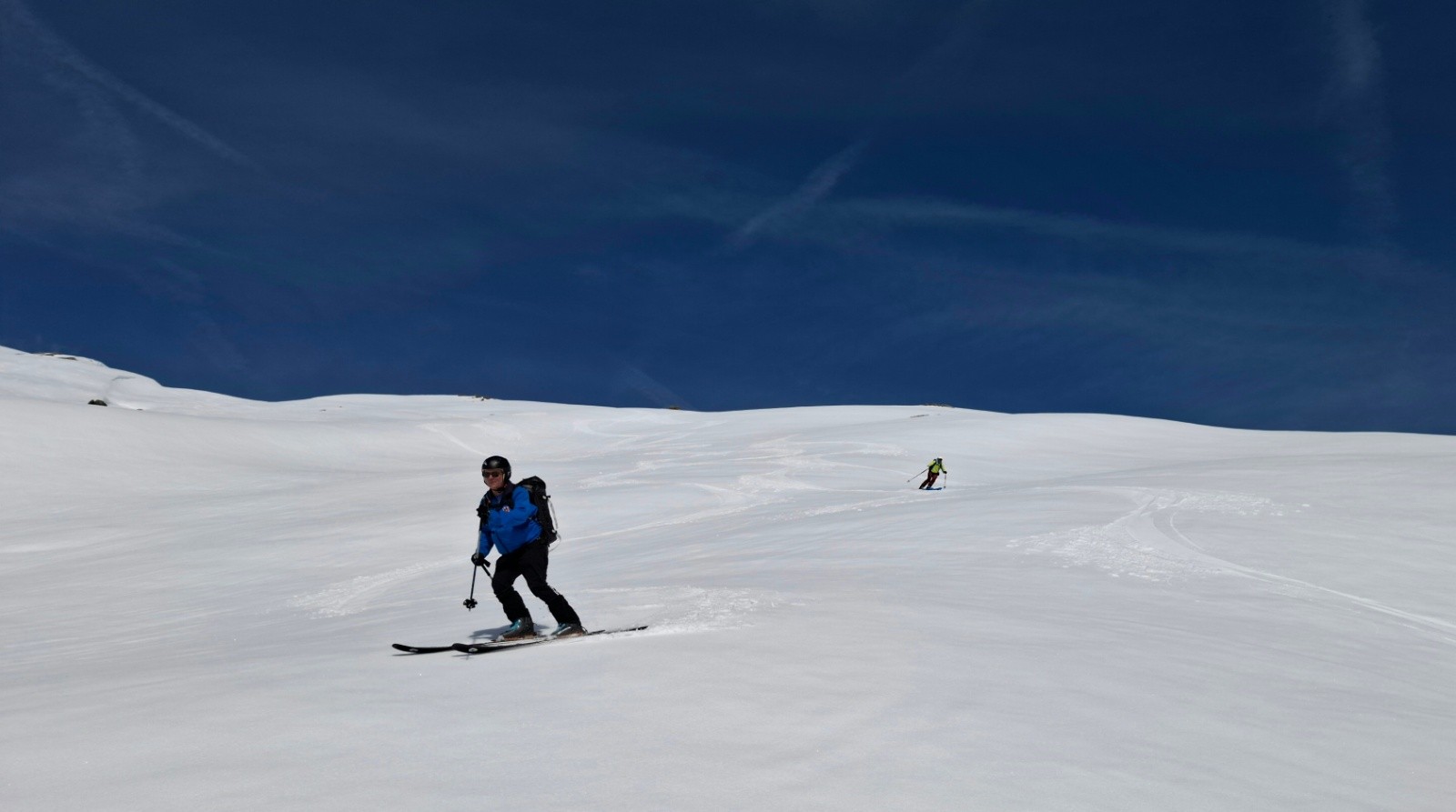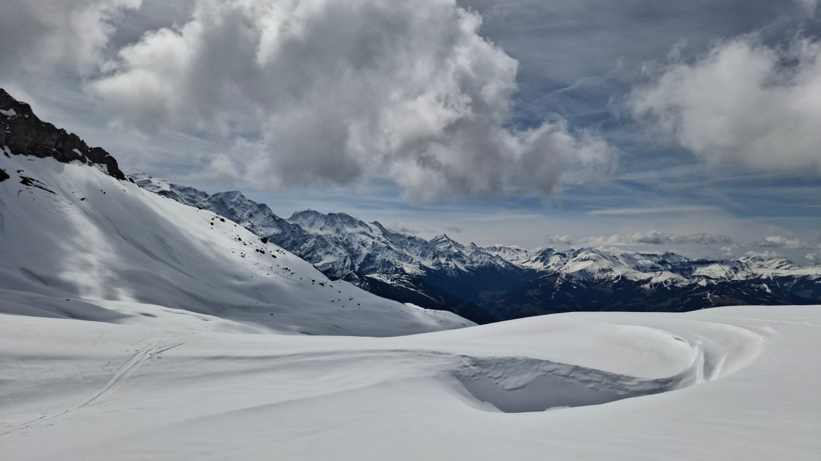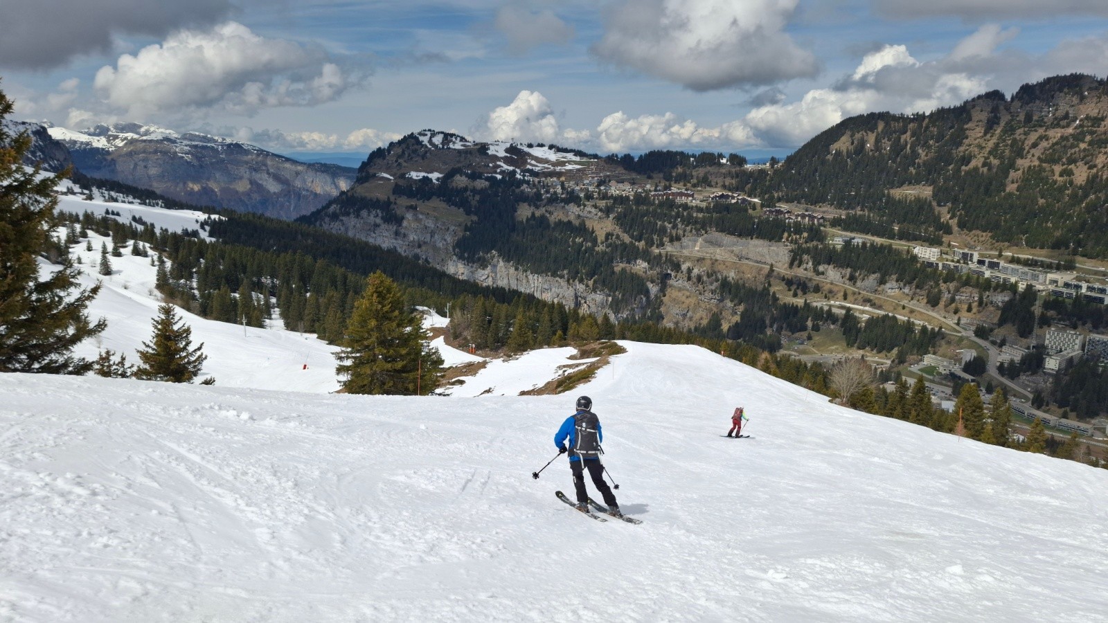 Retour à Flaine suite à notre sortie de samedi, station désormais fermée mais avec bcp d'activité pour les pisteurs pour déséquiper le domaine, et bcp de randonneurs. Cette fois on fait plus court à la montée, direct sous le tc de l’Aup de Véran, plus efficace que la traversée d’Aujon pour profiter de la moquette vers Platé, mais pas sauvage du tout...🤷 bcp de rotation des pisteurs en motoneiges. La montée se fait sur neige très dure, on est mieux sur les parties brassées de la veille que sur le lisse, ça s'arrange vers 2100m où qq mm puis cm sont tombés la veille. Le final est confort est la vue tjrs aussi belle ! La descente sur les chalets de Platé est excellente, de petite poudre sur fond ferme à moquette 5* jusqu'à 2100m où on décide de remonter. Tout ce vallon rien que pour nous, ou presque, rencontre avec deux personnes qui nous montrent une trace de loup, on dirait qu'il venait juste de passer ! La remontée est très agréable, les bourgeonnements arrivent et donnent une lumière variée, par contre les valonnements sont un peu paumatoires et on doit redescendre qq mètres deux fois pour reprendre le bon chemin, à peine une heure et on arrive au col du Colonney. Pdt ce temps les pistes ont bien dégelé et étaient super bonnes jusqu'en bas. La fenêtre météo était parfaite, notre timing aussi, le casse croute et la bière fraîche au parking pour savourer cette belle journée.