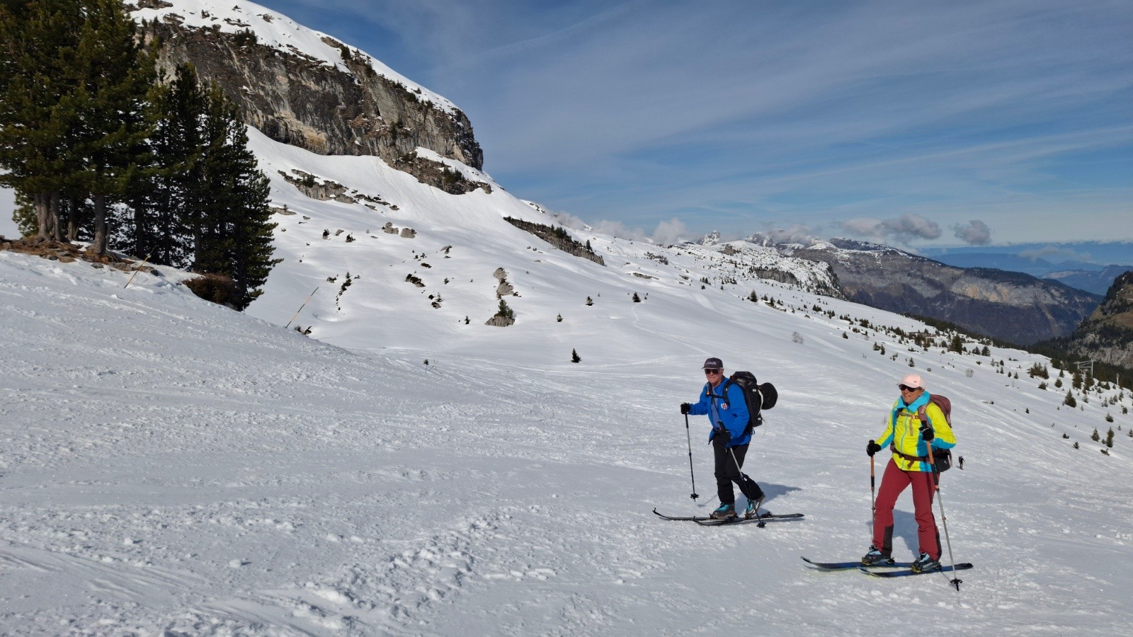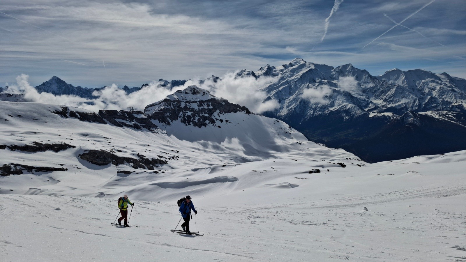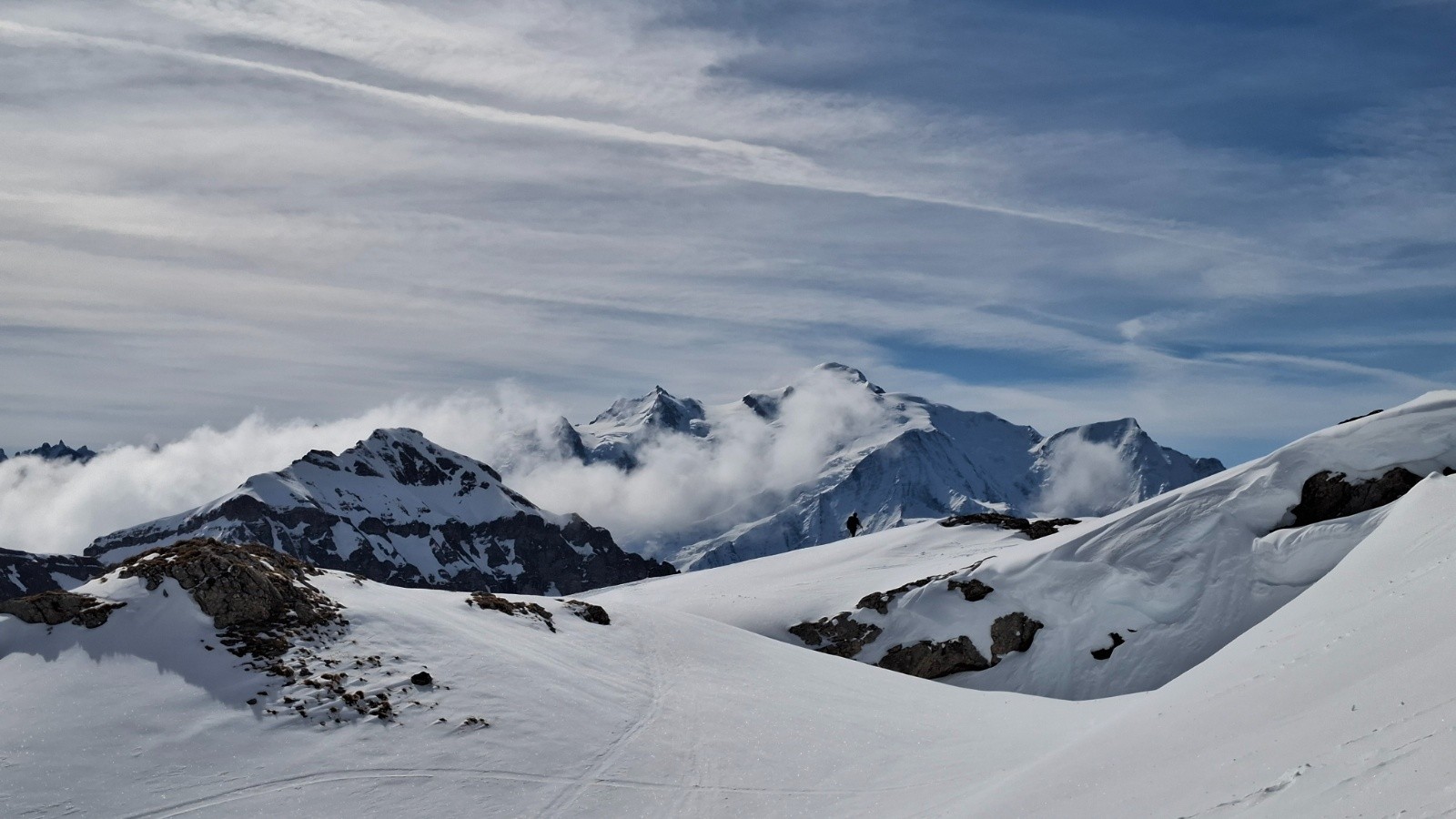 Retour à Flaine suite à notre sortie de samedi, station désormais fermée mais avec bcp d'activité pour les pisteurs pour déséquiper le domaine, et bcp de randonneurs. Cette fois on fait plus court à la montée, direct sous le tc de l’Aup de Véran, plus efficace que la traversée d’Aujon pour profiter de la moquette vers Platé, mais pas sauvage du tout...🤷 bcp de rotation des pisteurs en motoneiges. La montée se fait sur neige très dure, on est mieux sur les parties brassées de la veille que sur le lisse, ça s'arrange vers 2100m où qq mm puis cm sont tombés la veille. Le final est confort est la vue tjrs aussi belle ! La descente sur les chalets de Platé est excellente, de petite poudre sur fond ferme à moquette 5* jusqu'à 2100m où on décide de remonter. Tout ce vallon rien que pour nous, ou presque, rencontre avec deux personnes qui nous montrent une trace de loup, on dirait qu'il venait juste de passer ! La remontée est très agréable, les bourgeonnements arrivent et donnent une lumière variée, par contre les valonnements sont un peu paumatoires et on doit redescendre qq mètres deux fois pour reprendre le bon chemin, à peine une heure et on arrive au col du Colonney. Pdt ce temps les pistes ont bien dégelé et étaient super bonnes jusqu'en bas. La fenêtre météo était parfaite, notre timing aussi, le casse croute et la bière fraîche au parking pour savourer cette belle journée.